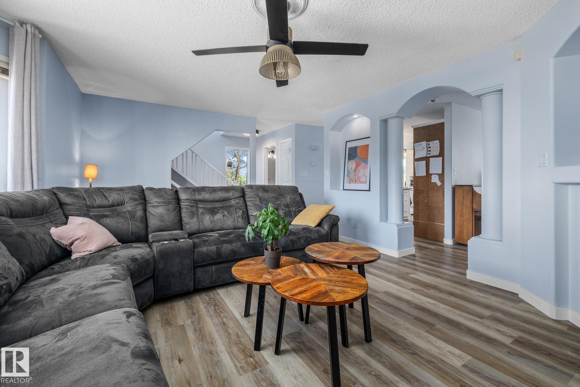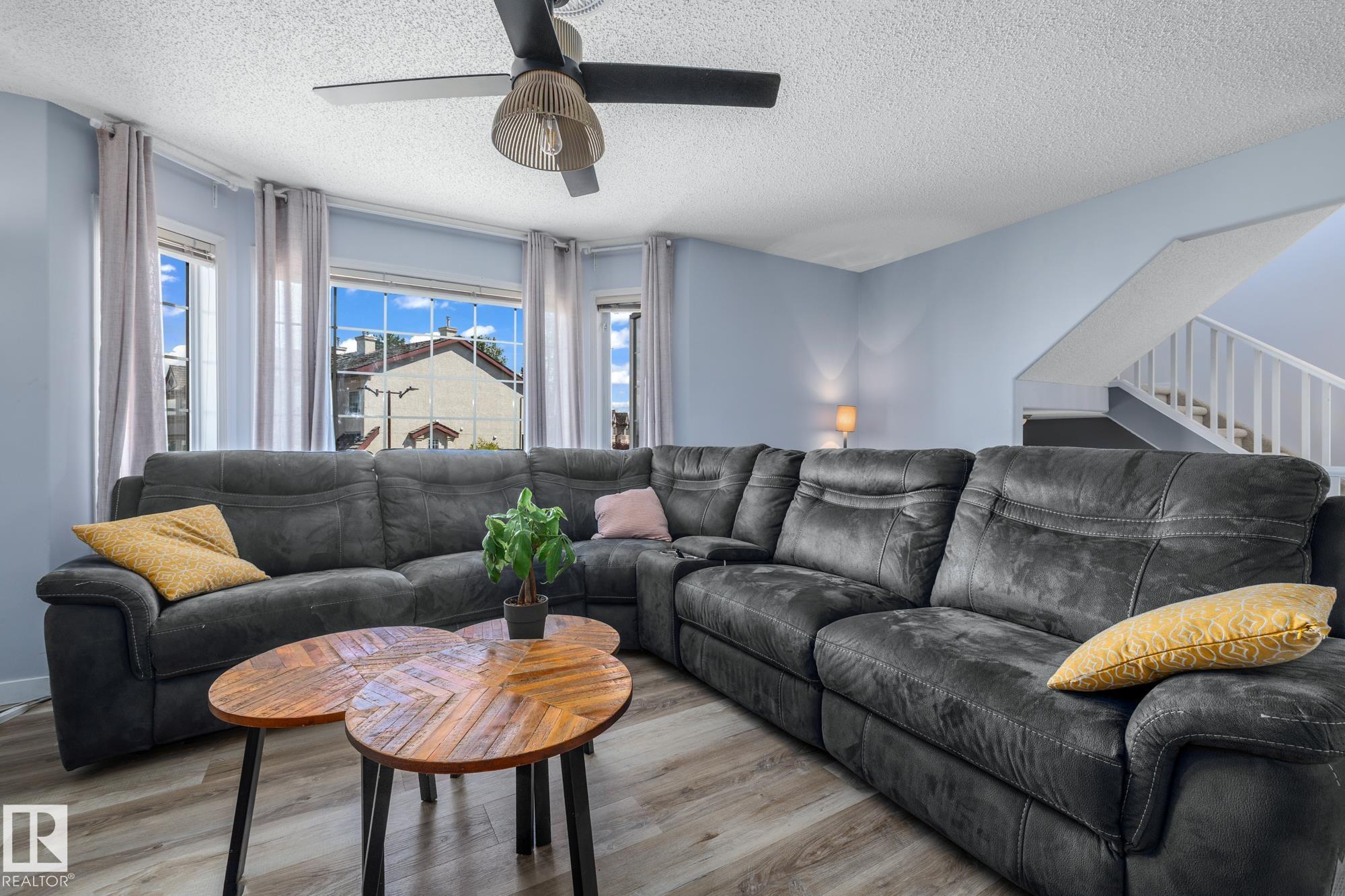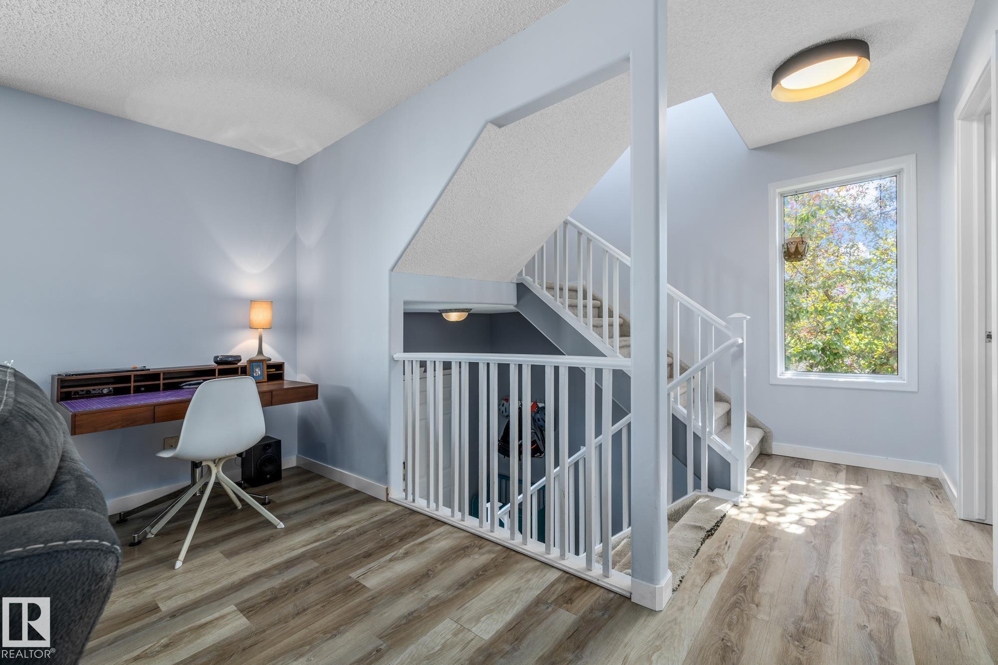 Located in the desirable Freedom Ridge in Whitemud Hills, this split 2-storey townhouse backs onto walking trails and a green space, offering privacy and south-facing sun-filled living spaces all day long. The layout includes a bright main floor with large windows, a spacious living room, 3 piece bath and a flex space/office, perfect for working from home. The kitchen connects directly to the deck, creating a seamless indoor-outdoor flow for entertaining. The backyard is one of the biggest yards in this complex with large mature trees. Upstairs, you’ll find two bedrooms with private ensuites—the primary features beautiful views, a soaker tub, and separate shower. The basement offers a third bedroom or bonus room, and the attached double garage adds everyday convenience. Close to Terwillegar Rec Centre, Riverbend Square and Whitemud freeway and the Anthony Henday, this home is full of potential and waiting for your personal touch!