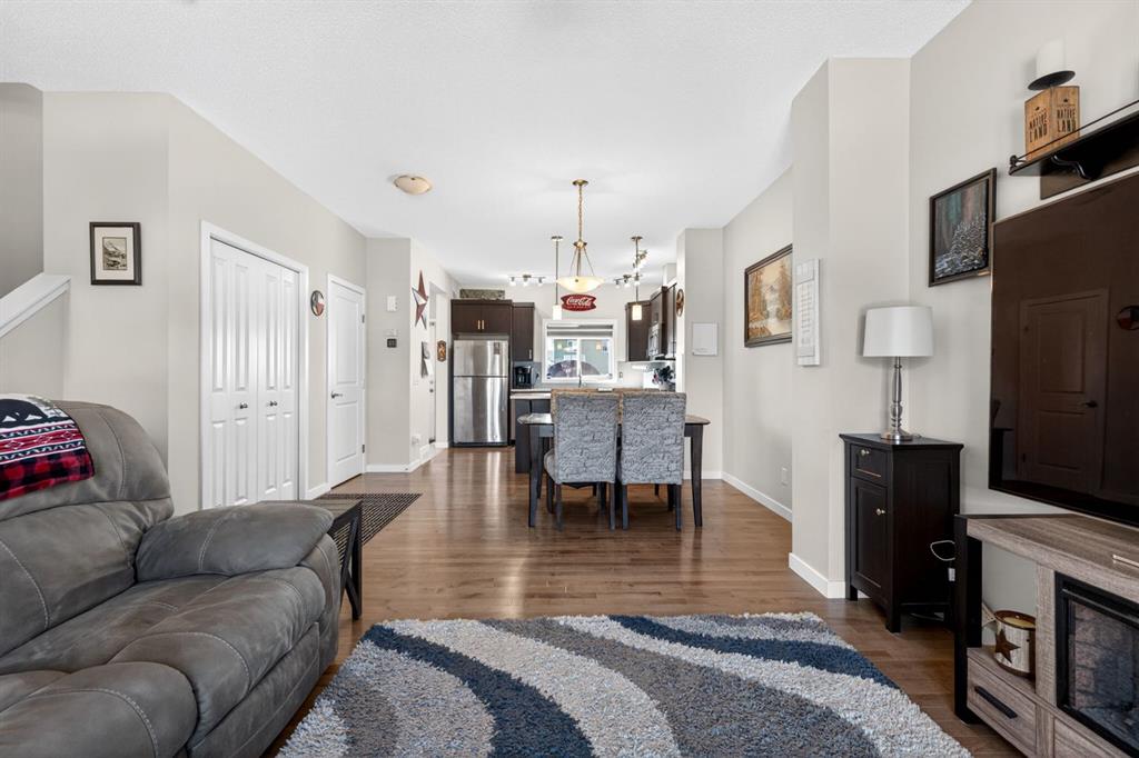 OPEN HOUSE SUNDAY April 26, 1-3pm. This two-bedroom townhouse in the Heartland subdivision is close to all amenities. It features both an ensuite bathroom and walk-in closets on the upper floor, along with a laundry area. The main level is open-concept, with a living room, kitchen with Granite countertops, and large dining area. There’s plenty of parking, and you can even build a double detached in the back alley, with parking right in front of the unit. The basement is undeveloped, with roughed in plumbing, offering lots of open space for your creative ideas. The Heartland subdivision is just west of Cochrane’s downtown, and it boasts beautiful walking paths, parks, and stunning views.