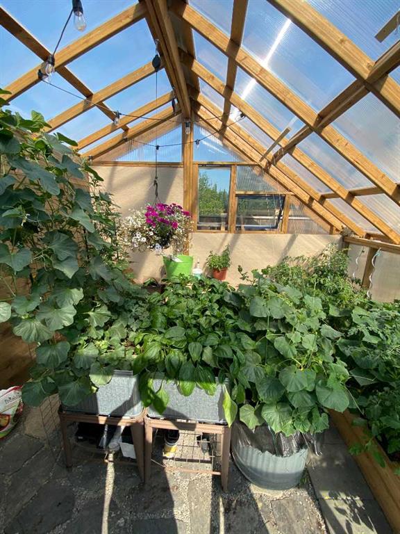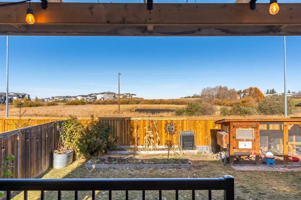 ACREAGE LIVING IN TOWN | NO NEIGHBOURS BEHIND | RENOVATED FAMILY HOME - Experience the best of both worlds with this beautifully updated two-storey home in the heart of Crossfield, where small-town charm meets modern living. Perfectly positioned on a quiet crescent and backing onto wide-open prairie views, this property offers a sense of space and freedom rarely found within town limits. The feeling of acreage living, without sacrificing convenience. Step inside to a bright, thoughtfully designed layout with new LVP flooring throughout the main and upper levels, fresh carpet on the stairs, and an effortless flow from room to room. The renovated kitchen shines with new quartz countertops, a subway tile backsplash, and upgraded stainless steel appliances, opening onto a spacious dining area filled with natural light. The inviting living room overlooks the backyard and features large windows that frame open views, perfect for family gatherings or quiet evenings at home. Upstairs, you’ll find three generous bedrooms, including a serene primary suite complete with a walk-in closet featuring custom shelving and a fully renovated ensuite bath. Both upper bathrooms have been tastefully modernized, offering a fresh and stylish feel. The home also features new window blinds, a custom locker system in the foyer, and upgraded storage solutions in the laundry room and secondary bedroom closets. Outside, the curb appeal is undeniable. A stone-accented exterior, perennial front garden, and even a Little Free Library make the home warm and welcoming from the moment you arrive. The covered back deck (2021) extends your living space outdoors, offering a relaxing retreat overlooking the backyard’s greenhouse and chicken coop (both added in 2020). Below, a stamped concrete patio with a cozy chiminea creates an inviting space for evening fires and outdoor entertaining. It’s the perfect setup for anyone looking to enjoy a sustainable, family-friendly lifestyle with room to garden, gather, and grow. Crossfield offers a relaxed pace of life with schools, parks, and walking paths just minutes away, all within a short drive to Airdrie or Calgary for commuters. Whether you’re raising a family, downsizing from acreage life, or simply craving more space and serenity, this property delivers an exceptional balance of comfort, privacy, and connection.