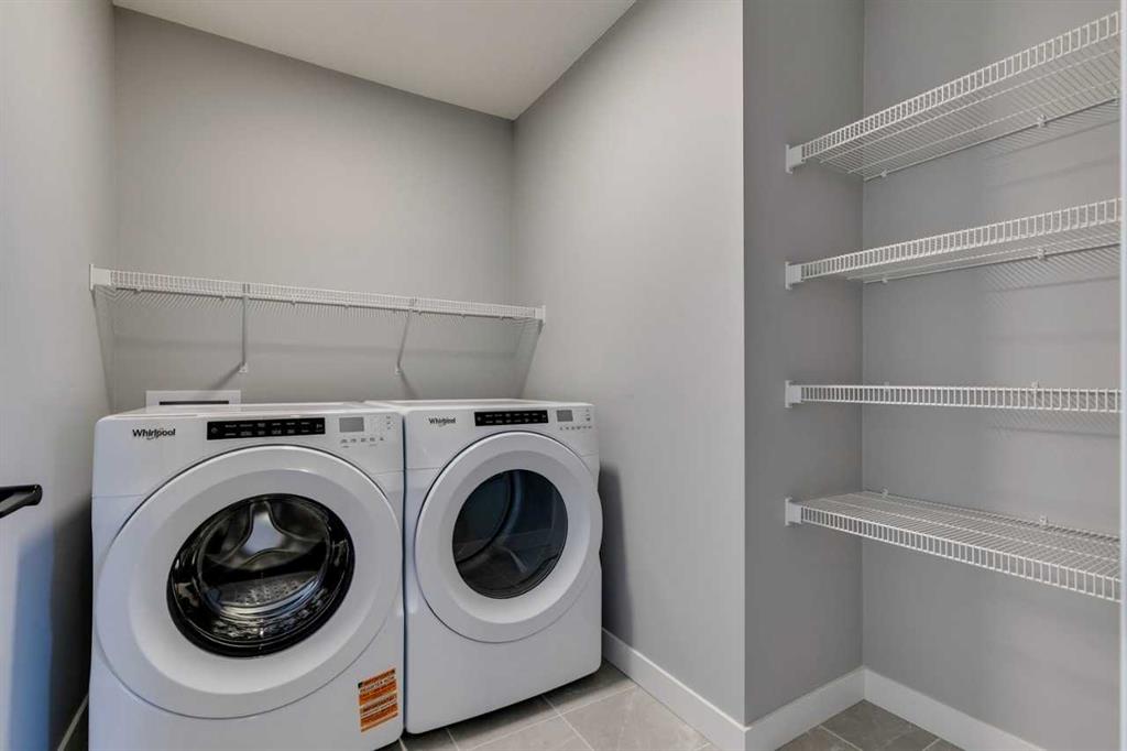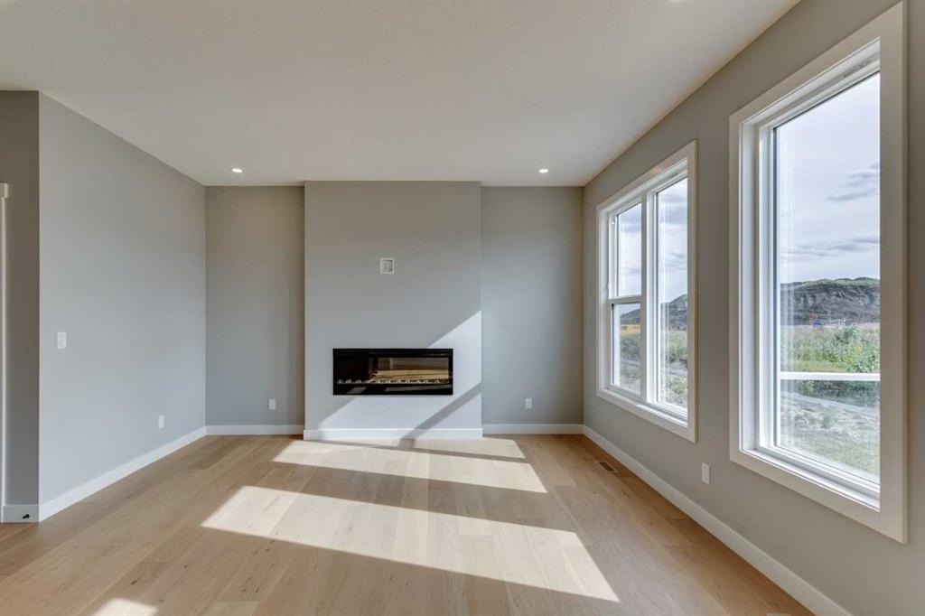 Located in the vibrant Southwest community of Pine Creek, this thoughtfully designed home offers flexible living and is set up for a future two-bedroom secondary suite in the basement, complete with a separate side entrance. The upper level features three bedrooms and a central bonus room, providing ample space for family living. On the main floor, a bedroom and full bathroom add convenience and versatility. The kitchen is equipped with a gas range cooktop, hood fan, and a large island, while the great room includes an electric fireplace feature wall. A well-rounded home suited for multi-generational living or future rental income potential.