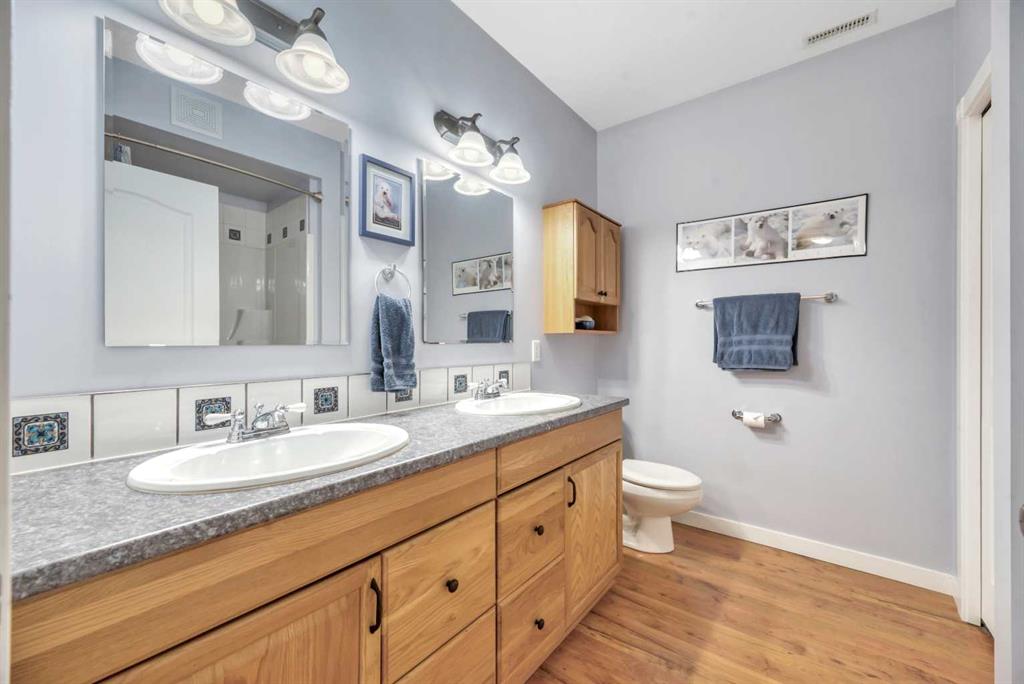 The acreage buyers wait years for, has just hit the market! Located in one of the most sought-after country residential pockets, you are only 4 minutes to Calgary and 3 minutes to Stoney Trail — the rare balance of peaceful living without sacrificing convenience. This fully developed bungalow offers 5 bedrooms and a layout designed to feel open, bright, and effortless. 9' ceilings and solid timber beam details create warmth the moment you walk in. The custom updated kitchen anchors the home with quartz counters, maple cabinetry, newer appliances, and a butler’s pantry that actually works for real life — storage, prep space, and organization where you need it. The living area gathers around the gas fireplace while large windows frame the mountain views. The primary retreat is spacious and private with built-in closet organizers and a spa-inspired ensuite featuring a large walk-in shower and double sinks. Downstairs, the finished basement adds a massive family room, wet bar, full bathroom, and flexible space for guests, teens, or multi-generational living. Step outside and the property becomes something special. A massive two-level back deck with glass railing and built-in planters overlooks the manicured yard, mature trees, water feature, gardens, and firepit area. The property is perimeter fenced with classic 3-rail fencing and cross-fenced for animals, complete with shelter and a chicken coop. A fenced dog run and kennel keeps pets secure while still giving them space. For hobbyists, business owners, or horse enthusiasts — the outbuildings deliver. The impressive shop features packed gravel with interlocking floor frames for durability and function, plus a rear barn with two stalls and tack room creating true year-round versatility. Strong well water, upgraded mechanical, and careful maintenance mean this home is ready to be enjoyed, not worked on. This is the rare acreage where location, usability, and lifestyle all meet. Not just land. A place you build a life around.