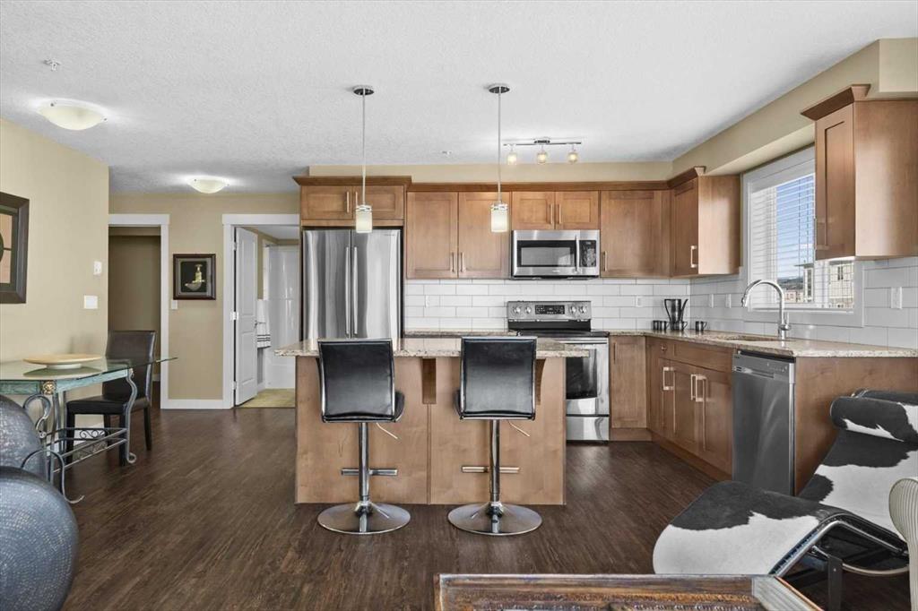 Welcome to Sage Place, nestled in the heart of Sage Hill, one of NW Calgary's most sought-after communities, where comfort, convenience, and a true sense of neighbourhood effortlessly come together. This is your opportunity to own one of the larger floorplans in the complex, a bright, beautifully appointed corner unit designed for both everyday living and relaxed entertaining. From the moment you step into the private foyer, the thoughtful layout and elevated finishes make an impression. As a corner unit, this home is bathed in natural light, with expansive windows that create an open, airy atmosphere throughout the main living spaces. Premium laminate flooring runs through the principal areas, offering lasting durability and understated style, while the bedrooms provide a warm and cozy retreat underfoot. The kitchen is the heart of this home, featuring granite countertops, full-height cabinetry, and a premium stainless steel appliance package that blends functionality with sophistication. Whether you are hosting friends for a dinner party or savouring a quiet morning coffee, the oversized dining area & generous living room offer the perfect setting to gather, relax, and connect. Step through the sliding doors onto your large private deck, complete with natural gas for the BBQ, an ideal extension of your living space, perfect for summer evenings, weekend grilling, or simply unwinding after a long day with a glass of wine in hand. The floorplan includes two spacious bedrooms plus a versatile den. The primary retreat features a private 3-piece ensuite and dual his & hers closets, delivering both comfort and practical everyday storage. The second bedroom is thoughtfully positioned adjacent to the full 4-piece bathroom, making it ideal for guests, family. The spacious den adds exceptional flexibility, whether you envision a home office, a personal workout space, or occasional guest accommodations, it easily adapts to your lifestyle needs. Rounding out this exceptional package is titled underground heated parking and assigned storage in a secure parkade, offering year-round comfort and genuine peace of mind. Living at Sage Place means embracing a lifestyle of convenience. Just steps from your door you will find grocery stores, banking, fitness studios, restaurants, pubs, and all the everyday amenities you need, making daily errands seamless and evenings out a breeze. Quick access to major roadways means commuting anywhere in the city is simple & stress-free. Sage Hill delivers, scenic pathways, beautiful green spaces, and a warm, welcoming community that residents are proud to call home. Whether you are a young professional seeking a stylish, low-maintenance base in a well-connected neighbourhood, a first-time buyer stepping, a downsizer seeking a relaxed lifestyle, or an investor adding a quality asset to your portfolio, this immaculate professionally managed condo offers the space, the light, and the lifestyle you have been searching for.