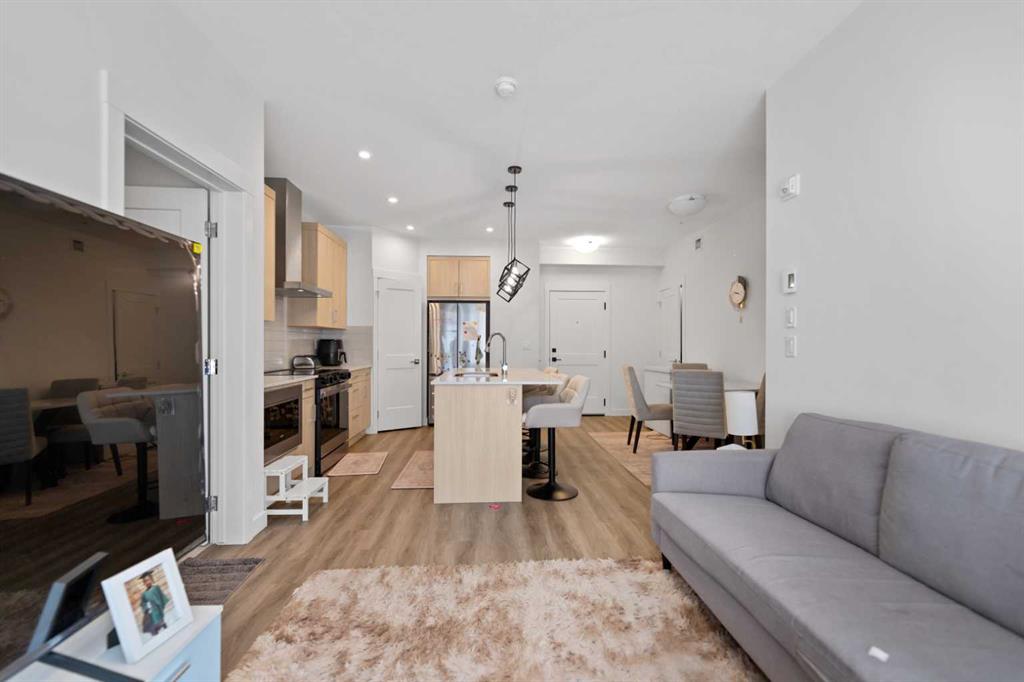 Welcome to this modern 2-bedroom, 2-bathroom condo located on the 3rd floor in the vibrant community of Livingston. Featuring a bright open-concept layout, the kitchen offers quartz countertops, stainless steel appliances, and contemporary cabinetry, flowing seamlessly into the living area and private balcony. The primary bedroom includes a walk-in closet and ensuite, while the second bedroom is conveniently located next to the full main bath, ideal for guests or a home office. Additional features include air conditioning, in-suite laundry, luxury vinyl plank flooring, titled underground parking, and a storage unit. Close to parks, walking paths, shopping, and major roadways, this home offers modern comfort and everyday convenience.