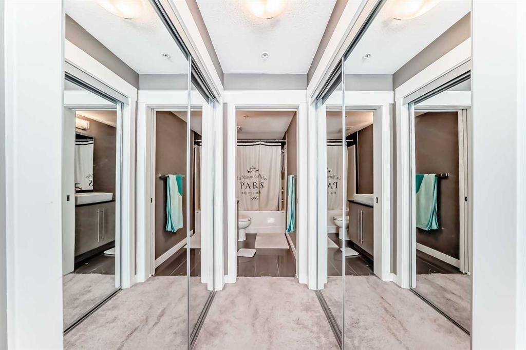 Rare! A 2 bedroom, 2 bathroom apartment with 2 TITLED PARKING stalls and LAKE ACCESS in the sought after community of Mahogany. Located on the third floor, close to the elevator, this sunny and bright unit has been impeccably maintained. With two bedrooms with huge closets located on either side of the unit for privacy, there are also 2 full, 4 piece baths, an in suite laundry room, a 'den' which is great flex space depending on your needs all joined together by the open great room. The kitchen has tons of counter and eating space and comes with stainless steel appliances. The sunny south facing balcony is a peaceful outdoor space. You will enjoy the convenience of two titled stalls, one underground, steps to the elevator includes additional storage and the other on the surface is just a short walk. Located close to the lake entrance (yes, private lake membership comes with this unit) where you can enjoy a variety of year round activities, included with your membership. Retail and most services are just a block or two away and quick and easy access to Stoney Trail is super convenient. Vacant possession is available any time after May 31st