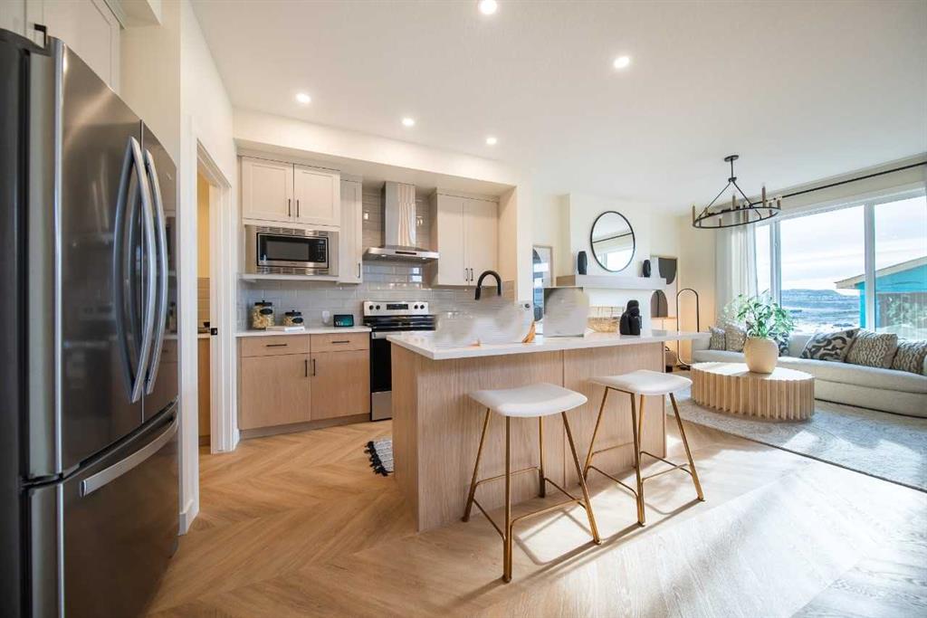 Discover luxury and versatility in the stunning Jade Showhome — where style meets functionality! Built by a trusted builder with over 70 years of experience, this home showcases on-trend, designer-curated interior selections tailored for a home that feels personalized to you. Energy efficient and smart home features, plus moving concierge services included in each home. This beautifully designed home features an open-concept layout with stainless steel appliances, a spice kitchen with gas range and pantry shelving, and an electric fireplace with a striking mantle above. A main floor bedroom and full bathroom with a walk-in shower offer added flexibility. Upstairs, enjoy the convenience of laundry (washer & dryer included), and a spacious ensuite with a walk-in shower. The fully developed basement of this home features a ONE BEDROOM LEGAL SUITE including full bathroom, 9' ceilings and convenient side entrance — perfect for extended family living.. Photos are representative. Additional windows throughout bring in extra light, and a rear deck offers outdoor space to unwind. This energy-efficient home is Built Green certified and includes triple-pane windows, a high-efficiency furnace, and a solar chase for a solar-ready setup. With blower door testing that can may be eligible for up to 25% mortgage insurance savings, plus an electric car charger rough-in, it’s designed for sustainable, future-forward living. Featuring a full range of smart home technology, this home includes a programmable thermostat, ring camera doorbell, smart front door lock, smart and motion-activated switches—all seamlessly controlled via an Amazon Alexa touchscreen hub. Photos are representative.
