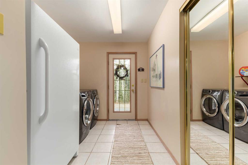 Opportunities like this are rarely offered. Set on 19.52 acres of untouched West Bragg Creek wilderness, backing directly onto the vast expanse of Kananaskis Country, this property represents one of the few remaining chances to own land of this scale, privacy, and natural beauty. Tucked deep within a private sanctuary, where the rhythm of the forest replaces the noise of the city, this walk-out bungalow feels less like a house and more like an invitation to live differently. Mornings start quietly here. The first blush of sunrise spills into the east-facing breakfast nook, casting warm light across treetops as deer wander unhurriedly past your windows. With the West Bragg Creek trail system just minutes from your doorstep, this is a landscape designed for the outdoor soul: bike at dawn, cross-country ski at noon, hike until the sky turns gold, then be home within moments. Inside, the home features a thoughtful custom kitchen renovation by Bragg Creek artisan Vertex Carpentry - a true celebration of local craftsmanship. Cherry-wood cabinetry is paired with quartz counters and a full suite of professional-grade appliances. Hidden among the woodwork are clever, custom-built storage solutions and tailored organizational details, making the space as functional as it is beautiful. A baker’s dream is found in the dual built-in wall ovens (steam + convection), the 5-burner induction cooktop, and the whisper-quiet dishwasher, bringing both artistry and intention to everyday living. The main level unfolds through an open living and dining area wrapped in windows, framing the forest as living artwork. A versatile bedroom on this level offers flexibility, serving beautifully as a home office, studio, or quiet reading retreat. Below, the walk-out level offers three additional spacious bedrooms - one currently used as a home gym. The oversized primary suite provides a generous walk-in closet and private ensuite, creating a retreat that feels grounding and serene. Though the Hamlet of Bragg Creek is only a short drive away, the feeling here is unmistakably private - quiet, wild, and deeply connected to nature. This is more than a home. It is a once-in-a-generation opportunity to own a rare stretch of land along the edge of Kananaskis Country - your own piece of nature's paradise, waiting to be lived in.
