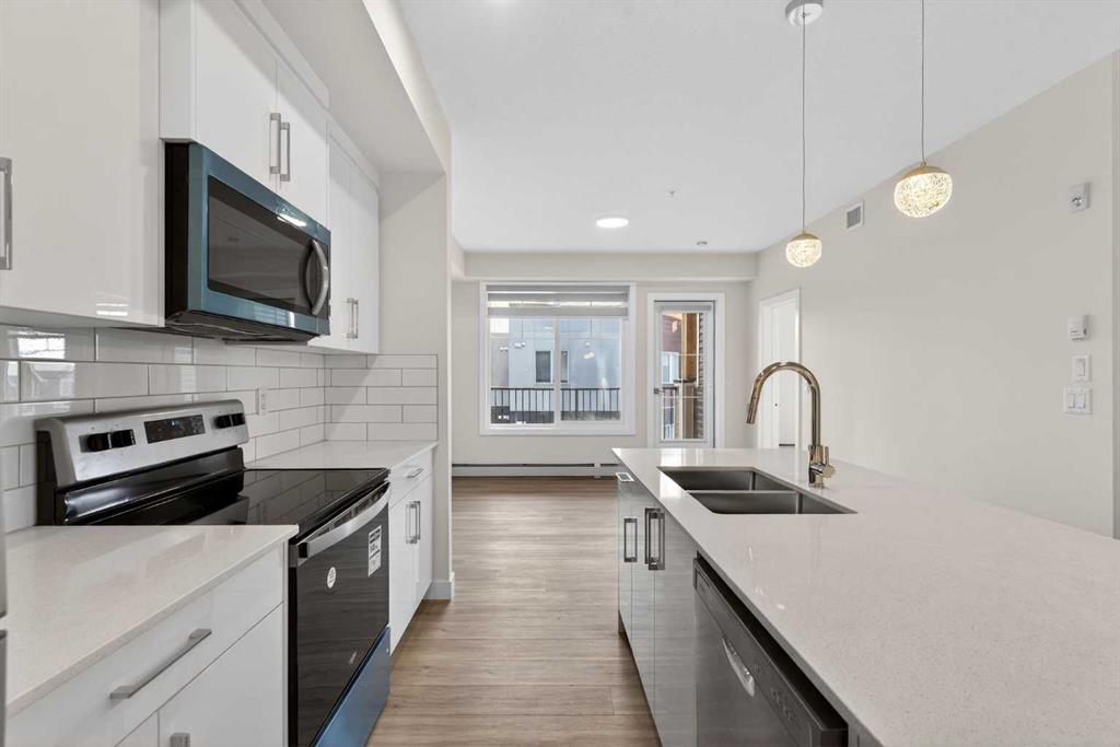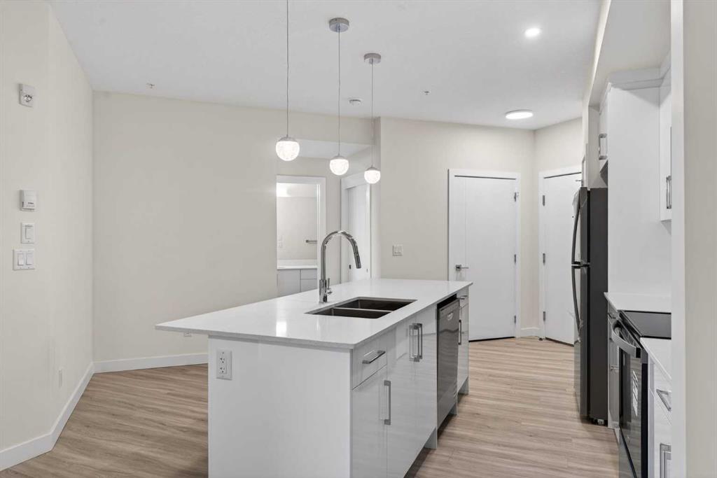 Welcome To This Spacious, Brand-New, Move-In-Ready Large 2-Bedroom, 2-Bathroom Corner Unit Located In The Vibrant And Fast-Growing Skyview Community Of NE Calgary. Thoughtfully Designed With End Users And Growing Families In Mind, This Bright And Airy Home Features 9-Foot High Ceilings And Expansive Corner Windows That Fill The Open-Concept Layout With Natural Light, Creating A Comfortable And Welcoming Living Environment. The Wide-Plank Luxury Vinyl Flooring And Quartz Countertops Throughout Offer A Sleek, Modern Look While Remaining Durable And Easy To Maintain, Perfect For Busy Households. The Fully Upgraded Kitchen Is Designed For Everyday Family Living, Featuring Stainless Steel Appliances, An Over-The-Range Microwave, Soft-Close Cabinetry, A Full Pantry, Quartz Countertops, And A Large Breakfast Bar Ideal For Family Meals, Homework Time, Working From Home, Or Entertaining Guests. The Kitchen Flows Seamlessly Into The Generously Sized Living And Dining Areas, Providing Plenty Of Room For Family Gatherings And Relaxing Evenings At Home. This Large Corner Unit Offers Two Generously Sized Bedrooms, Including A Primary Bedroom With A 5-Piece Ensuite & Walk-In Closet, Providing Extra Space And Comfort For Parents. A Modern 4-Piece Common Bathroom With Quartz Countertops Serves The Second Bedroom And Guests, Making This Layout Ideal For Families, Shared Living, Or Overnight Visitors. Additional Family-Focused Highlights Include In-Suite Laundry, Upgraded Designer Window Treatments, And A Large Private Balcony With A BBQ Gas Line, Perfect For Outdoor Family Meals And Extra Living Space During Warmer Months. The Home Also Includes Titled Underground Parking And A Titled Storage Locker, Offering Secure Parking And Valuable Extra Storage For Strollers, Bikes, Seasonal Items, And Sports Gear. Located In A Newly Constructed Building With Underground Bike Racks, This Property Supports Low-Maintenance, Lock-And-Leave Living, Ideal For Families With Busy Lifestyles. Conveniently Located Close To Shopping, Schools, Parks, Public Transit, Major Amenities, Calgary International Airport, And Quick Access To Stoney Trail, This Home Makes Daily Commuting, School Drop-Offs, And Weekend Activities Easy And Stress-Free. Skyview Is One Of Calgary’s Most Desirable And Rapidly Growing Communities, Making This Property An Excellent Choice For Families Looking To Settle Into A Modern Home With Room To Grow. Whether You Are A First-Time Buyer, Downsizing Into A Low-Maintenance Lifestyle, Or Planning For The Future, This Large Corner Unit Offers Comfort, Space, And Long-Term Value. Why Rent When You Can Own A Spacious Home Designed For Modern Family Living And Start Building Equity? Move In And Enjoy, Rent Out In The Future, Or Hold As A Long-Term Investment. This Is A Must-See Opportunity With Flexible Ownership Options. Please Note: Property Taxes Have Not Yet Been Assessed. Additional Units Are Available, Contact Listing Agent For Details.