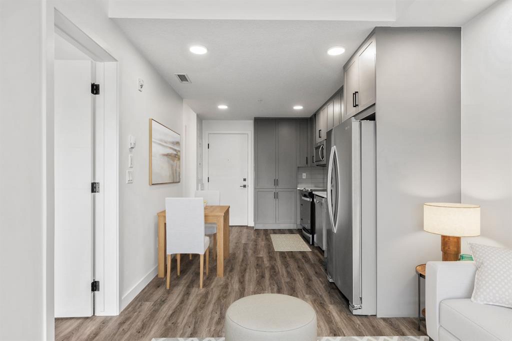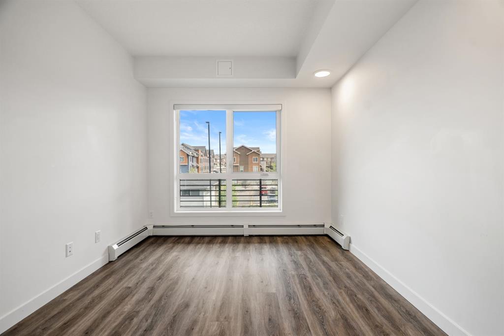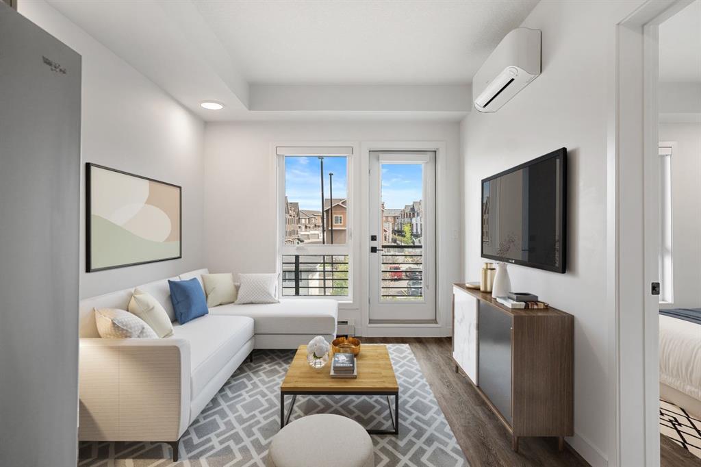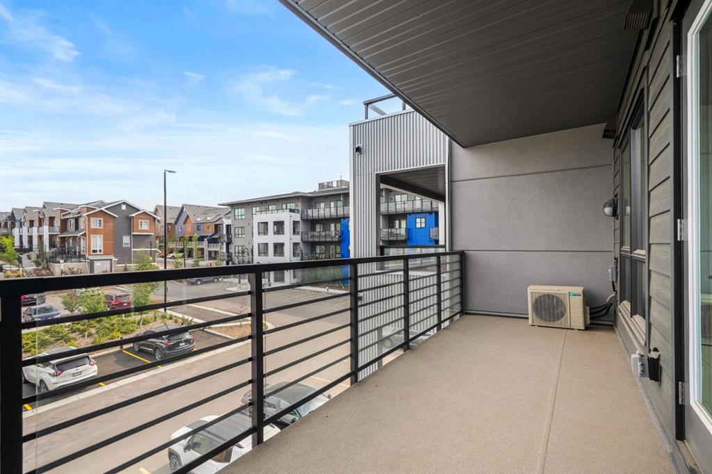 Discover a beautifully appointed third-floor condo located in the desirable community of Livingston. Perfectly suited for first-time buyers, savvy investors, or those looking to downsize, this home offers modern finishes, smart design, and incredible convenience — all at an affordable price point. Step inside to discover an open-concept layout that maximizes space and natural light. The kitchen is thoughtfully designed with quartz countertops, sleek full-height cabinetry with soft-close doors, and stainless steel Whirlpool appliances, making it both functional and stylish. The living and dining area flows seamlessly onto a generous west-facing balcony, that includes a built-in gas line for BBQs — an inviting space for entertaining or simply enjoying sunsets. The spacious primary bedroom features a walk-in closet and easy access to a modern 4-piece bathroom. Additional comforts include in-suite laundry and central air conditioning, keeping you cool and comfortable throughout the year. The unit also comes with a titled underground heated parking stall and an assigned storage locker, offering peace of mind and extra convenience. The building itself is well-maintained, featuring elevator access, a welcoming lobby with modern décor, and secure common areas. This pet-friendly building is ideal for animal lovers, featuring its very own dog run — a rare and welcome amenity that adds to the lifestyle appeal. Livingston doesn’t just offer a home — it delivers a lifestyle. Anchoring the community is the Livingston Hub, a 35,000 sq. ft. facility under the homeowners’ association, where neighbours gather for year-round engagement. Inside, enjoy banquet and meeting/multi-use rooms, a commercial kitchen, gymnasium, café space, meeting rooms and childcare/day care space. Outdoors, the Hub’s park includes skating rinks (both leisure and hockey), tennis courts, enhanced playgrounds, splash parks, an amphitheatre, ping pong tables, gathering spaces, and fire pits with BBQs for summer enjoyment. Programming and events are hosted throughout the year, from festivals and family movie-nights to fitness and wellness classes all within walking distance. Located just minutes from Stoney Trail, this home offers easy access to downtown, the airport, and nearby shopping centres. The growing Livingston community is one of Calgary’s most exciting new developments, offering parks, pathways, playgrounds, and the upcoming Green Line LRT expansion. Whether you're looking to get into the market, add to your investment portfolio, or simplify your lifestyle, this move-in-ready unit checks all the boxes. Affordable condo fees and strong rental appeal make it a smart choice for any buyer. Don’t miss out — book your private viewing today and see the value this exceptional property has to offer!