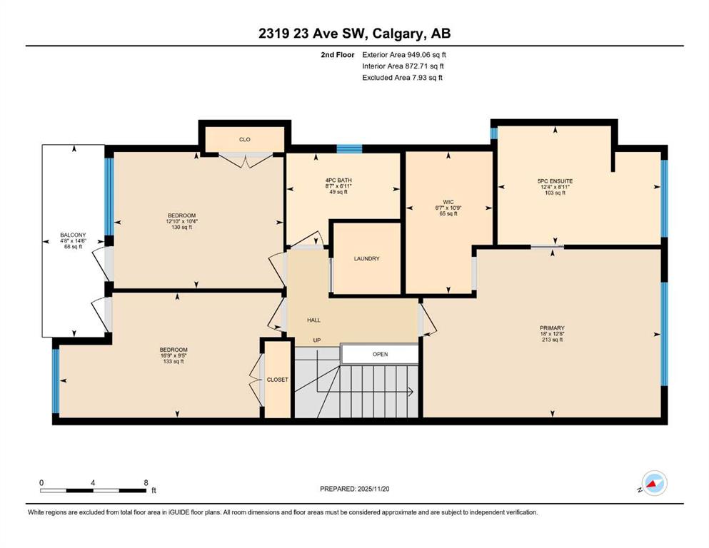 | Bedroom - Primary | 18`0" x 12`8" | Second |