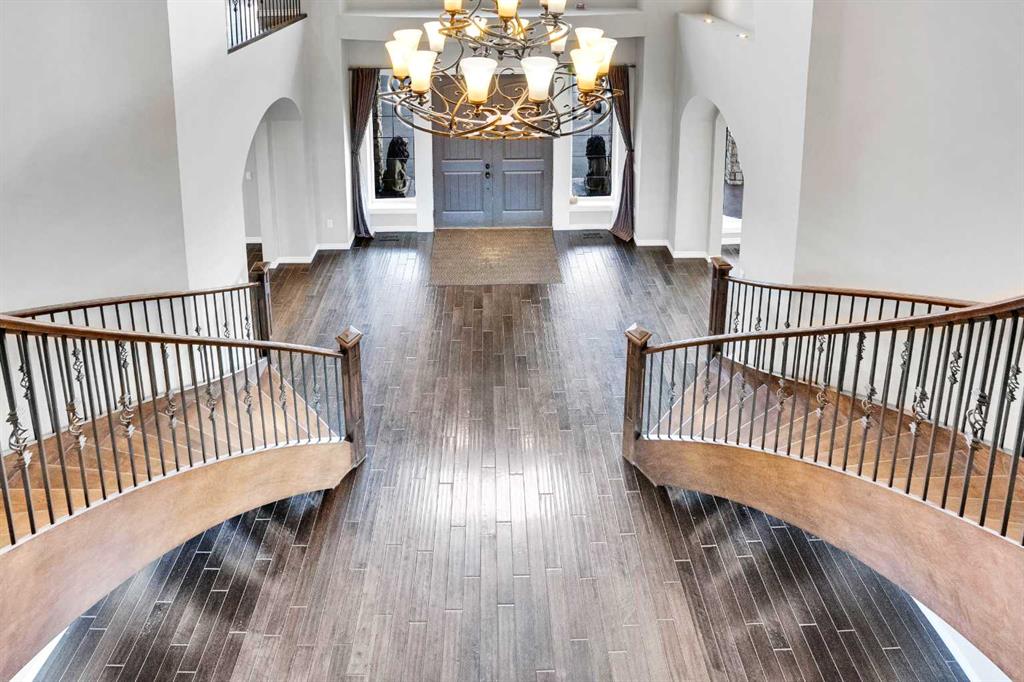 ?Welcome to this extraordinary custom-built estate offering over 7,000 sq ft of developed living space across three levels, including 4,682 sq ft above grade, all set on a beautifully positioned 4-acre parcel with a private gated driveway and a 4-car garage. Combining luxury, scale, and serenity, this remarkable property delivers peaceful country living just minutes from Calgary and Boulder Creek Golf Course. A grand double staircase and soaring open-to-below ceilings create a stunning first impression in the expansive foyer. The open-concept main floor showcases rich hardwood flooring, oversized windows framing panoramic views, and seamless flow designed for both entertaining and everyday living.? The chef-inspired kitchen features full-height cabinetry, stainless steel appliances, granite countertops, a hidden built-in range hood, wine cooler, built-in wine rack, and a large centre island with bar seating and bar sink. A walkthrough pantry connects directly to the mudroom and main-floor laundry for exceptional functionality. The bright dining nook and formal dining room both open through French doors to the massive north-facing deck, creating effortless indoor-outdoor living. The inviting living room is anchored by a double-sided gas fireplace shared with the kitchen, adding warmth and ambiance. A main-level office/den provides the perfect work-from-home space.? Upstairs, you’ll find three spacious bedrooms and a large family room with lofted ceilings that enhance the home’s grandeur. The primary suite is a private retreat featuring a west-facing balcony with mountain views. The luxurious 5-piece ensuite offers a deep soaking tub set against a wall of windows, a tiled steam shower with bench seating, dual vanities, a private water closet, and a custom walk-in closet with built-in organization. Bedrooms two and three share a well-designed 5-piece bathroom with dual sinks and a separate shower/tub and toilet area—ideal for family living.? The bright walkout basement offers an additional 2,347 sq ft of space, is PAINT READY and fully developed featuring a recreation area, home theatre, gym, or additional bedrooms, 2 full bathrooms.? This one-of-a-kind estate blends breathtaking views, expansive living spaces, and refined finishes in a highly desirable location just minutes from the city. A rare opportunity to own a truly remarkable home that must be experienced to be fully appreciated.