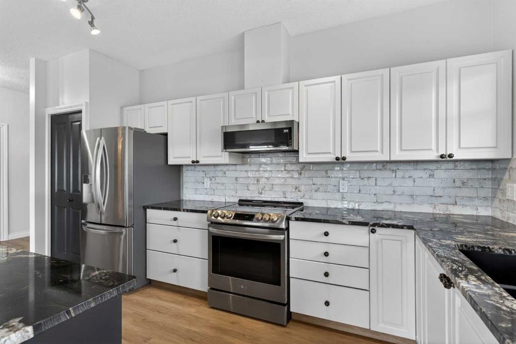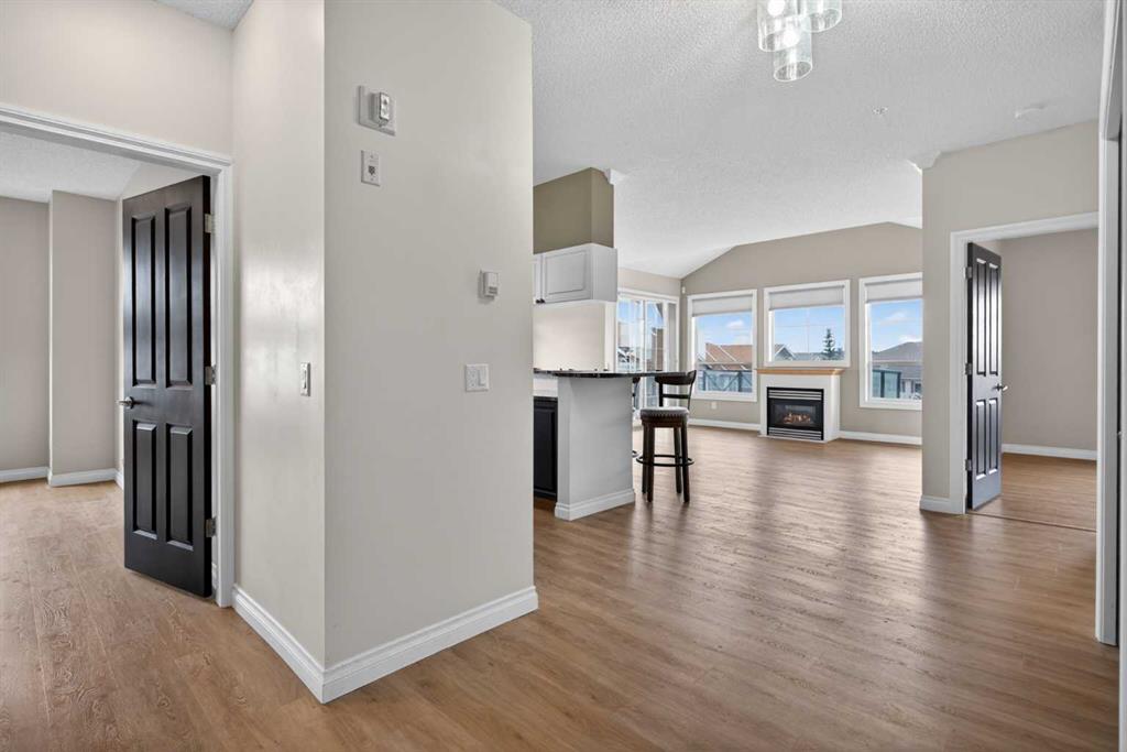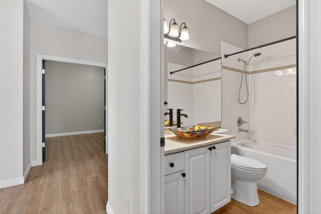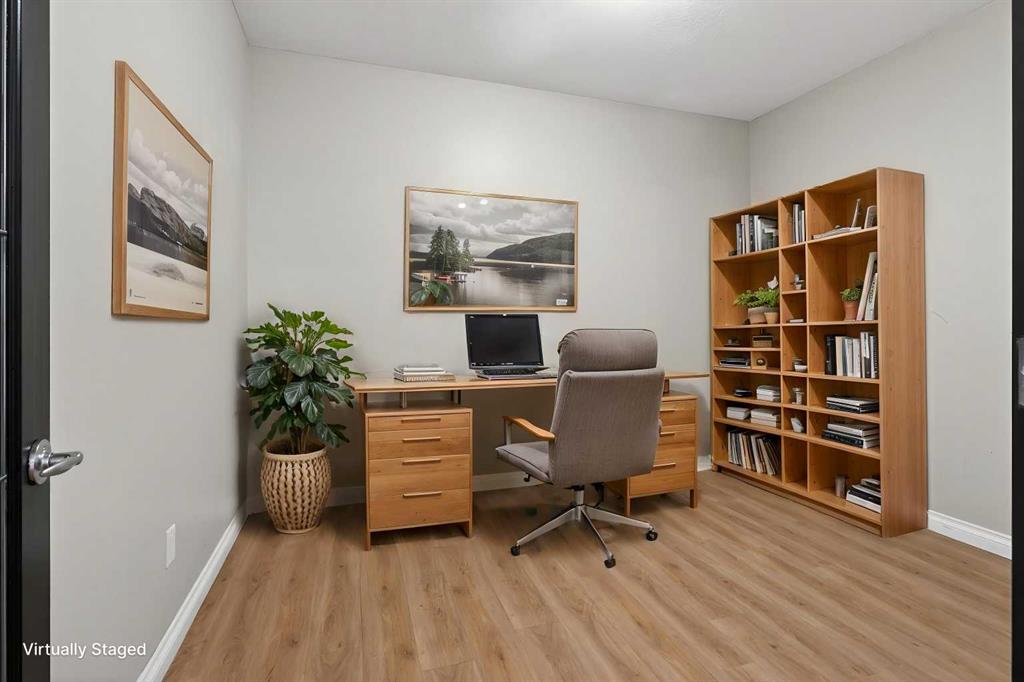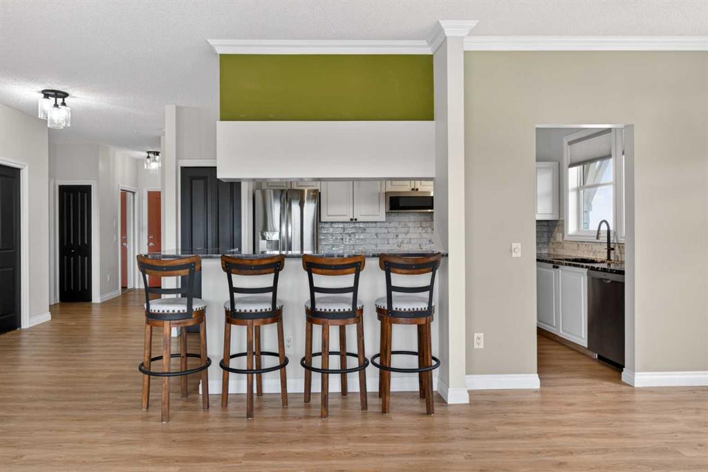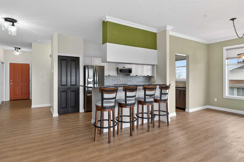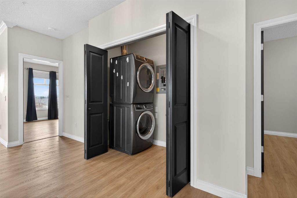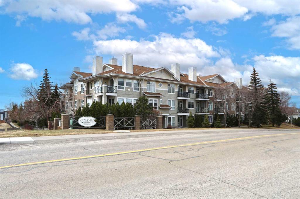 Not-to-miss chance for your new home in this beautifully updated penthouse here in the popular STONECROFT ARBOUR LAKE project…a stunning top floor condo with 2 bedrooms + den, luxury vinyl plank floors throughout, 2 titled underground parking stalls & sensational wraparound balcony. Showcased by expansive 9ft ceilings & natural light, you will just love the open concept flow of this dynamic air-conditioned home, with its gracious West-facing living room with vaulted ceilings & gas fireplace with wall-to-wall windows, spacious South-facing dining room & stylish renovated kitchen with granite counters & raised bar, tile backsplash & stainless steel appliances including Bosch dishwasher & LG induction stove/convection oven. The primary bedroom is a glorious size & comes complete with large walk-in closet & sleek ensuite with built-in cabinets, glass shower & granite-topped vanity. The 2nd bedroom is next to the 2nd full bath…which has an art-déco vessel sink. Great-sized home office with glass French doors & insuite laundry/storage room with stacking Electrolux washer & dryer. The incredible balcony…at approx. 270sqft, will surely become your favourite outdoor space for entertaining, relaxing in the fresh open air or to just take in the panoramic views of the surrounding neighbourhood, Nose Hill Park, the foothills & downtown. And in the underground parkade is where you’ll find your 2 parking stalls…side-by-side…conveniently located just steps from the elevator & your storage locker. Monthly condo fees include heat & water-sewer. The residents of STONECROFT ARBOUR LAKE have access to inviting lounges with kitchens & fireplaces, bike storage, guest suites, workshop & plenty of parking spaces for their visiting friends & family. The popular Arbour Lake Residents Club & the lake are literally only minutes away…with sandy beaches, tennis courts & playground, & is the site of year-round community activities: boating, fishing, ice skating & so much more. Prime location here in Northwest Calgary’s only lake community walking distance to bus stops & close to neighbourhood schools, & within easy reach is Crowfoot Centre with shopping, restaurants, services & the LRT. Quick access to both Stoney & Crowchild Trails, providing quick access to the University of Calgary & hospitals (Foothills, Alberta Children’s & Arthur J. E. Child Cancer Centre), major retail centers, YMCAs (Shane & Melcor), Crowfoot Library & downtown.