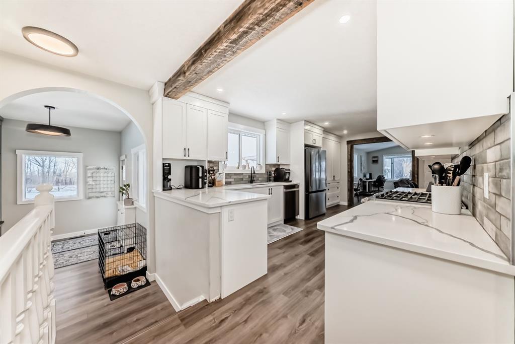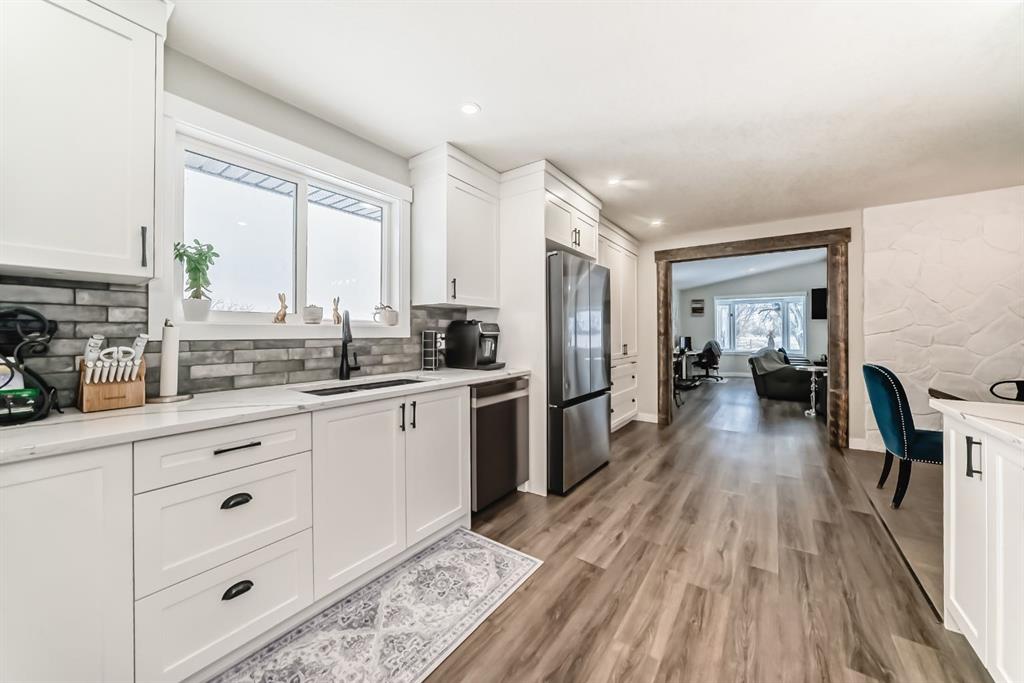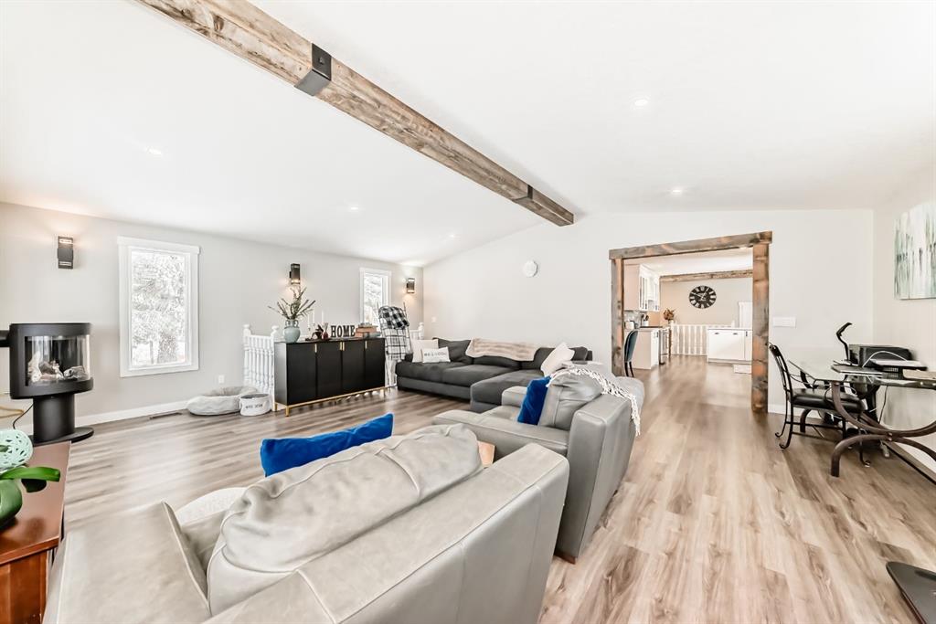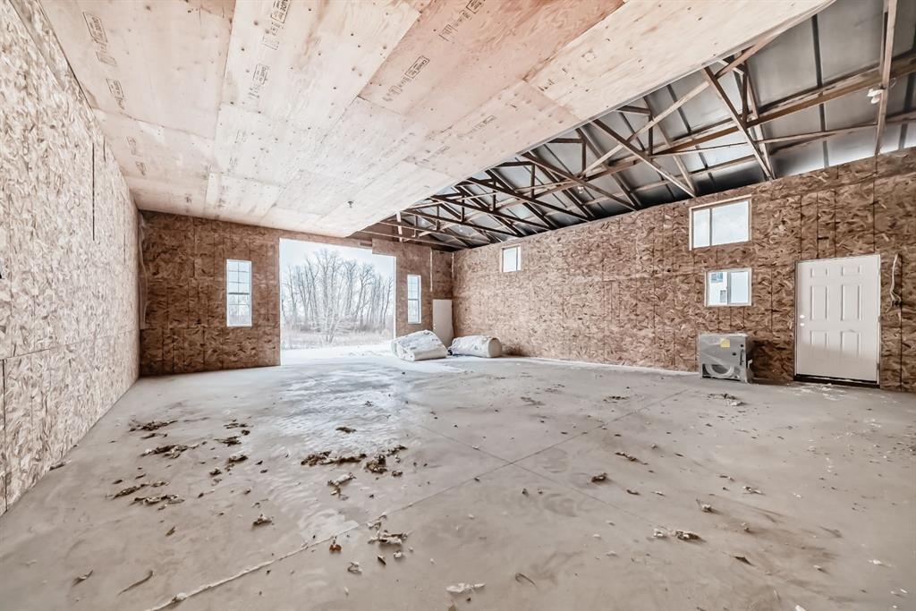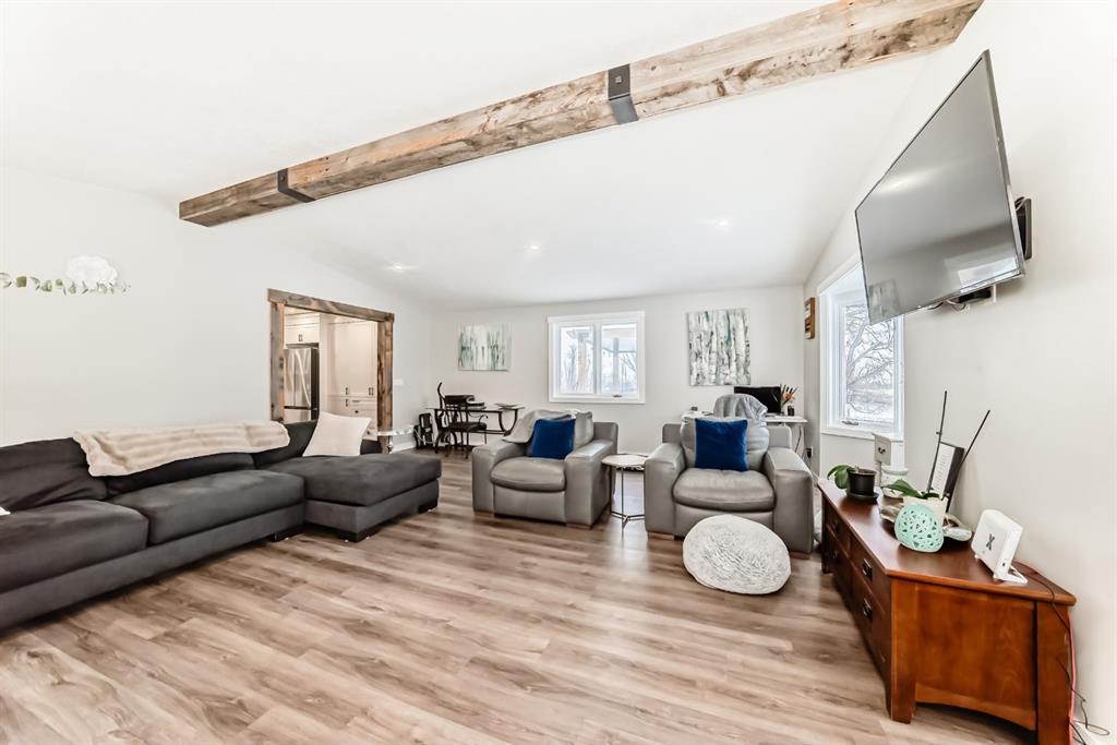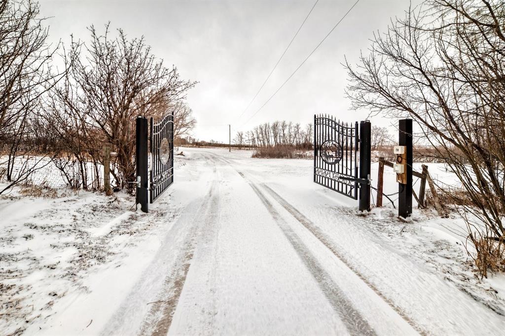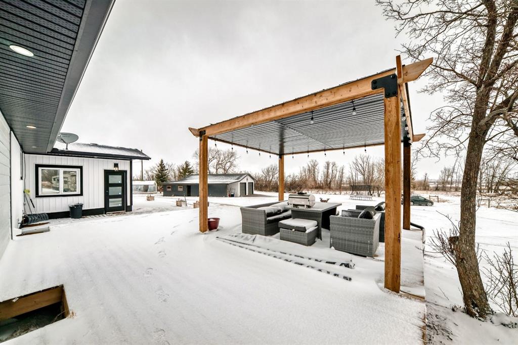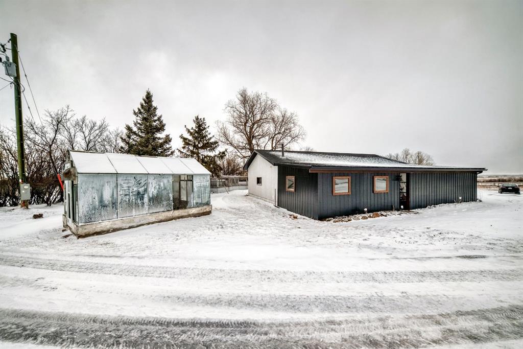 This is a HOUSE 7 MINUTES TO STRATHMORE, PRIVATE AND LOTS OF TREES!! This home has been completely renovated! Driving up you will notice the tasteful metal gates and paved driveway. The outside has new roof, hardy board, vinyl and metal siding as well as deck all within the last 3 to 4 years. The inside has all been redone in the last 3-4 years as well. Walking in you are welcomed by the most amazing entry way with built in coat and boot closets. There is a sink to scrub off before entering your beautiful country home. The kitchen is complete with tasteful cupboards and granite counters, gas stove, stainless appliances and a large dining area for the whole family. the living room has many windows with views and is spacious. There is main floor laundry, a fully updated 4 piece bath for the 2 junior bedrooms. The primary room was reconstructed and has a beautiful walk in shower with sink and toilet as well it will fit a king bed and has a door to your back yard currently a dog run. The lower is fully finished with another bedroom, large flex (family room), massive games room, another modern 4 piece bath, 2 storage rooms and more. This home also has hot water on demand, central air conditioning, a 30x40 shop waiting for your choice of over head door, the floor is newer concrete, insulation is done and most of the boarding. There is also a green house, a chicken coop and more. You will also enjoy your coffee on the east facing front deck. This home is not a mobile home it is a house.