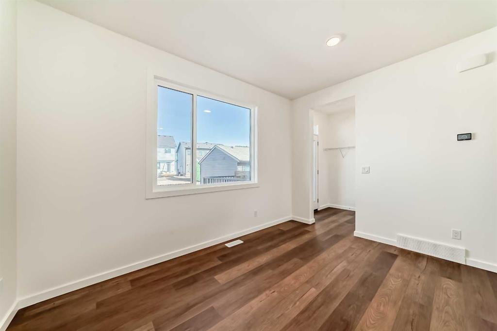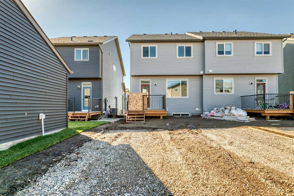 IF YOU’RE GOING TO START SMART, START HERE! This Alexis model from Homes by Avi doesn’t just check the boxes—it builds in future flexibility you won’t get from your average duplex. NO CONDO FEES. No outdated finishes. Just 1,480 sq ft of smart planning, clever upgrades, and everyday ease—right in Rangeview Springs, one of Calgary’s most forward-thinking new communities. The kitchen leads the charge with quartz counters, a SILGRANIT UNDERMOUNT SINK, CHIMNEY-STYLE HOOD FAN, BUILT-IN MICROWAVE, and 42” UPPERS that actually fit the serving platters. And yes, the appliances are included (and will arrive before possession). The floorplan’s what really wins here—open, but not echo-y. The kitchen anchors everything without turning into a hallway, the dining nook fits an actual table, and the living room doesn’t force you to float a loveseat in the middle of nowhere. It just works, without needing an explanation. Upstairs, you’ll find two secondary bedrooms, upper-floor laundry, a main bath, and a surprisingly spacious master that easily accommodates your furniture—no Tetris required. There’s also a walk-in closet and private ensuite to keep the morning rush civilized. But the real win is downstairs: a SEPARATE SIDE ENTRANCE, 9’ FOUNDATION WALLS, a SOLAR CONDUIT ROUGH-IN, 200 AMP SERVICE, and rough-ins for a future bathroom, laundry, and utility sink. Whether you want to finish it now, later, or just keep your options open, this basement is BUILT FOR FLEXIBILITY. Out front, you’ve got FRESH LANDSCAPING. Out back, there’s a gravel parking pad with room for two. And just beyond your door? Rangeview’s network of TREE-LINED PATHWAYS are already taking shape—designed to connect neighbours, not just houses. AVAILABLE FOR IMMEDIATE POSSESSION, and easier to show than ever. Book a visit, bring your questions, and see what a better beginning can look like.
