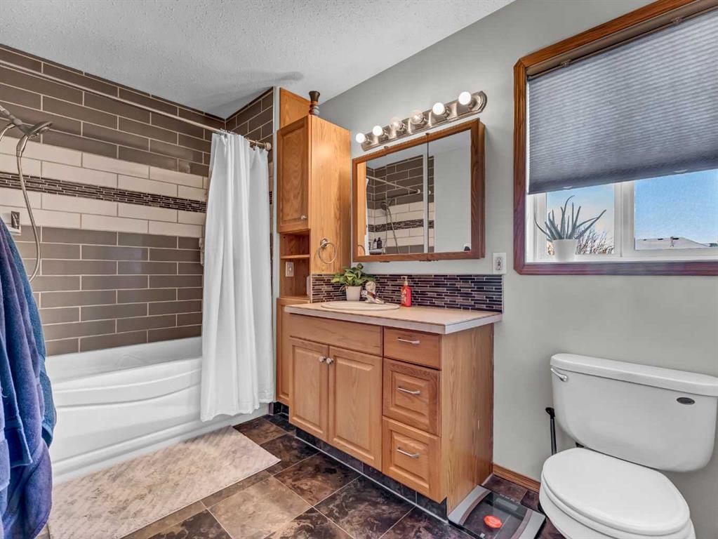 Bright and inviting, this great home offers 4 bedrooms and 3 bathrooms across a functional and comfortable layout. The upper level features a distinctive living room that creates impressive ceiling height, with two short steps leading up to a spacious, eat-in kitchen. This kitchen offers an efficient L-shaped design, a pantry and door onto the back deck over looking the yard. Down the hall, you’ll find main-floor laundry, a generous 4-piece bathroom, a secondary bedroom, and the primary suite, complete with a 3-piece ensuite and double closets. The fully developed basement provides a versatile open area. It also includes a 2-piece bathroom with a door to one of the basement bedrooms, along with an additional fourth bedroom to complete the floor plan. Outside, the property offers an upper deck, a fully fenced and landscaped yard, and a double heated detached garage with alley access. The charming curb appeal is enhanced by a double driveway, providing ample overflow parking. This is a perfect place to call home.
