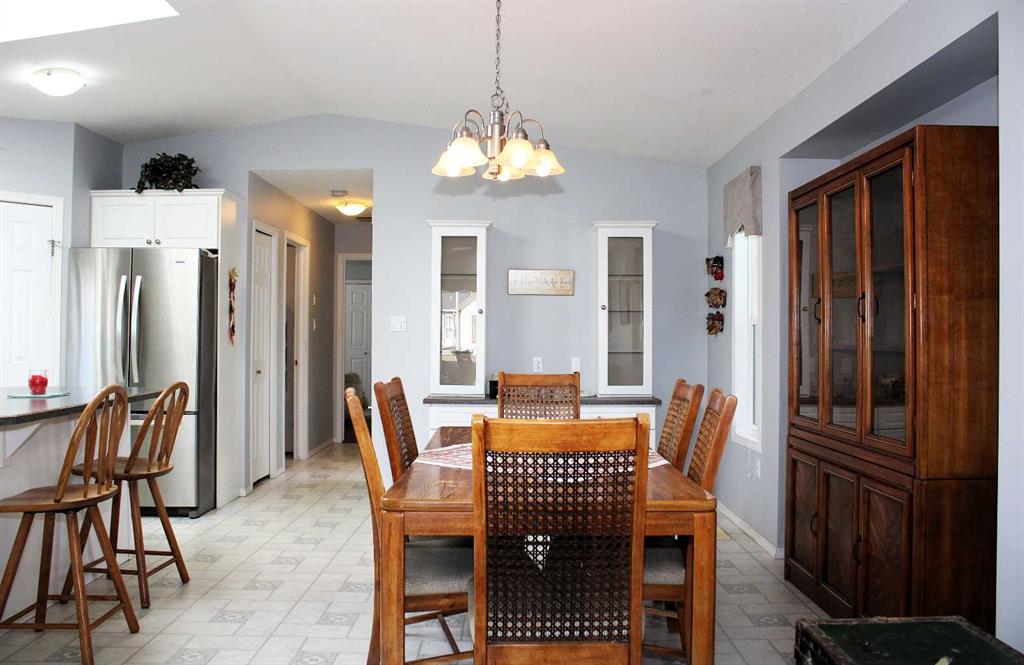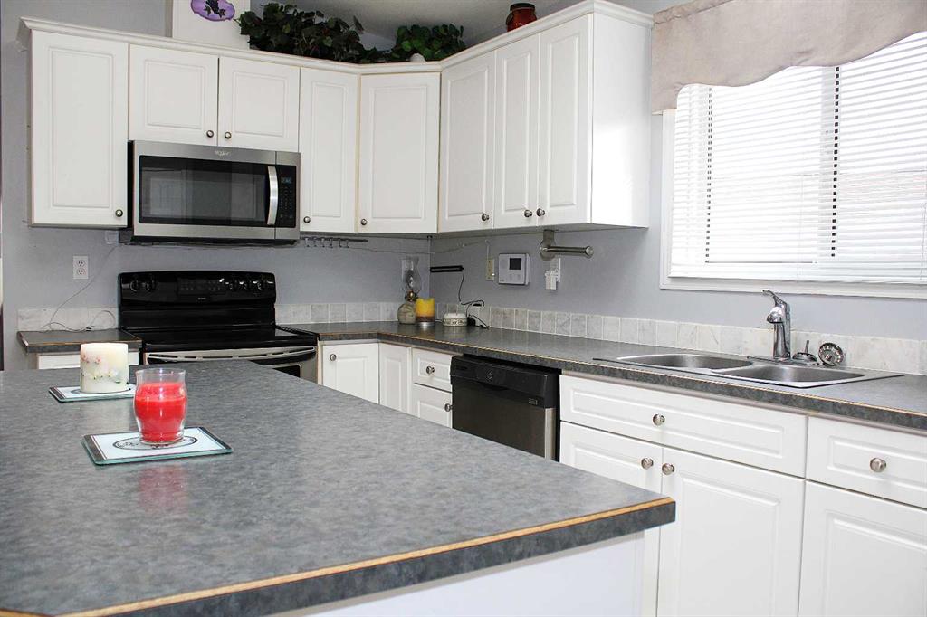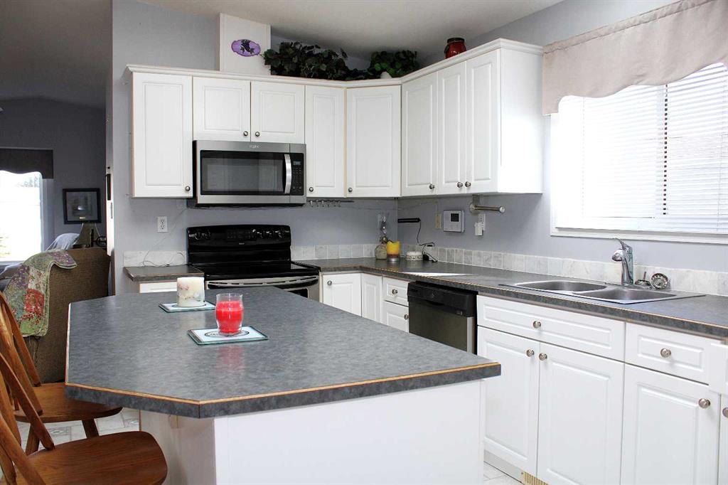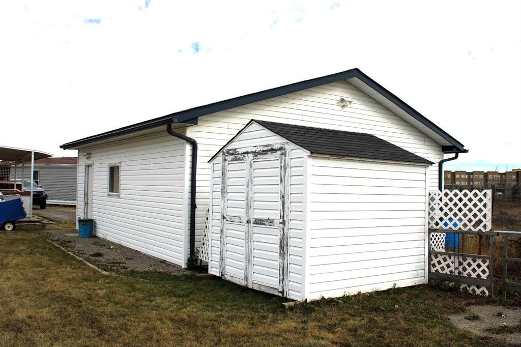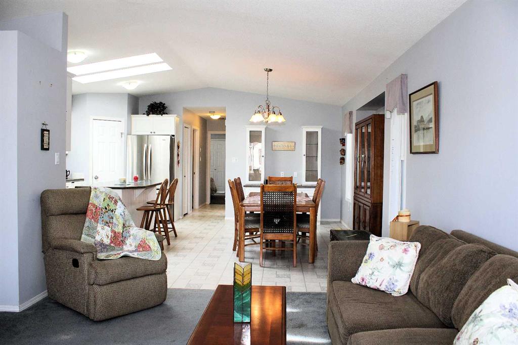 Located in a quiet, family-friendly neighbourhood, this property provides easy access to nearby walking trails, schools, shops, and restaurants. Residents benefit from the peaceful setting while remaining close to all of Sundre's key amenities. Noblefern Way is designated for modern modular residences situated on town-sized titled lots, free from condominium or strata fees. Lot #24 offers a spacious, pie-shaped configuration with views of the western green space and the added benefit of no neighbouring properties to the rear. The 20-foot-wide, 2-bed, 2-bath drywalled modular home offers the comfort and appearance of a traditional bungalow. One of its best features is the closeted foyer. Here is room to take off your shoes and hang your coat without cluttering the main living area, keeping the entrance organized and welcoming for both guests and residents. The vaulted ceilings add spaciousness, and the large windows bring in natural light. Double skylights in the kitchen brighten the heart of the home, creating an airy, light-filled space perfect for family meals or entertaining friends. A central island provides extra storage space and seating. There is an abundance of crisp white upper and lower cabinetry and counterspace. A huge corner pantry is essential, ensuring that groceries and kitchen essentials are easily accessible and neatly organized. The kitchen is designed to keep family life running smoothly. Modern finishes and thoughtful touches throughout ensure everyday comfort, while ample storage makes this house both practical and stylish. The great layout continues beyond the kitchen and living areas, seamlessly integrating functionality with comfort throughout the home. Adjacent to the main spaces, the rear entry’s stackable laundry and generous storage solutions make household chores efficient and organized. Across the hall is a convenient four-piece bathroom, brightened by a skylight. The second bedroom works perfectly as a flexible space for guests, a home office, or a fitness area, blending with your lifestyle needs. Located at the far end, the primary suite offers a refined living space with an expansive walk-in closet, a dedicated computer workspace, and storage solutions to maintain organization. The ensuite bathroom includes a corner jetted tub and an ample counter area featuring dual sinks. The southwest-facing covered deck and spacious ground-level deck that stretches 32 ft extends the living space outdoors, providing the ideal setting for relaxing in the fresh air. A detached double-car garage provides ample secure parking and additional storage space for your vehicles, outdoor gear, and tools. Easily accessible from the backyard, this versatile structure enhances daily convenience and supports an active lifestyle, whether you need room for hobbies, gardening supplies, or space for a workshop. Its placement complements the overall property, rounding out the home’s appeal with practical outdoor features that make living here AWESOME !!