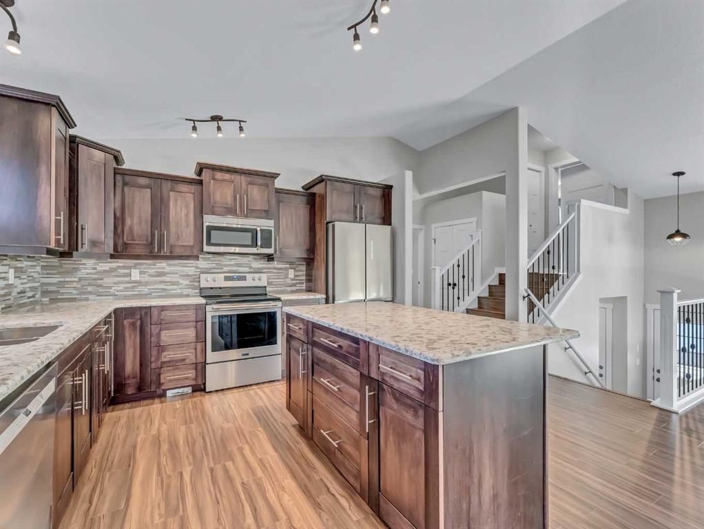 24 Upland Place is in the most wonderful, family friendly location... And this property is a WOW!! Exquisite attention to detail has been paid to the every square inch of this spectacular 5 bedroom, 3 bathroom, 100% move in ready home! Each room is better than the last... A gorgeous kitchen on the open concept main floor, highlighted by vaulted ceilings, beautiful floors and styled to perfection! The main floor features the kitchen, living room and dining area that opens to the covered back deck, as well as two bedrooms, main bathroom and a large pantry. Retreat to the Primary Suite situated above the garage and enjoy the generous square footage, highlighted by a walk in closet and full ensuite bathroom. A bright and open concept basement includes bedroom 4 & 5, a large bathroom/laundry room, an extra large family room and utility room. Enjoy the attached heated garage in the front, featuring a large concrete driveway! This home checks of all of the boxes and beyond, including but not limited to granite countertops, Control 4 System, central A/C, central vac, covered back deck, tankless hot water and much more! Built in 2014, this home still feels like NEW!