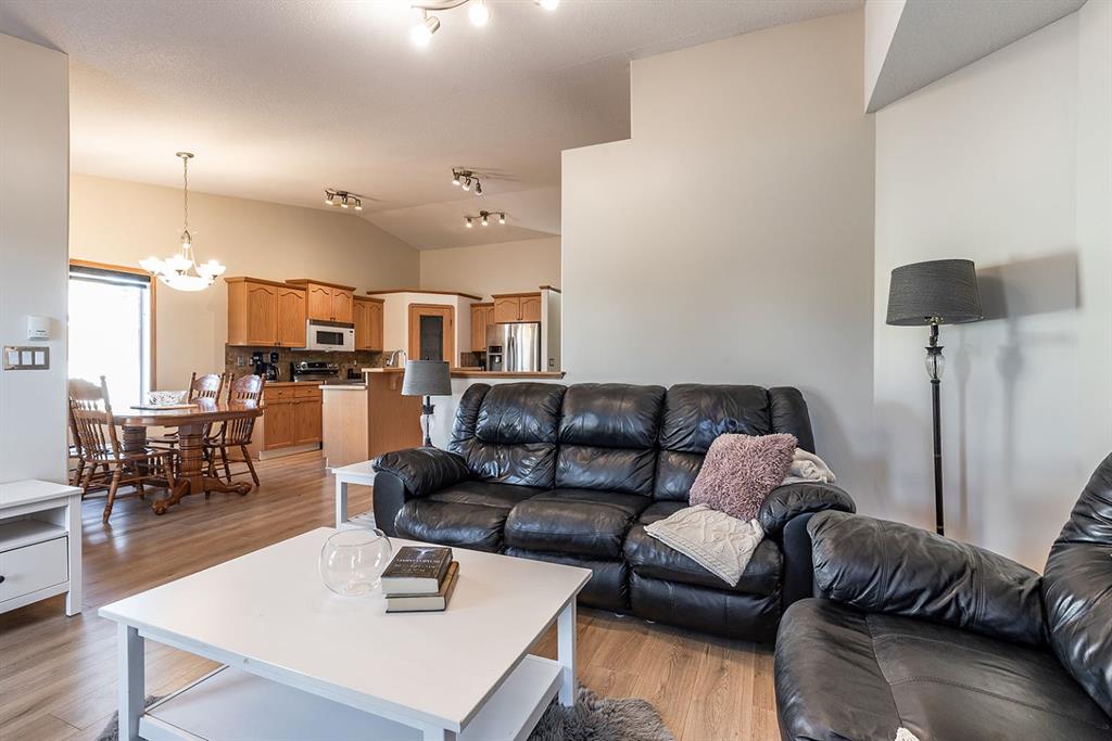 This beautifully designed 1,200+ sq ft bungalow is ideally positioned on a corner lot, showcasing a timeless brick front exterior, masonry fencing, and a thoughtfully planned low-maintenance yard complete with a storage shed. From the moment you enter, you’ll appreciate the bright, open layout enhanced by vaulted ceilings and vinyl plank flooring throughout the main level. The heart of the home is the spacious kitchen, featuring stainless steel appliances, a large island with seating, ample cabinetry, and seamless flow into the dining and living areas—perfect for both everyday living and entertaining. The inviting living room is anchored by a cozy gas fireplace, creating a warm and welcoming atmosphere year-round. Just off the main living space, step onto the oversized deck, ideal for summer barbecues, outdoor dining, or relaxing evenings. The main floor offers two generous bedrooms, including a primary suite with its own ensuite, along with a dedicated office—perfect for remote work or a quiet study space. Main floor laundry adds everyday convenience and completes the highly functional layout. Downstairs, the fully finished basement expands your living space with two additional bedrooms, a modern 3-piece bathroom with walk-in shower, and a well-appointed bar and entertainment area, making it an ideal space for hosting guests, movie nights, or accommodating family and visitors. Additional highlights include a double attached garage, ample storage options, and a layout that offers comfort, style, and practicality. This move-in-ready bungalow combines quality finishes, versatile living spaces, and an excellent location—perfect for families, professionals, or those seeking single-level living with room to grow.