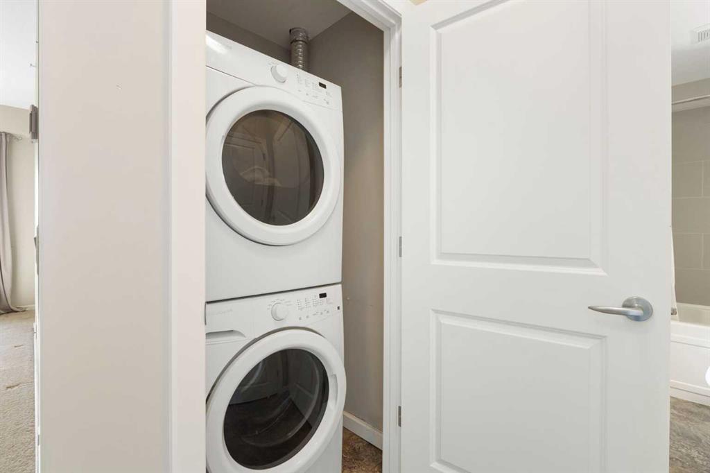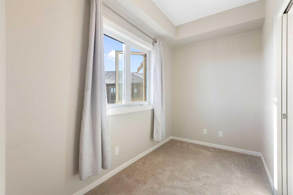 Beautifully maintained top-floor 1 Bedroom + Den in the adult (18+) Kincora Summit. This quiet, well-managed complex offers a calm and comfortable setting with beautifully kept grounds and excellent maintenance throughout. The home features 9’ ceilings, an open layout and 670 sq ft of well designed living space. A standout feature of this home is the large balcony overlooking the courtyard, making it the perfect place to relax or BBQ (gas hookup on balcony) The kitchen includes stainless-steel appliances, a breakfast bar, and plenty of storage. The spacious bedroom offers a walk-through closet and 4-piece cheater ensuite. The den is a great added touch, with sliding glass doors for added privacy. This home Includes one titled underground parking with assigned storage and is conveniently located close to the elevator. Kincora Sumit is close to shopping, restaurants, and major routes.