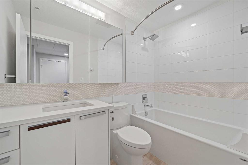 Welcome to Ezra on Riley Park, a truly unique address in the heart of Hillhurst, where stylish city living meets the serenity of nature. Nestled along the edge of the iconic Riley Park, this sophisticated 2-bedroom, 2-bath condo offers a rare opportunity to experience the best of inner-city Calgary—with breathtaking views, upscale design, and unmatched walkability. From the moment you step inside, you'll feel the difference. A spacious foyer welcomes you with beautiful textured engineered hardwood flooring, leading you into a thoughtfully designed open-concept living space filled with natural light streaming in through floor-to-ceiling windows. This home is perfectly framed by views of the lush greenspace just beyond, creating a seamless connection between indoor luxury and outdoor beauty. The kitchen and living area blend harmoniously, surrounded by oversized windows and double French sliding doors that open onto an expansive wrap-around balcony—an incredible outdoor living space measuring over 59 feet in total length, ideal for morning coffee, evening cocktails, or relaxing in your private oasis above the park. The modern kitchen boasts sleek stainless steel appliances, stylish white cabinetry with fridge panels to match, elegant glass tile backsplash, durable and beautiful silgranite sink and quartz countertops for a clean, contemporary finish. Both bedrooms are bright and inviting, featuring built-in closet organizers and a soft, modern color palette. The primary suite enjoys its own wing of the wraparound balcony and a private 4-piece ensuite, complete with classic tile flooring, full tile shower and tub combo and quartz vanity with undermount sink and built-in vanity. The second full bathroom, located near the entry for guests or family, mirrors the home’s elevated aesthetic. You'll also appreciate the in-suite laundry room, central air conditioning, and ample storage throughout. Additional highlights include a titled underground parking stall in a secure, heated parkade, assigned storage locker, access to a premium fitness centre and chic party room with your very own wine locker, pet-friendly and impeccably maintained building. Beyond your doorstep is the best of Calgary’s urban lifestyle. Riley Park as your backyard, complete with a cricket pitch, wading pool, new playground, and the Senator Patrick Burns Rock Garden. Steps from the Hillhurst Sunnyside community centre with tennis courts, weekly farmer’s markets, and live music. Easy stroll to the Kensington shopping district, Bow River pathways, SAIT, Jubilee Auditorium, cafés, transit, and the downtown core Ezra on Riley Park is more than a condo—it’s a lifestyle of tranquility, convenience, and contemporary charm in one of Calgary’s most vibrant, connected neighborhoods. Don’t miss this rare opportunity to live stylishly above the park—schedule your private showing today.