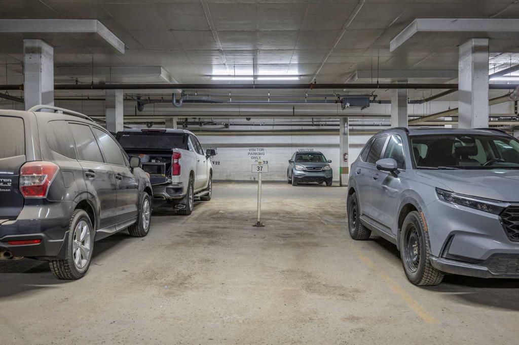 Welcome to the Alura! This bright CORNER UNIT is located on the 24tTH FLOOR and has panoramic views of the new Scotia Place, stampede grounds & the Rocky Mountains! . With an open floor plan boasting a full bank of windows to enjoy the views plus the living room which also has a patio door leading to your cover balcony and a well appointed kitchen this fully furnished home is move in ready and not to be missed. The kitchen has an extra large peninsula island with seating, tiled backsplash, white counters, stainless steel appliances and plenty of cabinets. There are 2 good sized bedrooms, which includes the primary with an ensuite and walk-in closet, the main bath, insuite laundry and a titled parking stall to complete this home. The Alura complex has much to offer from the 2 fitness centres, patio and garden areas and bike storage to the fact that it is just steps away from transit & LRT, parks, the stampede grounds, the many amenities of 17th Avenue and you can walk to work downtown! Don't miss out on this amazing opportunity!