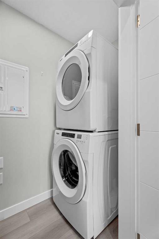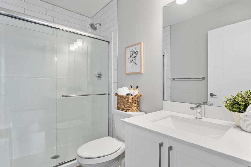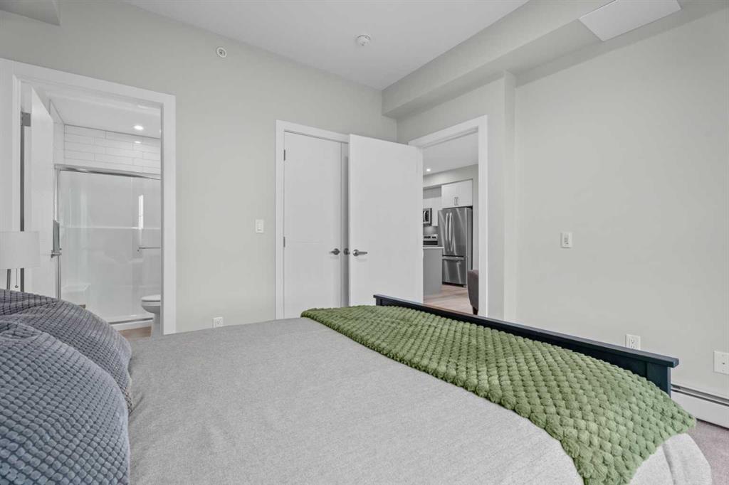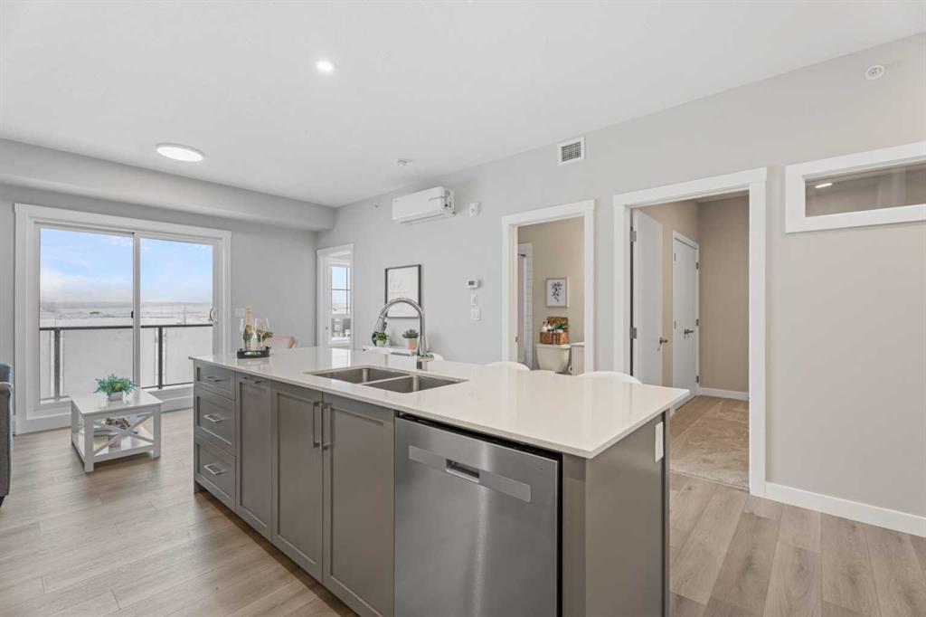 Better Than New in Lawrie Park! Gorgeous new construction without the wait!! Welcome to this gorgeous, upgraded 2 bedroom, 2 bathroom TOP FLOOR condo in the desirable Lawrie Park building in Wedderburn, Okotoks. Still under warranty and loaded with thoughtful upgrades, this home blends comfort, function, and style. Step into a bright white kitchen featuring a massive island, quartz countertops, and durable LVP flooring throughout the main living space. The open concept layout is perfect for entertaining or everyday living. Both bedrooms are spacious, with the primary suite offering a full ensuite and great closet space. Extras like in suite laundry, air conditioning, and a large balcony (with mountain views on a clear day!) overlooking the dog park make this home even more appealing, especially in a pet friendly building! You'll also enjoy the convenience of a heated underground parking stall, separate storage locker, and low condo fees. Located in vibrant Wedderburn, you're close to walking paths, schools, and exciting new commercial development. This condo truly feels better than new, move in and enjoy maintenance free living at its finest!