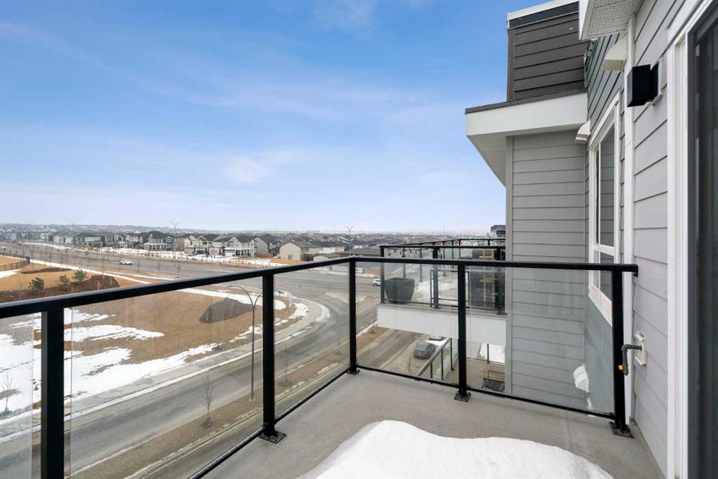 Modern, bright, and thoughtfully designed, welcome to this beautiful 2 bedroom, 2 bathroom condo in Carrington Plaza. Offering 842 sqft of well-planned living space, this east-facing unit enjoys excellent morning light and a unique sense of privacy thanks to the open field directly across the street, meaning no neighbours looking in. Inside, the open-concept layout creates an inviting flow between the kitchen, dining, and living areas, making the space ideal for both everyday living and entertaining. The modern kitchen features white quartz countertops, stainless steel appliances, light maple-toned cabinetry that extends to the ceiling, a white subway tile backsplash, pantry storage, and a convenient breakfast bar perfect for casual dining or morning coffee. Luxury vinyl plank (LVP) flooring runs throughout the main living areas, while the bedrooms offer soft carpeting for added comfort. One of the standout features of this home is the smart bedroom layout, with the two bedrooms positioned on opposite sides of the unit, ideal for privacy, guests, or a home office setup. The spacious primary bedroom easily accommodates a king-sized bed and connects to a walk-through area leading to your walk-in closet and private 4-piece ensuite. The ensuite features a full-sized shower and a double vanity with plenty of countertop space and storage. The second bedroom is also generously sized and includes its own walk-in closet, located just steps from the second full 4-piece bathroom with modern finishes that complement the rest of the home. Additional highlights include in-suite laundry with extra storage, a heated underground titled parking stall, and a separate storage locker. Located in the growing community of Carrington, you’ll enjoy quick access to Stoney Trail, major roadways, and nearby amenities, making commuting and everyday errands easy.