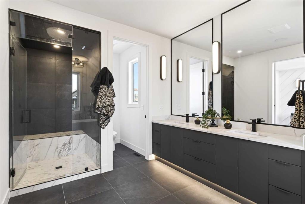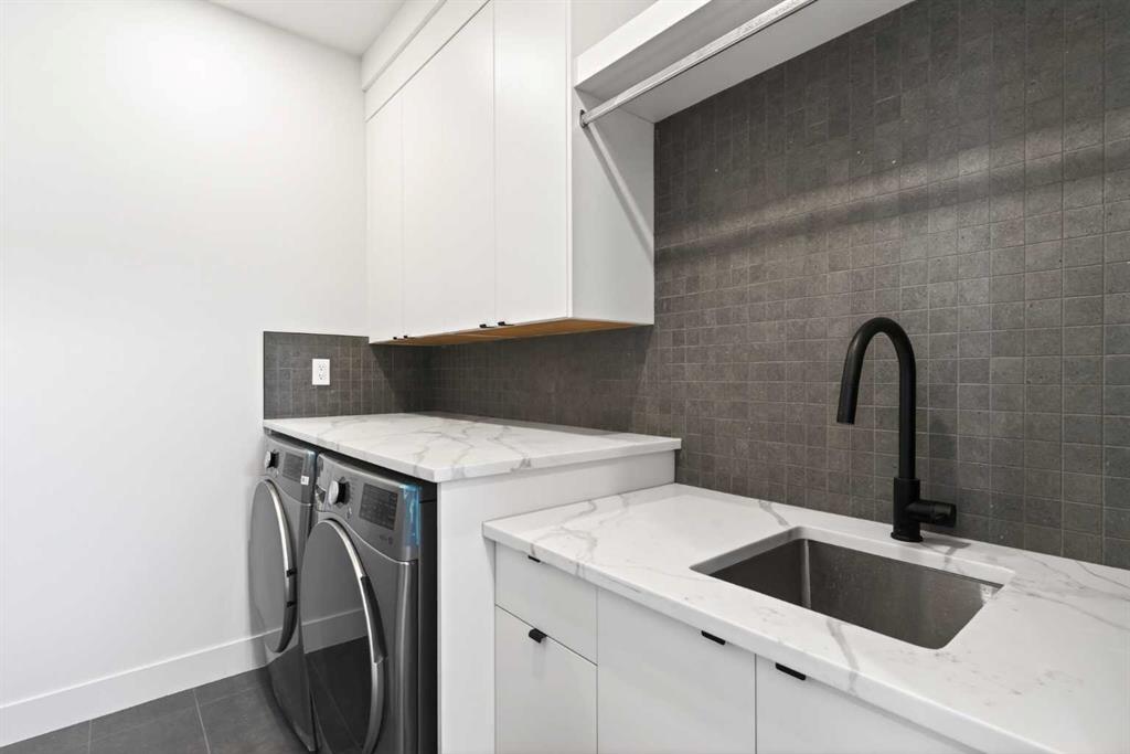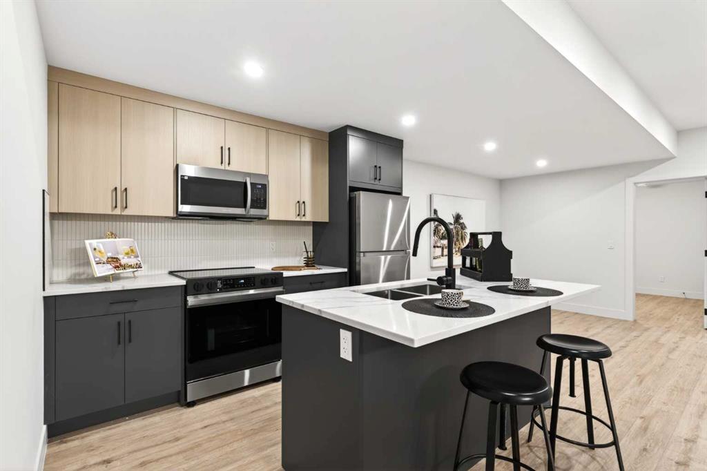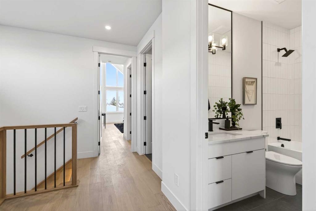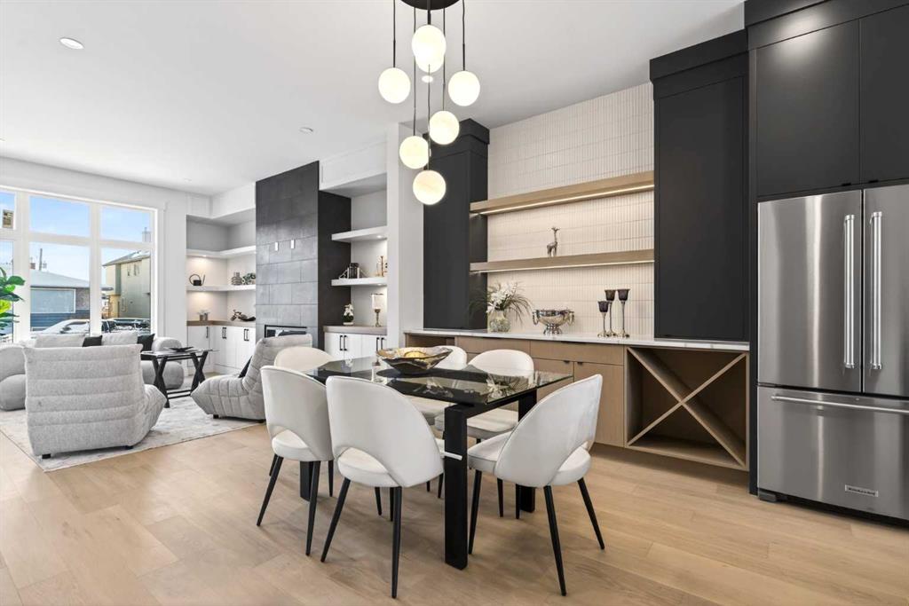 **Construction now Completed** Welcome to this brand-new, exquisitely designed luxury home located in the highly sought-after Killarney inner city area—an exceptional neighbourhood just minutes from downtown Calgary. This stunning residence offers superior finishes and thoughtful features that truly set it apart from the competition. Step into the unique main floor layout and be greeted by an inviting living room to your left, complete with a cozy fireplace and a discreet half bath. The centrally located dining area flows seamlessly into an adjacent built-in pantry and a spacious kitchen at the back, which overlooks a west-facing backyard with a raised deck — perfect for entertaining or relaxing outdoors. A practical mudroom with a walk-in closet completes the main level, providing ample storage and convenience. Upstairs, the large primary bedroom boasts a vaulted ceiling, private balcony, luxurious ensuite, and generous walk-in closet — a true retreat. Two additional secondary bedrooms feature elegant tray ceilings and walk-in closets, complemented by a well-placed upper laundry room for added ease. The fully finished basement offers a legal suite (pending full approval by the City of Calgary) with a central kitchen, two bedrooms positioned on opposite ends for privacy, and a shared living room area. The front bedroom includes a walk-in closet, sharing a modern four-piece bathroom. For ultimate comfort, the home is pre-wired with a rough-in for air conditioning and equipped with speakers on all levels. This home’s value lies in its exceptional style; stunning curb appeal, high-end finishes, and thoughtfully designed living spaces that elevate everyday living.. Don’t miss your chance to own this remarkable and stylish new construction home in the beloved Killarney community.