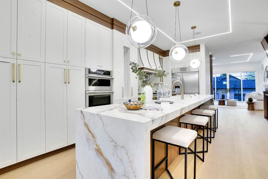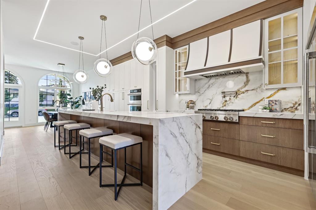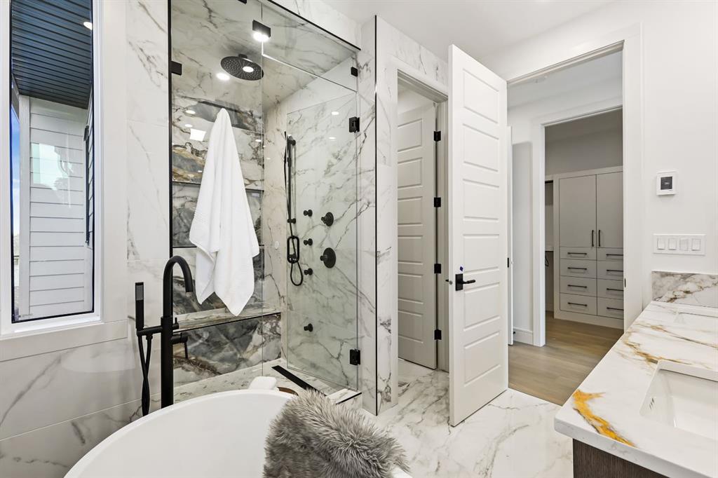 OPEN HOUSE OCT 11,2025 FROM 1.00 PM TO 4.00 PM, From the very first glance, The elevated exterior design of this home speaks volumes—you can feel the Luxury and Sophistication just from its Striking Curb Appeal. Nestled in one of Calgary’s most sought-after communities, This stunning residence by Edge Luxury Homes—A builder celebrated for exceptional craftsmanship and timeless design—seamlessly blends prestige with modern comfort. Its bold white stone veneer façade, complemented by custom concrete stairs and a premium exposed colour concrete sidewalk, sets the tone for the elegance within. Inside, every detail is thoughtfully curated for both upscale living and refined entertaining. The grand formal dining room welcomes memorable gatherings, while the open-concept living area—anchored by a custom gas fireplace with built-ins—creates warmth and charm. Ambient strip lighting throughout the main floor adds an elevated, contemporary touch. At the heart of the home, the chef-inspired kitchen boasts a sprawling island,High end quartz countertops, full-height custom cabinetry, and premium JennAir appliances. Expansive patio doors connect seamlessly to the large back deck, blending indoor and outdoor living. A private home office, elegant powder room with heated -cooled smart Toilet, and designer mudroom with a custom feature wall complete the main level. Upstairs, retreat to the serene primary suite with it's own fireplace for cozy nights, where a spa-like ensuite awaits—featuring a soaking tub, glass-enclosed shower with steam rough-in, dual vanities, in-floor heating, heated-cooled smart Toilet, and a walk-in closet. Two additional bedrooms each offer walk-in closets and share a Jack & Jill bathroom with dual vanities and a private shower area. The fully developed basement extends the living space with a custom media room and wet bar, perfect for entertaining. A private gym, spacious fourth bedroom, full bath, and even a rough-in for a pet wash station ensure every lifestyle need is met. Outside, the home is complemented by a double detached garage, fully drywalled and painted, offering secure parking and excellent storage. Located in vibrant South Calgary, you’re minutes from parks, boutique shopping, fine dining, and top-rated schools. A true masterpiece of modern design and everyday comfort—this rare offering is one you won’t want to miss.