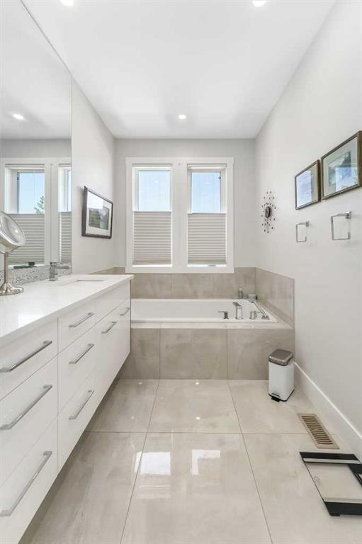 Not all infills are created equal. This modern Killarney residence stands apart with craftsmanship you can see, and construction you can feel. Bathed in natural light through oversized windows and framed by 10’ main-floor ceilings, the home balances warm engineered hardwood with a refined, contemporary palette. From the moment you step inside, the fit and finish telegraph quality: crisp lines, precise millwork, and a floor plan that moves effortlessly from everyday living to elegant entertaining. At the front, a formal dining room sets the tone, three large picture windows, a statement light fixture and room for those long, lively dinners. The heart of the home is an oversized chef’s kitchen that’s both beautiful and hard-working: white and warm wood-grain cabinetry to the bulkhead, gleaming waterfall quartz counters, built-in wall oven, a gas cooktop beneath a sleek stand-alone hood fan, and a Carrara marble herringbone backsplash that wraps the hood for a bespoke, designer finish. The generous island invites coffee catch-ups and weekend prep, while the full upgraded stainless appliance package delivers performance worthy of the space. Anchored by a tiled gas fireplace with custom open shelving, the living room is scaled for comfort and conversation. It flows naturally to the backyard for easy summer living, with over $40k in low maintenance landscaping with concrete walkways, a large patio, and BBQ gas hookup so hosting is as simple as turning a knob. Upstairs, the private retreat continues the theme of understated luxury. The primary suite features a tray ceiling, upgraded blinds, and a walk-in closet fit with custom built-ins. The spa-calibre 5-piece ensuite pampers with a freestanding soaker tub, an oversized glass shower, 24"×24" tile, in-floor heat, and a steam rough-in already planned into the layout. Two additional bedroom suites are thoughtfully finished—each with true walk-in closets and custom storage (one with a stylish wallpaper feature wall). A proper laundry room, complete with cabinetry, folding counter, and sink—keeps the day-to-day running smoothly. The fully finished basement is made for movie nights and game days. A large rec/media area includes a custom wet bar with sink, wood-grain and white cabinetry, marble tile backsplash, and a wine fridge,an entertainer’s ally. Berber carpet adds warmth underfoot, while in-floor heating keeps the entire level comfortable year-round. A sleek 3-piece bathroom with a floating vanity serves guests with style. And because true quality goes beyond finishes, this level was engineered with approximately six inches of insulation beneath the slab for superior efficiency and comfort. Set on a quiet inner-city street in the heart of Killarney—close to parks, schools, transit, and the best of local cafés and amenities—this home delivers the rare combination of design, durability, and day-to-day livability. If you value details you can feel as much as finishes you can see, you’ll know...this is the one.
