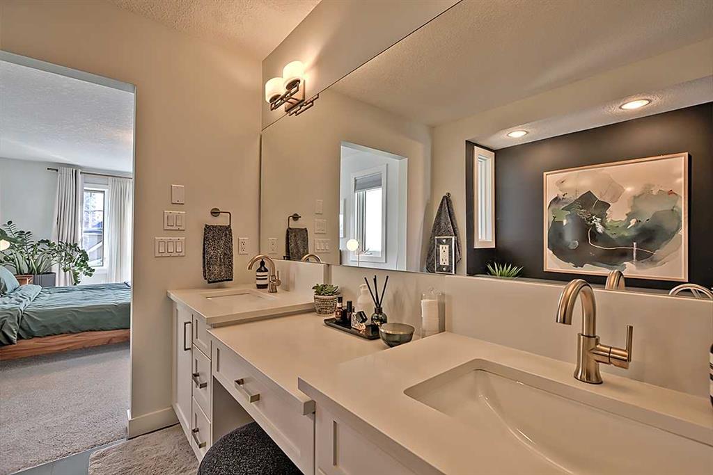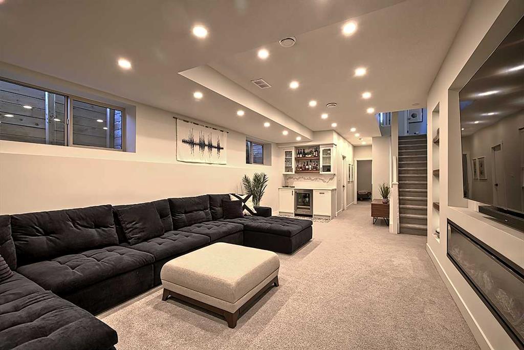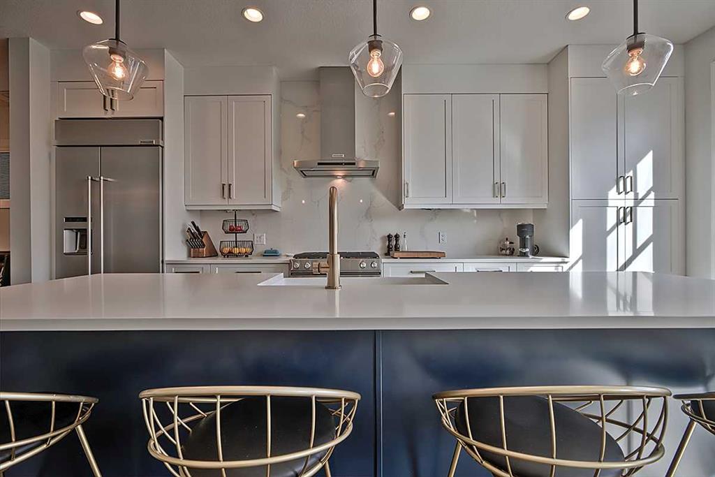 OPEN HOUSE Sat 2-4PM ** MOVE-IN READY and extensively upgraded, this fully developed detached 3-storey home offers over 2200 sq ft of luxurious living space, featuring 4 bedrooms, a rare third-floor 300 sq ft loft, and an insulated double car garage. From the moment you arrive, you’ll appreciate the exceptional curb appeal with brick detailing, refreshed exterior finishes, and a beautifully re-landscaped front yard with an exposed aggregate walkway. Inside, timeless craftsmanship meets modern design with premium engineered hardwood flooring and a stunning custom-built-in bench paired with a large, sophisticated dining table in the perfectly situated dining area, all complemented by iron railings leading to the upper levels. The fully renovated kitchen is a standout, showcasing custom solid white cabinetry with soft closing drawers, a large island featuring an undermount apron sink with quartz waterfall countertop, a full-height quartz backsplash, and a full KitchenAid Pro Line Series appliance, including a gas stove, built-in refrigerator, and hood vent, along with a built-in pantry for added convenience. Upstairs, the spacious primary suite features dual closets, and a luxurious 5-piece ensuite complete with dual sinks, a built-in vanity, a large soaker tub, and a separate shower. At the front of the second floor, you’ll find two generously sized bedrooms and an additional 4-piece bathroom, perfect for a growing family, along with the convenience of second-floor laundry with built-in storage. The third-floor loft provides incredible flexibility, ideal for a home office, bonus room, or private retreat. In the lower level, you will find a great place to spend family time. This fully finished basement offers a bedroom, a three-piece bathroom, a bar area, and a large family room perfect for guests or a growing family. Since 2019, this home has seen extensive, high-quality upgrades, including a fully renovated kitchen and bathrooms with Delta fixtures and American Standard toilets, premium Shaw carpeting, designer lighting throughout, a Daikin 98% high-efficiency furnace, ultra-quiet Daikin air conditioning, a new hot water tank, and a custom dining banquette. Exterior improvements include updated landscaping, upgraded masonry and siding at the front entry, and professional exterior painting. This meticulously maintained, turnkey home offers the perfect blend of style, comfort, and modern efficiency, all within walking distance of downtown or Marda Loop's restaurants, pubs, and trendy shops.