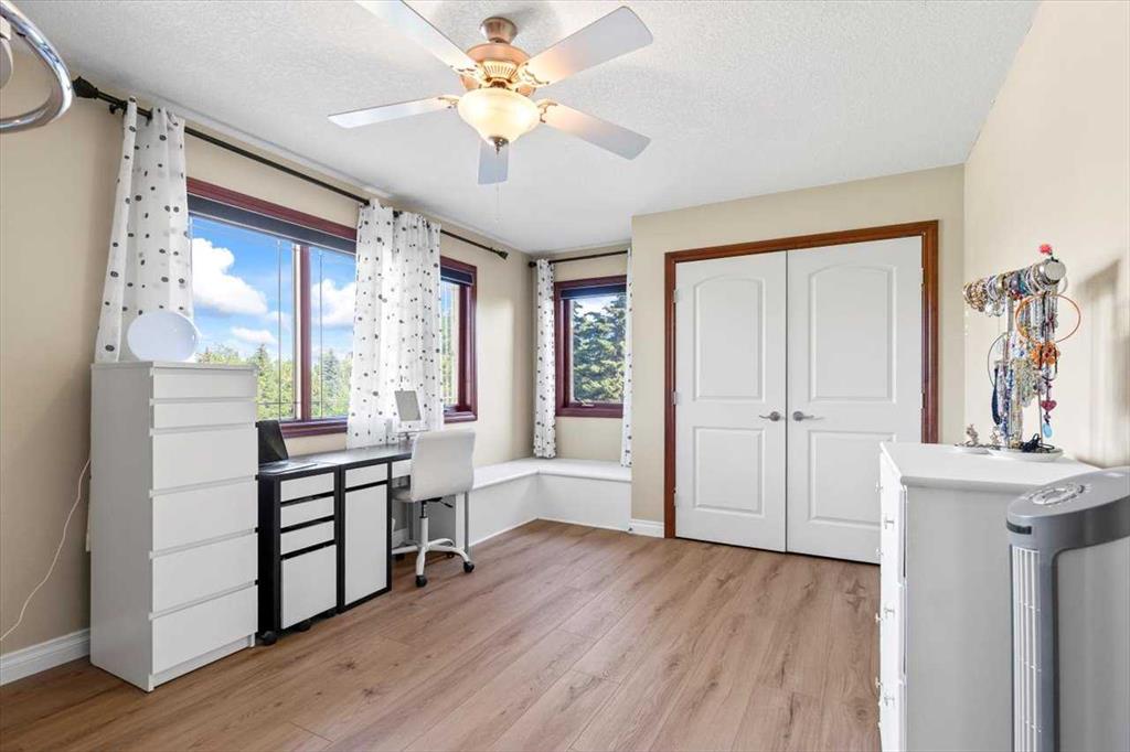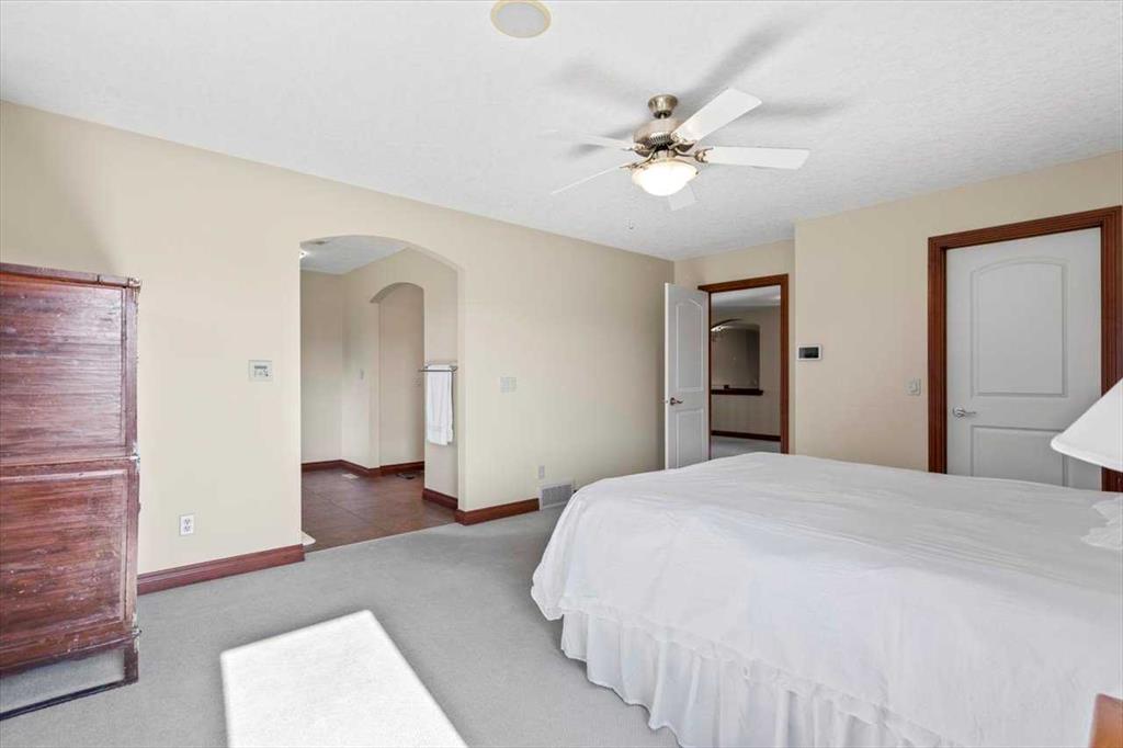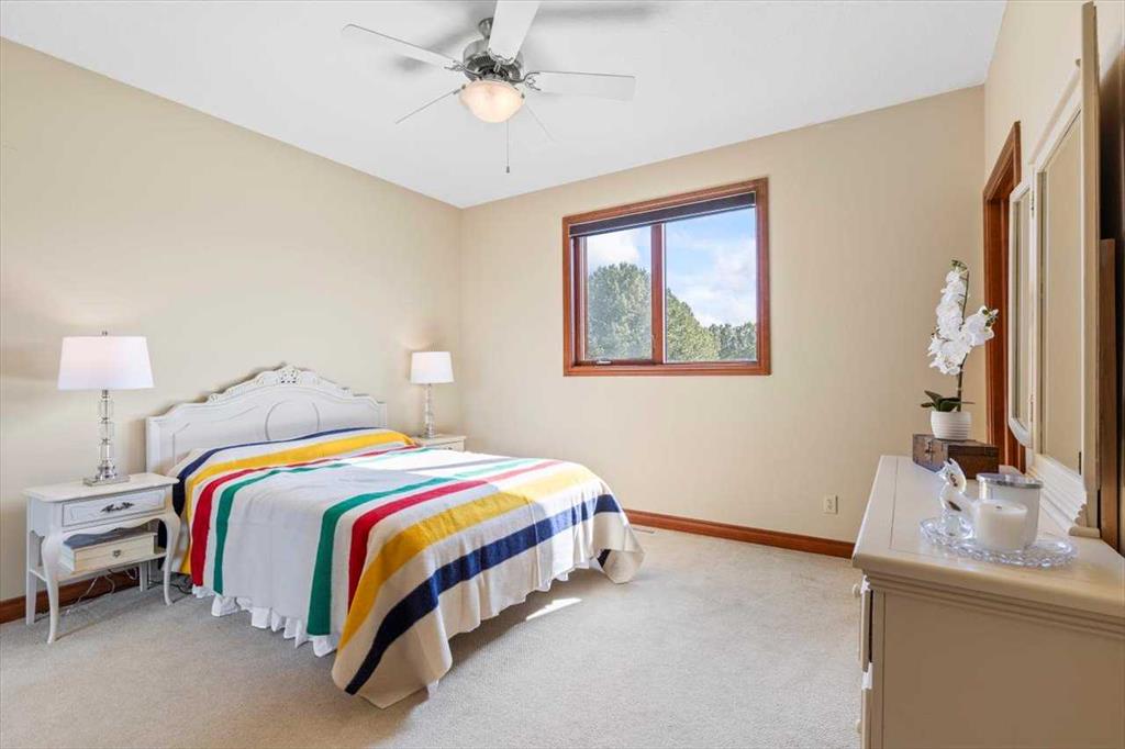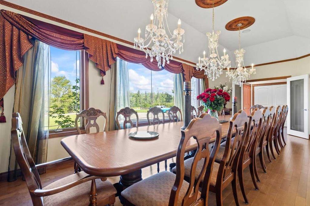 DON'T MISS THIS CUSTOM 6 BEDROOM, 5 BATHROOM ESTATE HOME SITUATED on a 1.98 ACRE LOT. This EXCEPTIONAL PROPERTY LOCATED IN SPRINGBANK offers generous separation from neighboring homes, blending country-scale space with city convenience. The home is thoughtfully appointed with premium conveniences including a water softener, two dishwashers (kitchen and bar), two refrigerators (kitchen and bar), deep freezer in the pantry, and a Weber Genesis natural gas BBQ, perfectly suited for entertaining and extended family living. At the heart of the home is a true CHEF'S KITCHEN featuring two VIKING RANGES — one dual-fuel oven and stove and one gas oven and stove plus STAINLESS STEEL APPLIANCES, an upgraded 600 CFM HOOD FAN with interlocking and make-up air, GRANITE COUNTERTOPS, an oversized island, abundant cabinetry, and a LARGE WALK-IN PANTRY with a deep freezer. The enormous FORMAL DINING ROOM offers the perfect setting for holiday gatherings and celebrations, while refined architectural details, including SWEEPING CURVED STAIRCASES add elegance to the home. The main floor is finished in hardwood and tile, GUEST BEDROOM WITH ENSUITE, and a HUGE MUDROOM with a tiled DOG WASH STATION keeps life organized and effortless. UPSTAIRS are 4 SPACIOUS BEDROOMS and convenient laundry room with sink. The PRIMARY BEDROOM features a huge walk-in closet, 5 piece ensuite and it's own PRIVATE BALCONY. Recent high-end mechanical upgrades include two Goodman GRVT 97.5% high-efficiency, two-stage variable-speed furnaces, two Legacy TJ-560 WiFi smart thermostats, and two General GF3200 flow-through humidifiers (approx. $16,000 investment), delivering superior comfort and energy efficiency. A new hot water tank adds further confidence. Step outside to a LARGE UPPER DECK and a COVERED LOWER PATIO that open to your private, park-like yard, enhancing indoor-outdoor living and entertaining throughout the seasons. The FULLY DEVELOPED WALKOUT level is an entertainer’s dream, featuring an EXPANSIVE RECREATION ROOM and a FULL BAR complete with a draft beer fridge and tap, plus a second dishwasher and refrigerator. A generous office or flex room, a SIXTH BEDROOM, and an impressive SIX PIECE BATHROOM complete this level, ensuring plenty of space for work, guests, and family. The IRRIGATED GROUNDS are designed for elevated outdoor living, featuring a TENNIS / BASKETBALL COURT, dedicated PLAYGROUND, cedar play structure with slide, swings, tower and monkey bars, trampoline, and a large storage shed—ideal for both recreation and functionality. NEARBY SCHOOL BUS STOP serving all three area schools. An EXCEPTIONAL PROPERTY offering privacy, scale, and premium upgrades rarely found together. BOOK YOUR SHOWING TODAY.