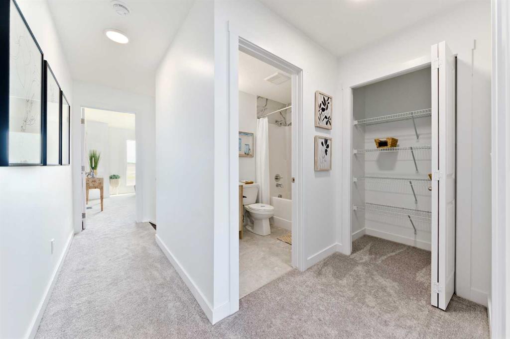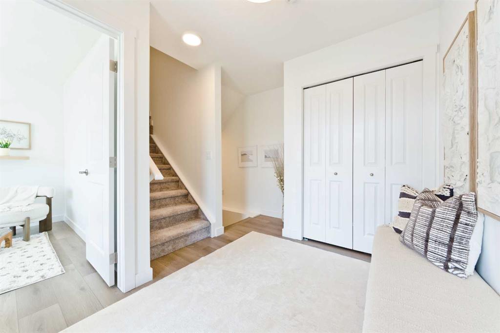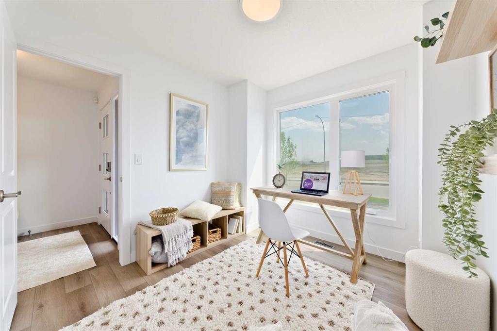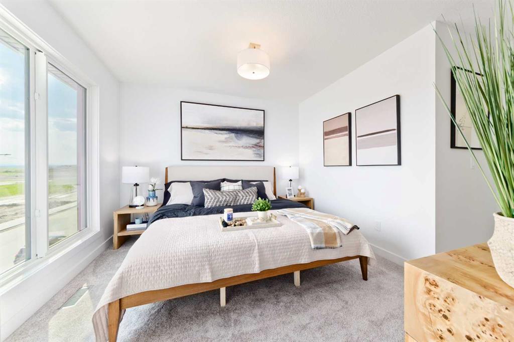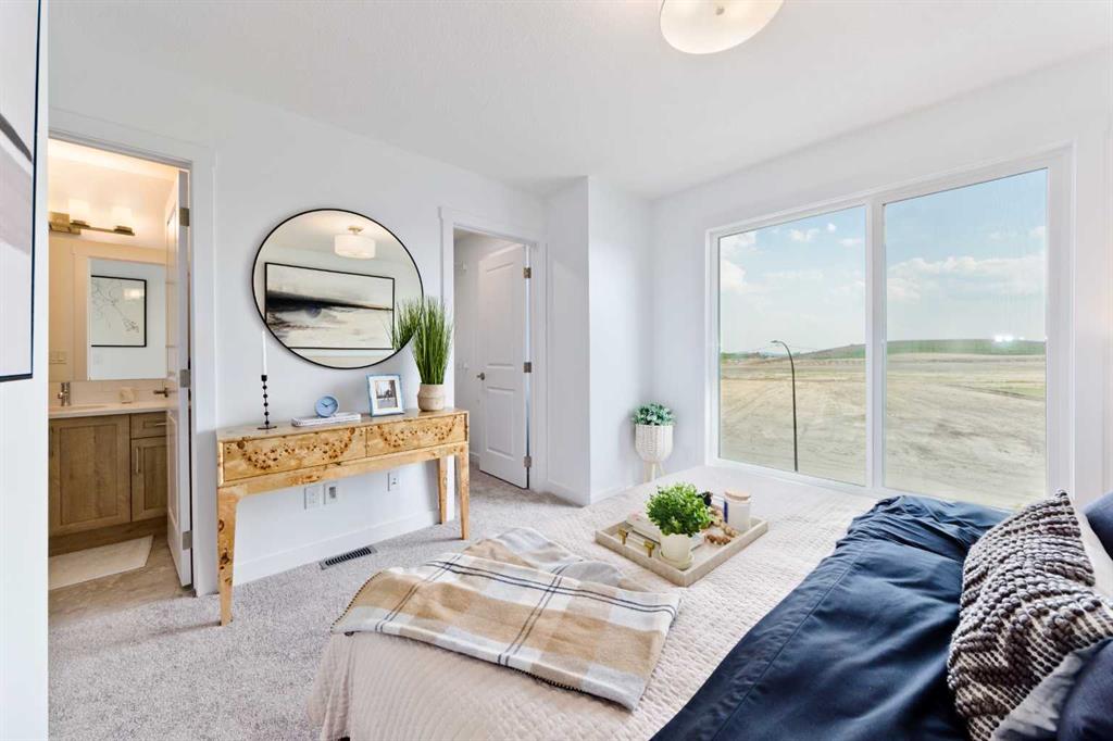 Welcome to the "Avery," a well-designed end-unit townhome offering over 1,700 sq ft of living space across three functional levels, with a bonus: an unfinished basement. With a thoughtful layout, multiple living areas, and a double attached garage, this home delivers and checks all the boxes. The main floor is bright and open, featuring a spacious living room that flows seamlessly into the dining area and kitchen. The kitchen is efficiently laid out with ample cabinetry, a pantry, a spacious island and a sleek stainless steel appliance package. Step out onto the private balcony just off the dining area, which is a perfect place for morning coffee or summer evenings. Upstairs, you'll find three bedrooms, including a generously sized primary retreat complete with a walk-in closet and private ensuite. Two additional bedrooms, a full bathroom, and convenient upper-floor laundry complete this level. The entry-level offers a versatile office or flex space, making it an ideal working-from-home space, home gym, or guest area, with access to the double-attached garage. The unfinished basement is a blank canvas, ready for your future development ideas. This home offers a smart layout, ample square footage, and the potential to add value over time, making it the perfect home for first-time home buyers, families, professionals, or investors alike. Situated in Calgary’s "new west," offering quick access to the mountains and downtown via the Stoney Trail ring road. The community includes interconnected parks, creative natural playgrounds, tree-lined boulevards, and upcoming commercial spaces featuring cafes and services. *Photos are of the show home and are representative. RMS has been applied to the construction drawings provided by the builder. Taxes to be assessed.