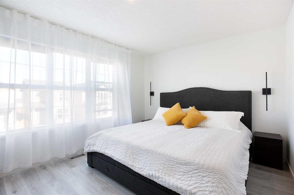 Welcome to this beautifully maintained two-storey home in Cranston, perfectly suited for families and first-time buyers. With over 1,300 square feet of bright, open-concept living space, this home features three bedrooms, two and a half bathrooms, and a spacious south-facing backyard. Inside, enjoy updated vinyl plank flooring throughout, a modern and durable choice for everyday living. Upstairs, the primary suite boasts a walk-in closet and private ensuite, complemented by two additional bedrooms, ideal for children, guests, or a home office. Cranston offers a thoughtfully designed community with walking paths, green spaces, and proximity to Fish Creek Park and the Bow River. Quick access to Deerfoot and Stoney Trail makes commuting a breeze, while nearby schools covering elementary, middle, and high school grades provide convenience for growing families. This home combines comfort, style, and functionality, a perfect place to enjoy, grow, and create lasting memories.