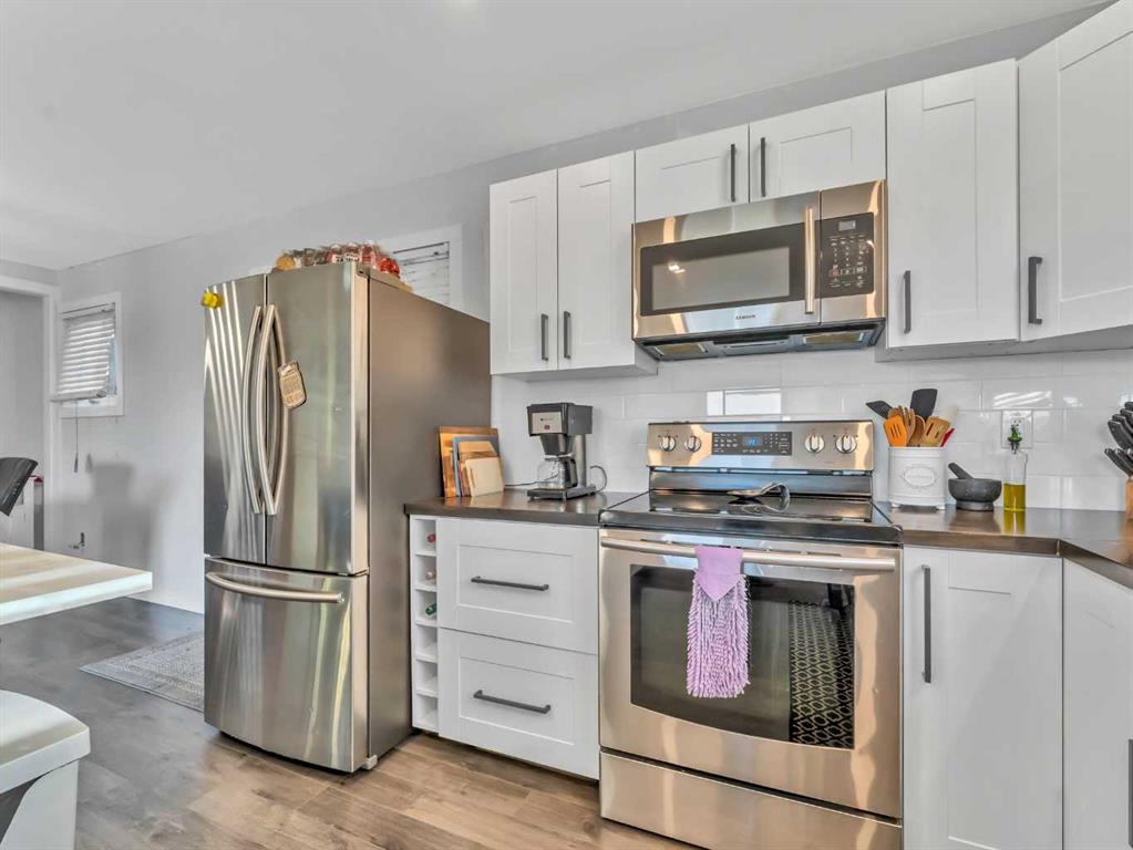 Fully updated bi-level in Ross Glen with attached 24 x 24 heated garage—perfect for first-time buyers who want a move-in ready home with room to build equity. Major updates are already done: upgraded furnace (2019), PVC plumbing, vinyl windows (almost all), refreshed bathrooms, flooring, kitchen cabinets, backsplash, countertops, and appliances. The big-ticket items are taken care of, so you can focus on cosmetic touches that fit your style. The main floor has an open-plan layout with a bright living room flowing into the white kitchen, complete with breakfast peninsula and dining area. Off the dining space, a door leads to the covered deck/sunroom, overlooking the fully fenced yard—great for pets, kids, or summer hangouts. Down the hall, you’ll find a modern 4-piece family bathroom, a secondary bedroom, and a generous primary bedroom with renovated ensuite and a huge walk-in dressing room. The lower level offers even more space to grow into: a bright family room with large windows and a clean, contemporary feel, plus a stylish bathroom, an extra-large bedroom, and an additional bedroom that works well for roommates, guests, or a home office. The oversized 24 x 24 heated garage is a standout feature, with space for two vehicles plus a workshop area, 220V plug, and its own furnace—ideal for hobbies, projects, or extra storage. Located on a corner lot in popular Ross Glen, you’re close to walking paths, playgrounds, schools, and everyday amenities. With 4 bedrooms, 2.5 baths, an open main floor, covered deck, fenced yard, and so many key updates already done, this home is a smart opportunity for young buyers to get into a great neighborhood and add value over time.