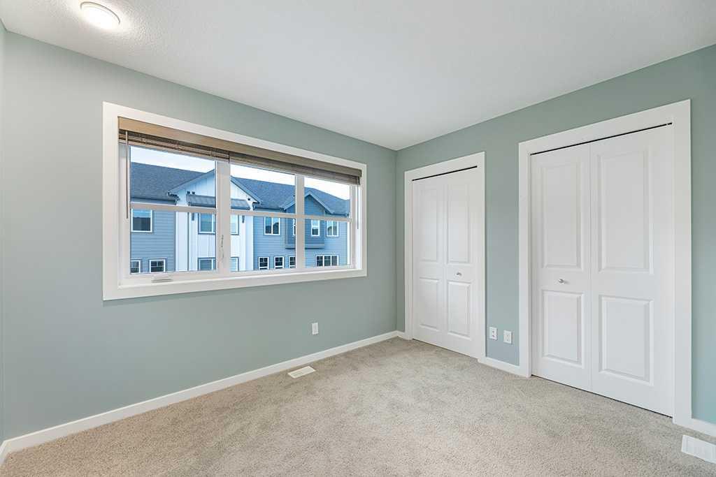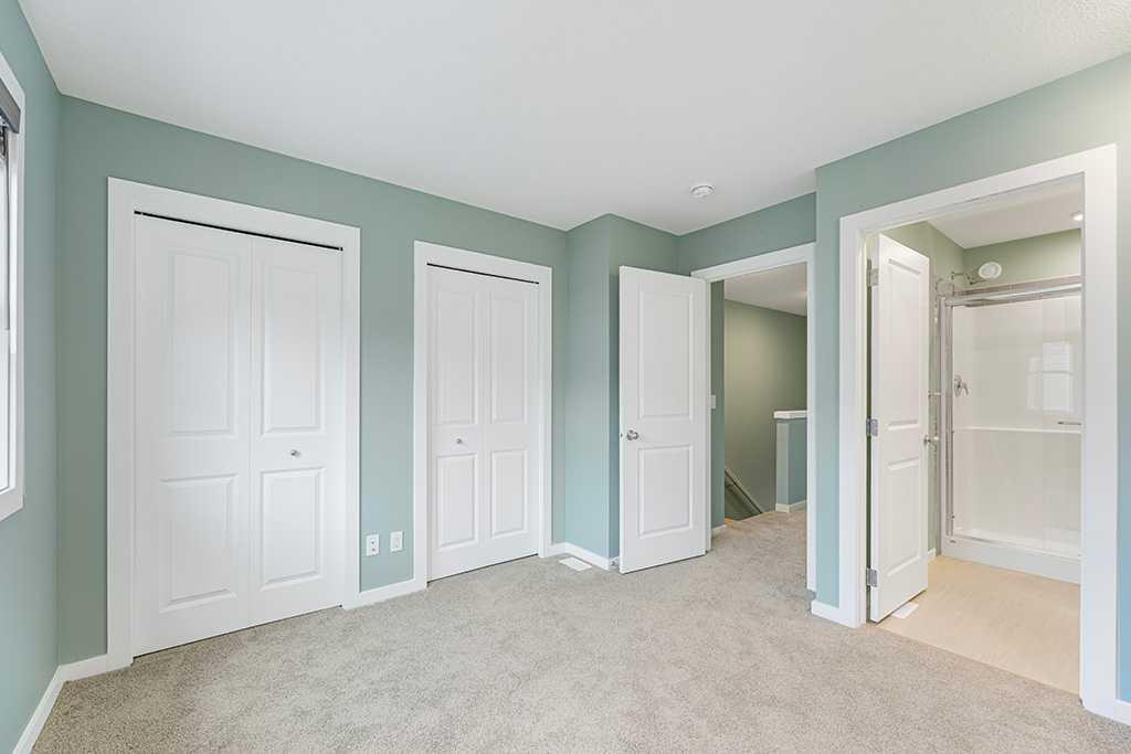 Discover this immaculately maintained, move-in ready 2-bedroom townhouse in the serene, family-friendly community of Springbank Hill. Never lived in as a home, it has been used as a stylish home office for the past 4 years and is in pristine, mint condition. The sun-drenched, south-facing front entrance opens to your exclusive-use patio overlooking a picturesque, park-like courtyard, perfect for morning coffee or leisurely afternoons. Off the main living area, the spacious north-facing balcony provides an inviting spot for relaxing or entertaining, complete with a BBQ gas line hookup. Inside, the bright and airy open-concept main floor features soaring 9-foot ceilings, beautiful wide plank flooring, a sleek modern kitchen with soft-close cabinetry, a quartz island breakfast bar, and a full stainless steel appliance package. A convenient 2-piece bathroom completes the main level. Upstairs, two generously sized bedrooms are separated for privacy, each featuring its own 3-piece ensuite bathroom with a walk-in glass shower — perfect for comfort and convenience. Laundry is ideally located on the same level. Additional highlights include a tandem double garage for 2 vehicles and low condo fees. Ideal for self-living or as a premium investment property, this exquisite townhouse is located near top-rated schools, Westside Recreation Centre, 69th Street LRT, shopping, and scenic pathways, offering a rare combination of style, comfort, and convenience in southwest Calgary.
