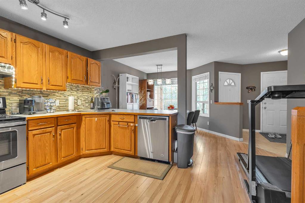 Your new home is a bright, spacious, 1577 square foot, 3 bedroom, 3 bath home located in the sought after community of Scenic Acres. Upon entering the complex you will be impressed by the appealing stucco exterior that is highlighted by brick accents and oversized windows. Once inside you will notice the family and friends size dining area that is open to the chef's delight kitchen which boasts an abundance of cabinetry and counter space, stainless steel appliances, stylish backslash, a breakfast bar and much more. The huge yet cozy living room with a corner gas fireplace allows everyone to relax, watch tv, play games..... and has easy access to the oversize deck (14 X 12) and private yard. You will discover 3 generous sized bedrooms including the primary one with a full ensuite and a walk-in closet on the upper level. On the lower level there is massive rec room that can easily be used for multi purpose areas as well as plenty of storage and an undeveloped area awaiting your vision. Your vehicle will be sure to enjoy your oversized attached garage. Over the recent years this home has seen numerous upgrades such as updated flooring throughout that includes superior grade laminate, plush carpeting and travertine tile in front foyer and all the bathrooms, reglazed bath tubs, newer hot water tank and more. This well located home is close to schools, shopping, transit, parks, ice arenas, all other amenities, easy access to major thoroughfares and in a quaint complex with low condo fees, loads of visitor's parking and a playground.