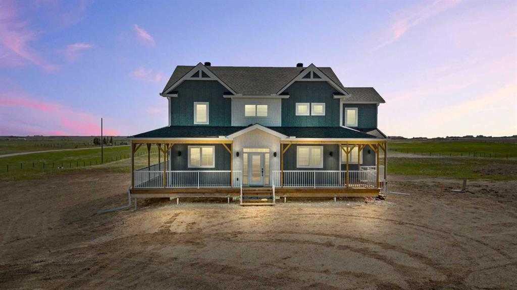 This stunning home is situated on a 10 acre parcel and is conveniently located just 8 minutes from the Town of Strathmore. Easy access to all major amenities including schools, hospitals/ clinics, shops, grocery stores, entertainment & golf courses! The perfect retreat for that equestrian or hobby farmer! With ample space for additional barns, corrals, coups or maybe hobby shop to store all your toys. This turn key property has endless potential! As you approach the house you are welcomed by a large 3/4 wrap around porch & beautiful hardy board siding. Through the front door you are welcomed by a large double closest, a walkthrough mudroom featuring laundry & side entrance + tons of storage. Down the hall or through the mudroom you will find the Absolutely stunning custom kitchen - including beautiful wooden cabinetry (with organizers & lemans), a MASSIVE oversized quartz island, gas range/cooktop, oversized basin sink, pearl plumbing fixtures, floating shelfs, custom under cabinet & toe kick LED lighting (linked to nights lights that lead to the upstairs bedrooms). The main level also features a generous sized living room with gas fireplace, a large dining room & office space, as well as a 2 piece bathroom. Upstairs you will find 4 generous sized guest bedrooms, a massive 6 piece guest bathroom (featuring 2 separate toilets!). A large primary bedroom completes the second floor, and includes a walk-in closet, 5 piece ensuite bathroom & absolutely STUNNING VIEWS! - This home has so many upgrades! custom HIGH-END LED pot lights throughout, rough in for hot water circulation pump, vaccuflo, motion closet lighting, beautiful window coverings and so much more! With 2800 sqft of developed living space, this home is completely turn key! + the basement features 1400 sqft of un-developed POTENTIAL!