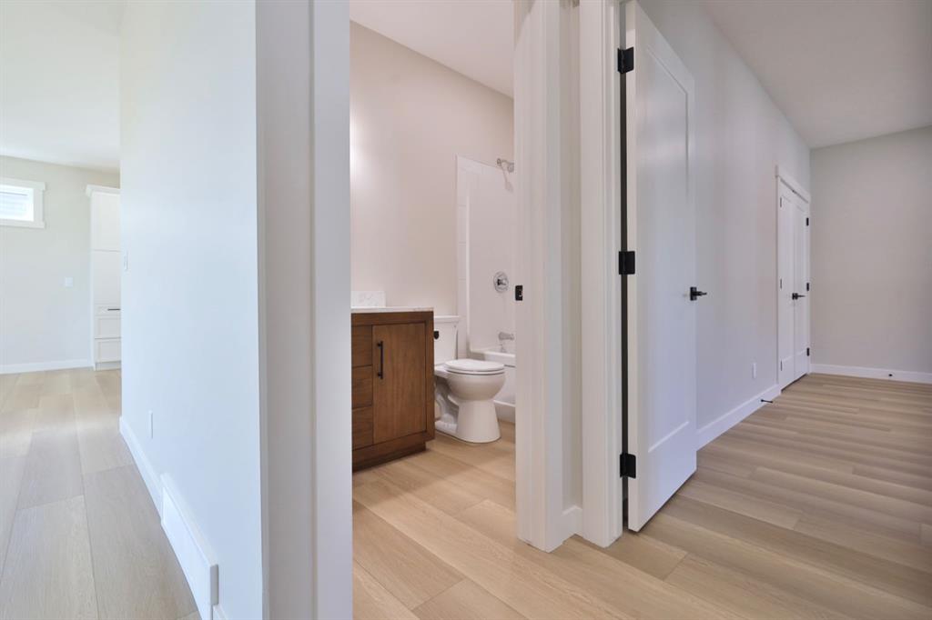 The latest 2025 Katerra Contracting Show Home is complete and avail for immediate possession! Meticulously crafted with zero step entry from the garage right into the house. This innovative 4-bedroom, 3-bathroom 1,562 sq. ft plan was designed for this specific lot-the largest lot available in all of Valleyview. Upon entry, you'll immediately notice every detail has been carefully selected to enhance both functionality and luxury. From the spacious front foyer with soaring ceilings to the seamless flow of the open-concept living and dining area. Natural light pours in from every direction, creating a bright, welcoming atmosphere throughout. The chef-inspired kitchen is the heart of this home, featuring a massive island, quartz countertops, and a built-in coffee bar that elevates the space to a new level of sophistication. With ample storage, a solar tube for extra natural light, and a layout designed for easy entertaining, this kitchen is as beautiful as it is practical. Adjacent to the kitchen, the large mudroom offers convenience and organization, featuring a designated space for coats, bags, and shoes, along with a laundry area complete with counter space for folding, storage, and hanging garments. The attached heated triple-car garage is finished to perfection, including floor drains, water, LED lighting, and an oversized 18x8 overhead door, making it a functional and stylish extension of your home. The covered deck is ideally located off the kitchen, a convenient space for the family BBQ's, or sipping coffee while watching the kids play. The main floor features a luxurious primary bedroom with a spa-inspired ensuite, complete with a walk-in tiled shower, double sinks, and quartz countertops. A well-appointed main bathroom and an additional bedroom complete the main level, offering ample space and comfort. The basement is a fully finished living space with two additional bedrooms, a 3-piece bathroom, and a large recreation room. The large, strategically placed windows create a bright and airy feel, making the basement feel like an integral part of the home. Features like hydronic heat give you comfort year round. Located just steps away & a view of Valleyview Pond, this home offers easy access to year-round outdoor activities, including skating, walking trails, and miles of scenic paths that meander throughout the city. This exceptional property not only provides a sophisticated living space but a lifestyle of convenience and luxury. See firsthand why Katerra’s motto of “better built homes” stands true, this is more than just a home; it’s a statement.
