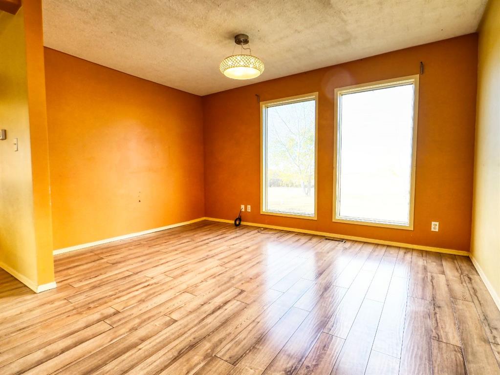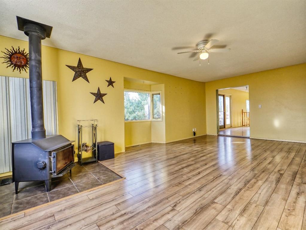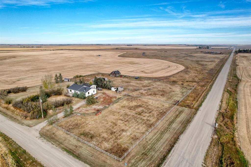 Looking for an affordable acreage with paved access? Check this one out! Upstairs, you’ll find two bedrooms, a four-piece bathroom, a large kitchen and dining area, and a spacious living room featuring a cozy wood stove. With only a 45-minute drive to Calgary, you’ll enjoy the best of both worlds — peaceful country living with an easy commute. The village of Beiseker, offering amenities, is less than 10 minutes away. The partially finished basement is ready for your finishing touches. Additional features include a high-efficiency furnace and County (Municipal) water — no well to maintain! Another bonus: underground power lines. The wood stove in the living room includes a fan system designed to distribute heat throughout the main floor. The basement also has a three-piece bathroom. Outside, you’ll find a large south-facing deck, a double detached garage, an animal shelter in the pasture, and a stock water tank with underground water lines. Directions: From Beiseker, go 4 miles east on Highway 9, then 4 miles north on Bircham Road. From the north, take Secondary 575 east of Acme for 4 miles, then 4 miles south.