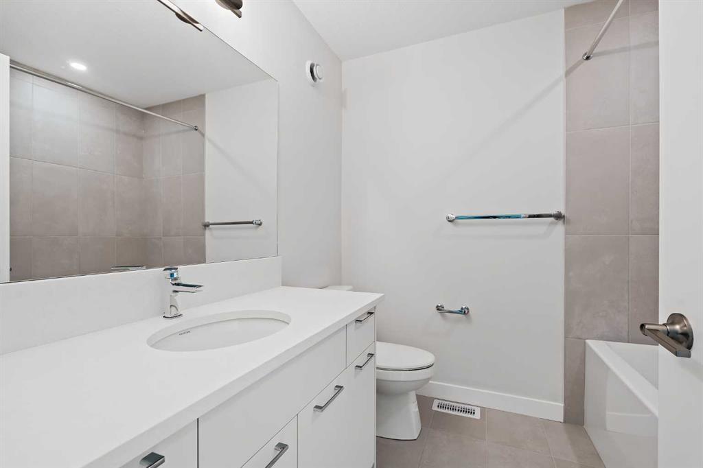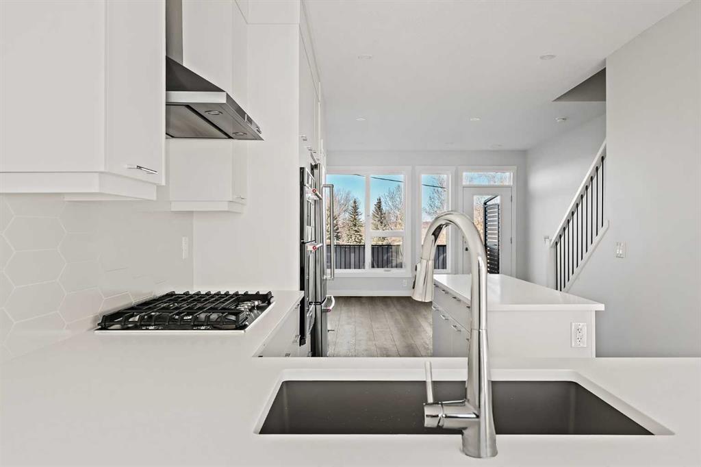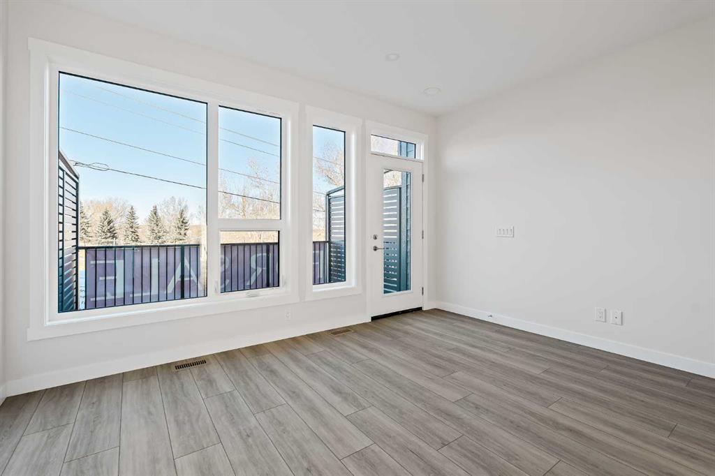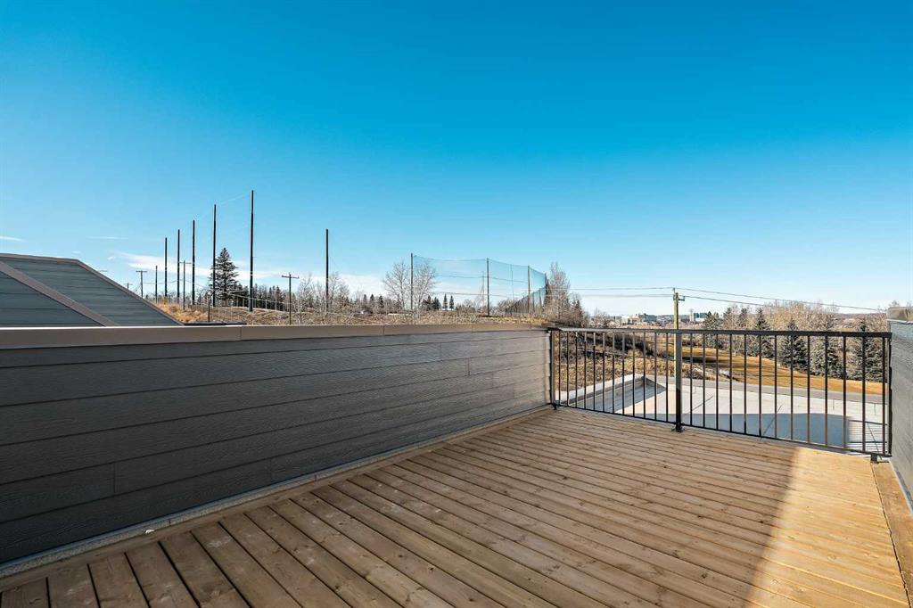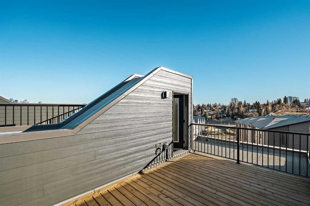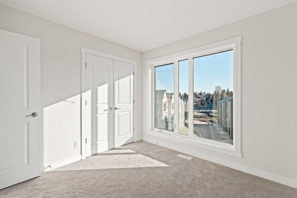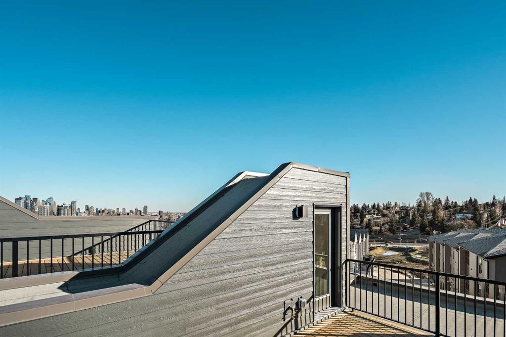 **Open House this Sunday, February 15th from 1:00-3:00 PM** Welcome to The Alameda by Brookfield Residential - where modern design meets urban convenience, just minutes from downtown Calgary with stunning views! This beautiful 2-bedroom, 2.5-bathroom townhome offers over 1,500 sq. ft. of thoughtfully designed living space, complete with a single attached garage and a spacious main-level flex room - perfect for a home office, gym, or creative studio + 3 outdoor living spaces including a rooftop patio! The lower level features an expansive flex room spanning ~14'x14' with soaring 10' ceilings and a wall of windows overlooking your private patio and the front street. Experience open-concept living on the main level highlighted by 9’ ceilings throughout with oversized triple-pane windows at either end providing endless natural light all year long. The kitchen is a chef’s dream, featuring KitchenAid gourmet appliances, including a gas cooktop, wall oven/microwave, and a chimney hood fan, all complemented by elegant finishes and generous counter space and a pantry. The timeless white kitchen is central to the main level, opening to both the dining area and great room, creating the ideal space for entertaining. The great room has direct access to the main level balcony that spans 15' x 9'8" and includes a BBQ gas line for everyday convenience. The upper level features a large primary suite complete with walk-in closet and a private 4pc ensuite with dual sinks and a tiled walk-in shower. A large second bedroom, full bathroom and laundry complete the upper level. The top level of the home is where you'll spend your summers - soaking up the sun on your private ~200 ft2 rooftop patio with views overlooking the Shaganappi golf course and stunning views to the south and downtown Calgary! Complete with 2 living areas, 2 bedrooms, 2.5 bathrooms and 3 outdoor living spaces + a private attached garage, this home is perfect for professionals or down-sizers that appreciate convenience. Located away from Bow Trail, this premium location offers a quiet space for daily living with convenient access to the CTrain and downtown Calgary just minutes away. Additional features include convenient street parking in front, and full builder warranty + Alberta New Home Warranty - allowing you to purchase with peace of mind. This maintenance-free home is fully move-in ready with free legal fees for the purchaser in desirable Crown Park!