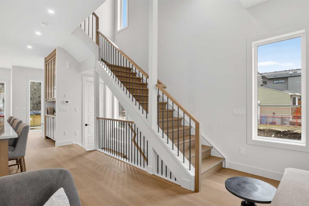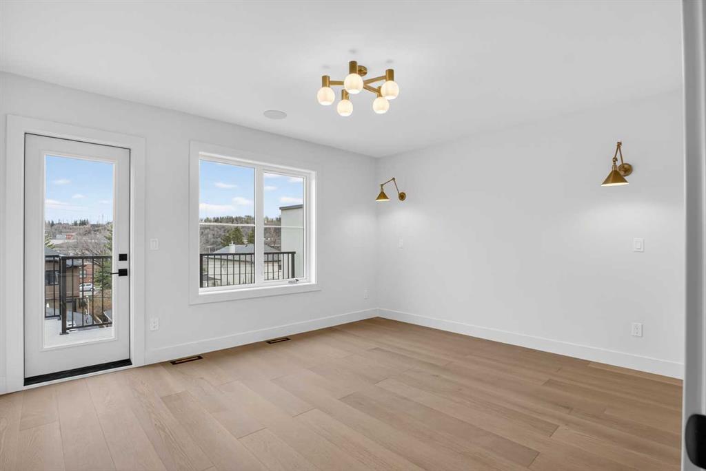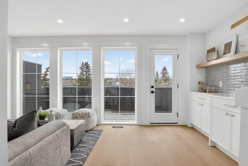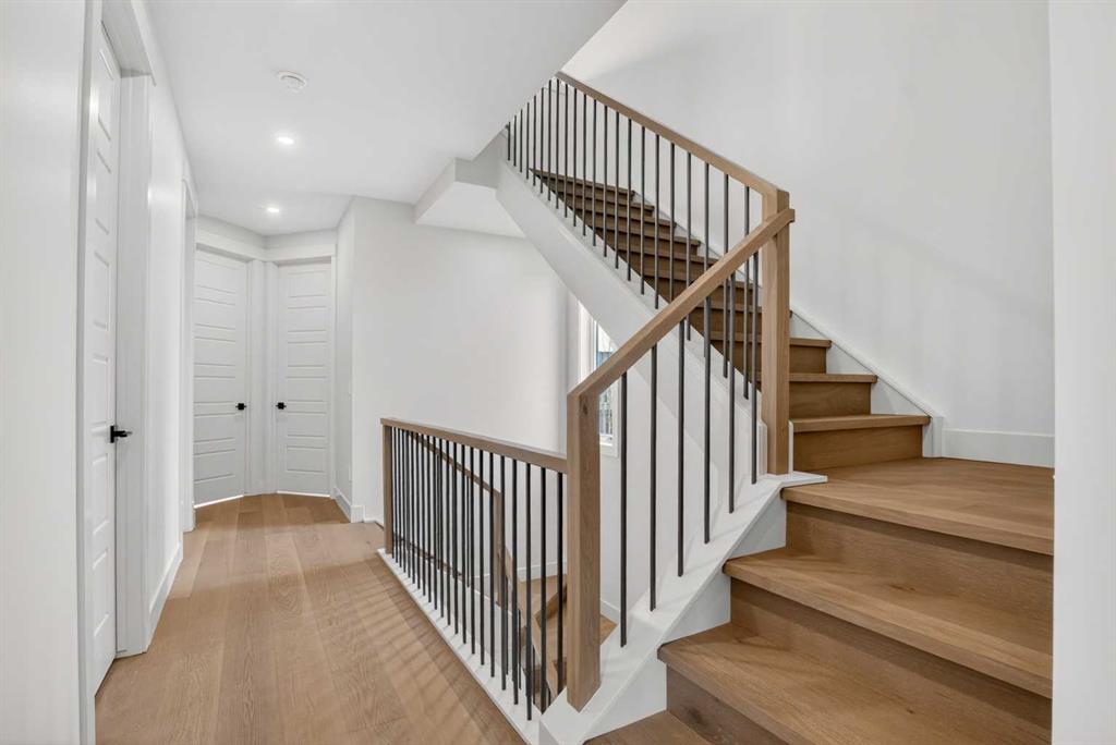 ***OPEN HOUSE SATURDAY APRIL 25th 12:30-3:30pm*** Modern design meets elevated everyday living in this brand new 3-storey infill set within a QUIET CUL-DE-SAC in West Hillhurst. Thoughtfully crafted, this semi-detached home brings together refined finishes, functional layout and a SOUTH BACKYARD that enhances natural light throughout the day. Hardwood flooring carries across the main level, establishing a warm and cohesive foundation for daily life and entertaining. Gather in the spacious dining area where clean sightlines connect seamlessly to a chef-inspired kitchen complete with FULL HEIGHT CABINETS, a LARGE ISLAND, WALL PANTRY and a well-appointed APPLIANCE PACKAGE that supports both routine meals and larger gatherings. Conversations flow naturally into the living area where a CENTER GAS FIREPLACE framed by BUILT-IN SHELVING AND CABINETRY creates a comfortable focal point, while a PATIO SLIDER extends the living space outdoors. Organization becomes effortless with an ENCLOSED MUDROOM offering ample storage, complemented by a TUCKED AWAY POWDER ROOM that maintains privacy for guests. Upstairs, thoughtful design continues with 2 well-proportioned bedrooms and a 4PC MAIN BATH, while a dedicated LAUNDRY ROOM WITH SINK AND CABINETRY adds everyday convenience. A SECOND PRIMARY BEDROOM on this level introduces flexibility for multi-generational living or guests, complete with WALL PANELLING, a LARGE WALK-IN CLOSET and a 5PC ENSUITE featuring DUAL VANITIES and ELECTRIC HEAT for added comfort. Retreat to the top floor where the MAIN PRIMARY SUITE spans an entire level, offering a private escape enhanced by a SITTING AREA WITH BALCONY, a DRY BAR and access to a SECOND BALCONY. Relaxation is elevated in the luxurious 5PC ENSUITE with a FREE STANDING TUB, STAND UP SHOWER and DUAL VANITY, while a LARGE WALK-IN CLOSET ensures everything remains organized. Downstairs, a fully finished basement expands the living space with a LARGE REC ROOM, WET BAR and generous storage, alongside a 5TH BEDROOM and 4PC BATH that easily accommodates guests or extended family. Outdoor living is simplified with a FULLY FENCED SOUTH BACKYARD and GROUND LEVEL PATIO designed for both quiet evenings and summer gatherings. Added value comes through ROUGH-INS FOR AC, HYDRONIC IN-FLOOR HEAT AND STEAM SHOWER, along with CEILING SPEAKERS and a DUAL ZONE FURNACE that enhances comfort across all levels. Parking is completed by a DOUBLE DETACHED GARAGE, while the location places pathways, parks, schools and inner-city amenities within easy reach, connecting lifestyle and convenience in one of Calgary’s most desirable communities.