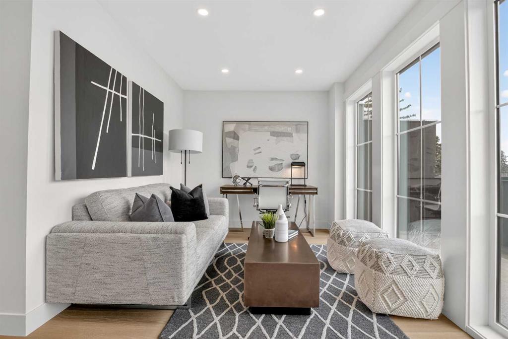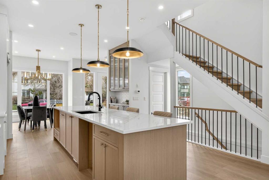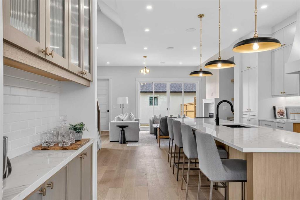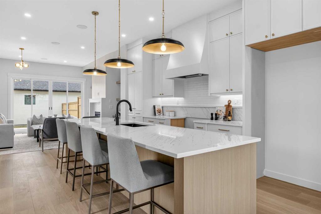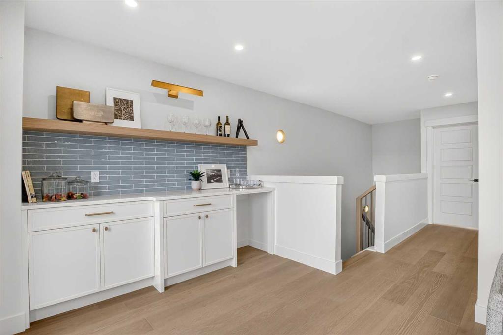 ***OPEN HOUSE SATURDAY APRIL 25th 12:30-3:30pm*** Modern design meets elevated everyday living in this brand new 3-storey infill set within a QUIET CUL-DE-SAC in West Hillhurst. Thoughtfully crafted, this semi-detached home brings together refined finishes, functional layout and a SOUTH BACKYARD that enhances natural light throughout the day. Hardwood flooring carries across the main level, establishing a warm and cohesive foundation for daily life and entertaining. Gather in the spacious dining area where clean sightlines connect seamlessly to a chef-inspired kitchen complete with FULL HEIGHT CABINETS, a LARGE ISLAND, WALL PANTRY and a well-appointed APPLIANCE PACKAGE that supports both routine meals and larger gatherings. Conversations flow naturally into the living area where a CENTER GAS FIREPLACE framed by BUILT-IN SHELVING AND CABINETRY creates a comfortable focal point, while a PATIO SLIDER extends the living space outdoors. Organization becomes effortless with an ENCLOSED MUDROOM offering ample storage, complemented by a TUCKED AWAY POWDER ROOM that maintains privacy for guests. Upstairs, thoughtful design continues with 2 well-proportioned bedrooms and a 4PC MAIN BATH, while a dedicated LAUNDRY ROOM WITH SINK AND CABINETRY adds everyday convenience. A SECOND PRIMARY BEDROOM on this level introduces flexibility for multi-generational living or guests, complete with WALL PANELLING, a LARGE WALK-IN CLOSET and a 5PC ENSUITE featuring DUAL VANITIES and ELECTRIC HEAT for added comfort. Retreat to the top floor where the MAIN PRIMARY SUITE spans an entire level, offering a private escape enhanced by a SITTING AREA WITH BALCONY, a DRY BAR and access to a SECOND BALCONY. Relaxation is elevated in the luxurious 5PC ENSUITE with a FREE STANDING TUB, STAND UP SHOWER and DUAL VANITY, while a LARGE WALK-IN CLOSET ensures everything remains organized. Downstairs, a fully finished basement expands the living space with a LARGE REC ROOM, WET BAR and generous storage, alongside a 5TH BEDROOM and 4PC BATH that easily accommodates guests or extended family. Outdoor living is simplified with a FULLY FENCED SOUTH BACKYARD and GROUND LEVEL PATIO designed for both quiet evenings and summer gatherings. Added value comes through ROUGH-INS FOR AC, HYDRONIC IN-FLOOR HEAT AND STEAM SHOWER, along with CEILING SPEAKERS and a DUAL ZONE FURNACE that enhances comfort across all levels. Parking is completed by a DOUBLE DETACHED GARAGE, while the location places pathways, parks, schools and inner-city amenities within easy reach, connecting lifestyle and convenience in one of Calgary’s most desirable communities.