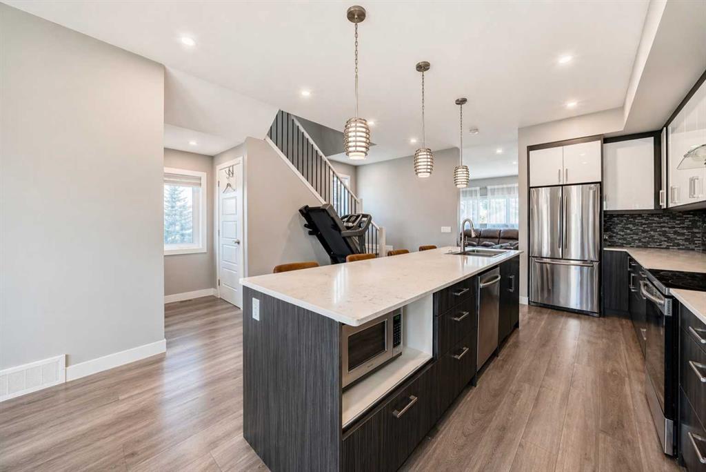 Welcome to this well-maintained & versatile 3+1 bdrm with an additional office/den home, ideally located on a quiet, tree-lined street with quick access to downtown (appx 6 min drive) or a short walk to the C-Train. Offering 3F/1H bathrooms & over 2450 Sq Ft of developed living space, very well suited for families, professionals, or investors. The main level features bright, functional living space with large windows that bring in plenty of natural light. Kitchen stands out with upgraded 2 tone cabinets, stylish backsplash, quartz countertops & large island that provides both workspace & a natural gathering point. A dedicated office/den offers views of downtown & Rocky Mountains the ideal setting for working from home. Upstairs, the primary suite offers a spacious retreat, spa-like 5 piece ensuite & large walk-in closet. Top-floor laundry adds convenience, along with 2 additional good-size bedrooms & full bathroom. The fully developed walkout basement features large windows & its own private entrance (previously generated strong income through Airbnb). This flexible space works well as a mortgage helper, short-terms rental, or additional living space for extended family or teens. Enjoy a sunny, south-facing, fully fenced backyard with a great size deck directly off the kitchen...perfect for relaxing or entertaining. Double garage with lane access comfortably accommodates a full-size truck & SUV. Easy access to Deerfoot Tr, Memorial Dr & Barlow Tr. Close to schools, shopping & major attractions including Calgary Zoo, Stampede Grounds & the future Calgary Arena District. Originally owner occupied & now has been leased to the same tenants for the past three years by a professional management company, reflecting consistent care & maintenance. Currently leased until June 30, 2026 for $3350./ month, with great tenants willing to stay.