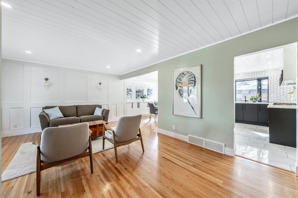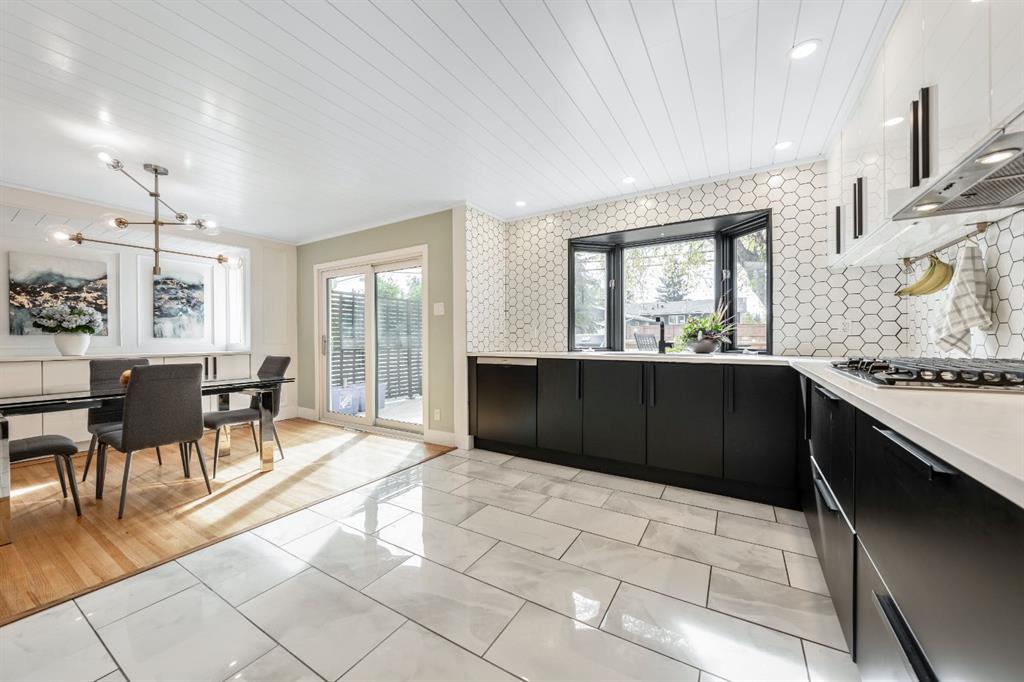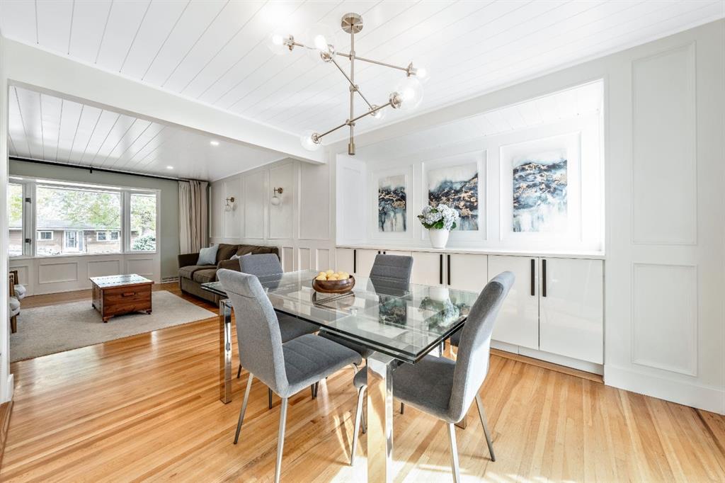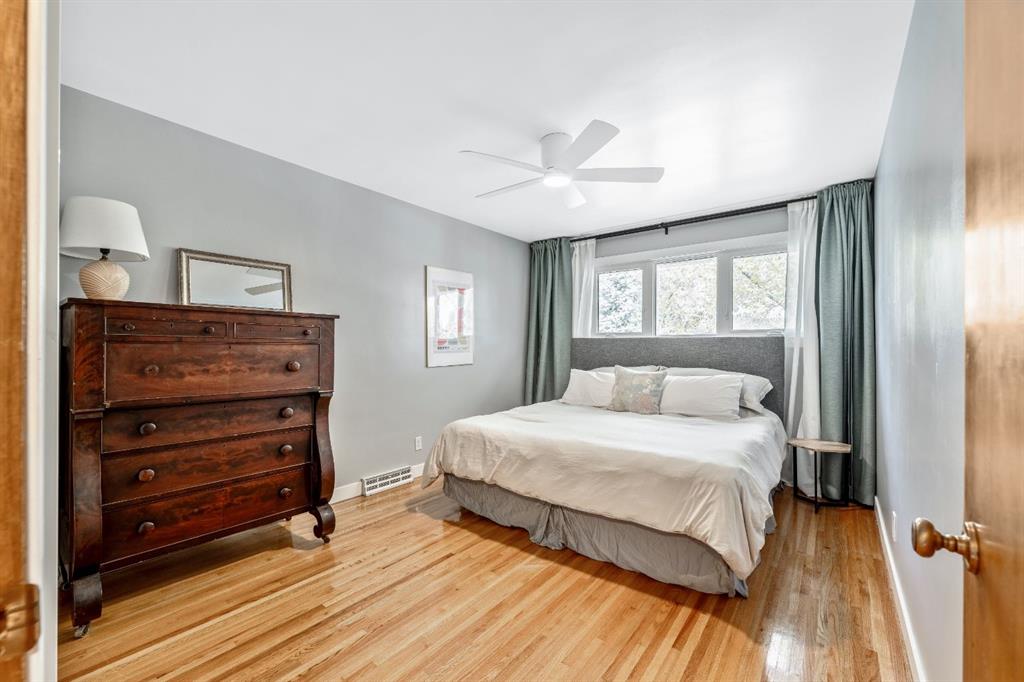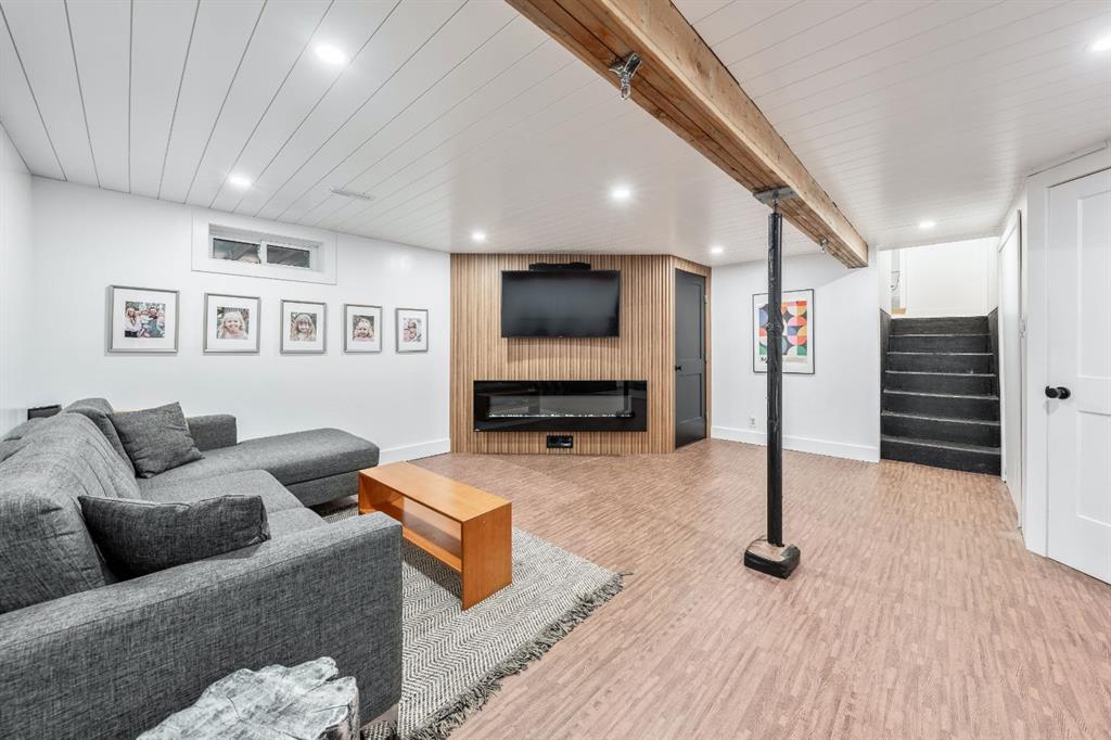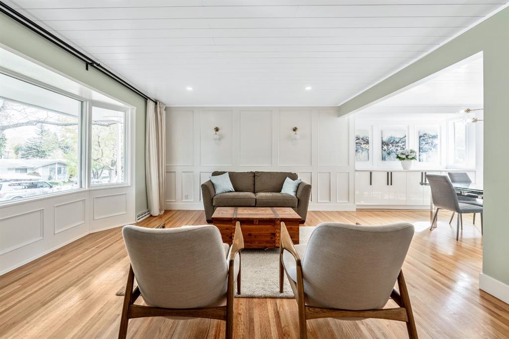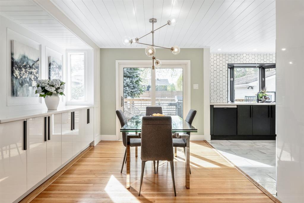 Charleswood Charmer with Updates! | Nestled on a peaceful, tree-lined street right in the heart of Charleswood, this beautifully updated four-level split is the perfect mix of charming character, modern convenience, and a welcoming, family-friendly community. With over 1,950 square feet of thoughtfully developed space, this home has been lovingly upgraded over the years to be both warm and stylish, and mechanically efficient. Step inside and you'll be greeted by gorgeous hardwood floors, rustic shiplap ceilings and wood panelled walls, and a bright, open-plan living space that feels inviting and effortlessly livable. The sleek designer kitchen is a dream for busy family life, with two-tone modern cabinetry, quartz countertops, stainless steel appliances, and plenty of counter space. The adjacent dining and living areas are both spacious and flexible, filled with natural light that creates a cheerful and homey vibe. Upstairs, you’ll find three comfortable bedrooms and a beautifully updated family bathroom. The lower level has a versatile fourth bedroom (or home office) along with an updated three-piece bathroom and fabulous dual purpose laundry-mudroom that keeps everything organized and the mess at bay. Check out the cozy family room in the lower level, with a stylish electric fireplace complimented by a wooden slat wall, and additional flexible space that’s perfect as a play space or exercise area. Out back, the south facing backyard feels like your own private oasis—complete with mature, fruit-bearing trees, lush landscaping, and enough space for outdoor fun and entertaining. The home also features a heated double detached garage in addition to the single attached garage, giving you plenty of parking and storage options. Located in one of Calgary’s most desirable NW neighbourhoods, you’re just minutes from the University, K-9 schools, parks, pathways, and all the amenities you could need. Don’t miss your chance to own this beautifully updated charmer in ever-popular Charleswood!