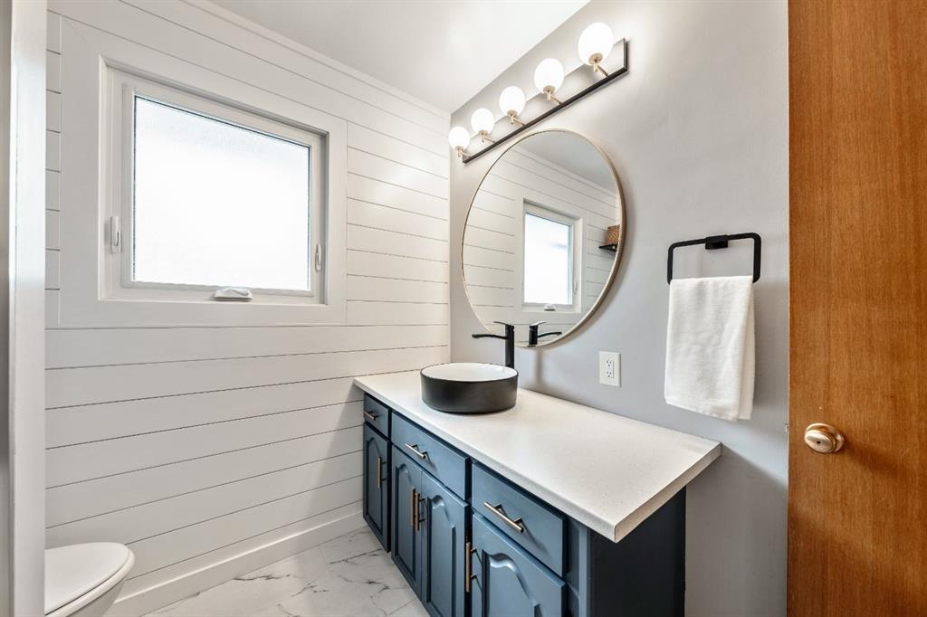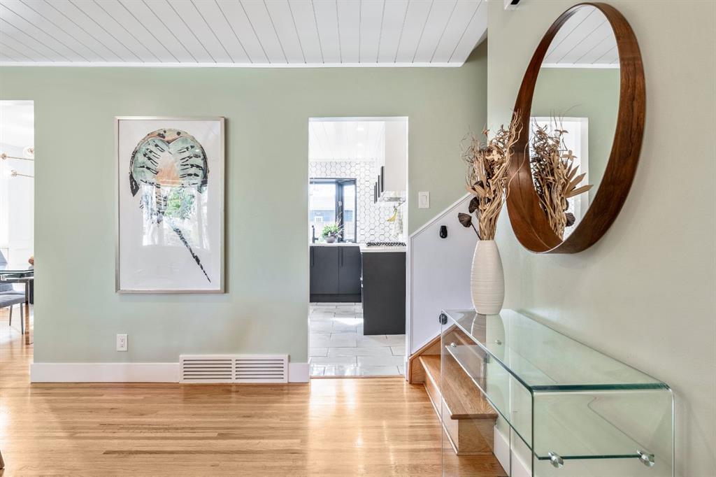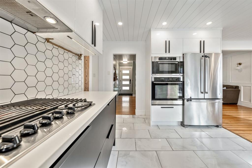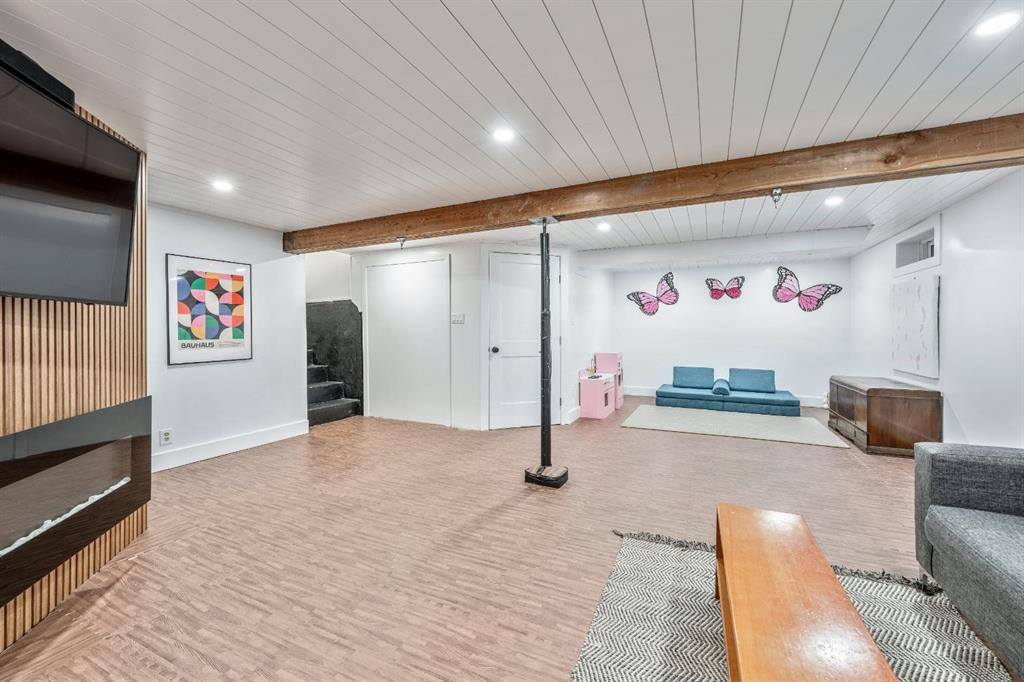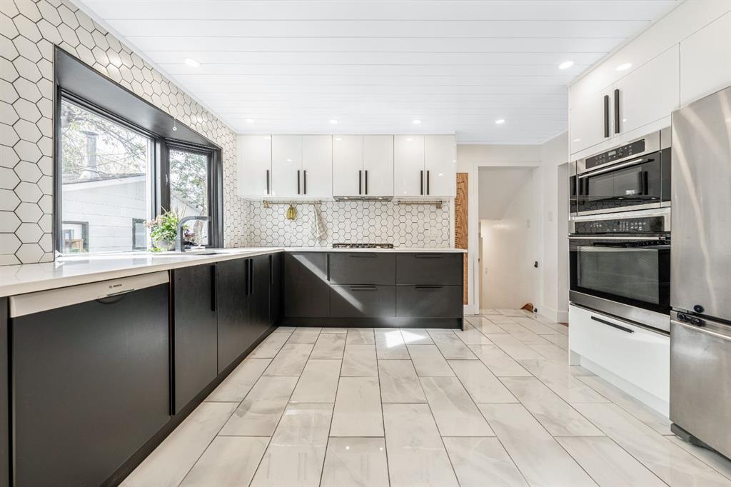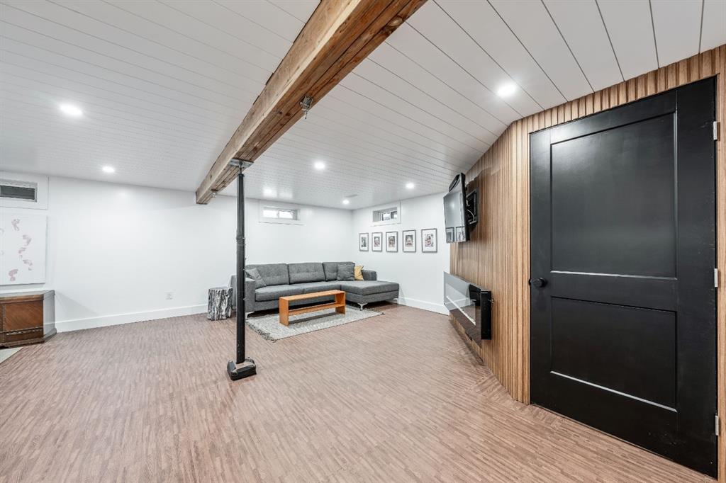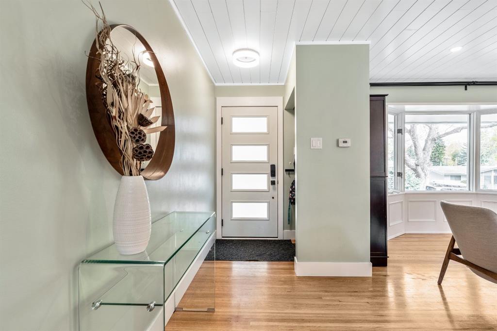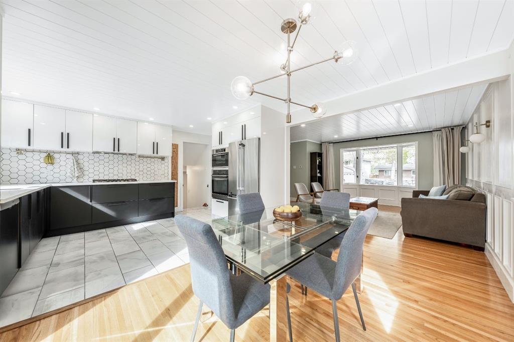 Charleswood Charmer with Updates! | Nestled on a peaceful, tree-lined street right in the heart of Charleswood, this beautifully updated four-level split is the perfect mix of charming character, modern convenience, and a welcoming, family-friendly community. With over 1,950 square feet of thoughtfully developed space, this home has been lovingly upgraded over the years to be both warm and stylish, and mechanically efficient. Step inside and you'll be greeted by gorgeous hardwood floors, rustic shiplap ceilings and wood panelled walls, and a bright, open-plan living space that feels inviting and effortlessly livable. The sleek designer kitchen is a dream for busy family life, with two-tone modern cabinetry, quartz countertops, stainless steel appliances, and plenty of counter space. The adjacent dining and living areas are both spacious and flexible, filled with natural light that creates a cheerful and homey vibe. Upstairs, you’ll find three comfortable bedrooms and a beautifully updated family bathroom. The lower level has a versatile fourth bedroom (or home office) along with an updated three-piece bathroom and fabulous dual purpose laundry-mudroom that keeps everything organized and the mess at bay. Check out the cozy family room in the lower level, with a stylish electric fireplace complimented by a wooden slat wall, and additional flexible space that’s perfect as a play space or exercise area. Out back, the south facing backyard feels like your own private oasis—complete with mature, fruit-bearing trees, lush landscaping, and enough space for outdoor fun and entertaining. The home also features a heated double detached garage in addition to the single attached garage, giving you plenty of parking and storage options. Located in one of Calgary’s most desirable NW neighbourhoods, you’re just minutes from the University, K-9 schools, parks, pathways, and all the amenities you could need. Don’t miss your chance to own this beautifully updated charmer in ever-popular Charleswood!