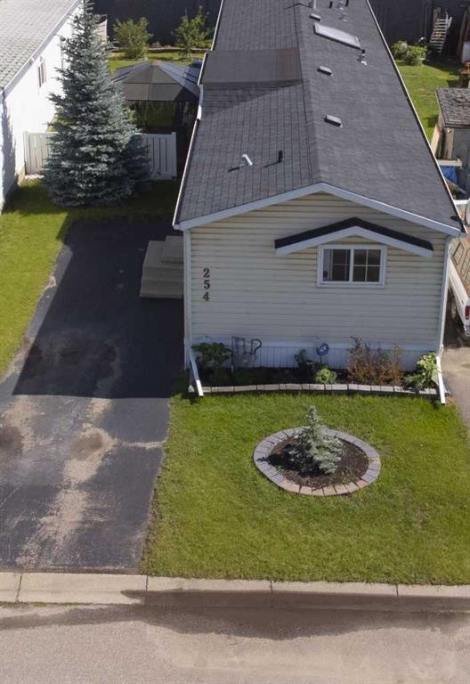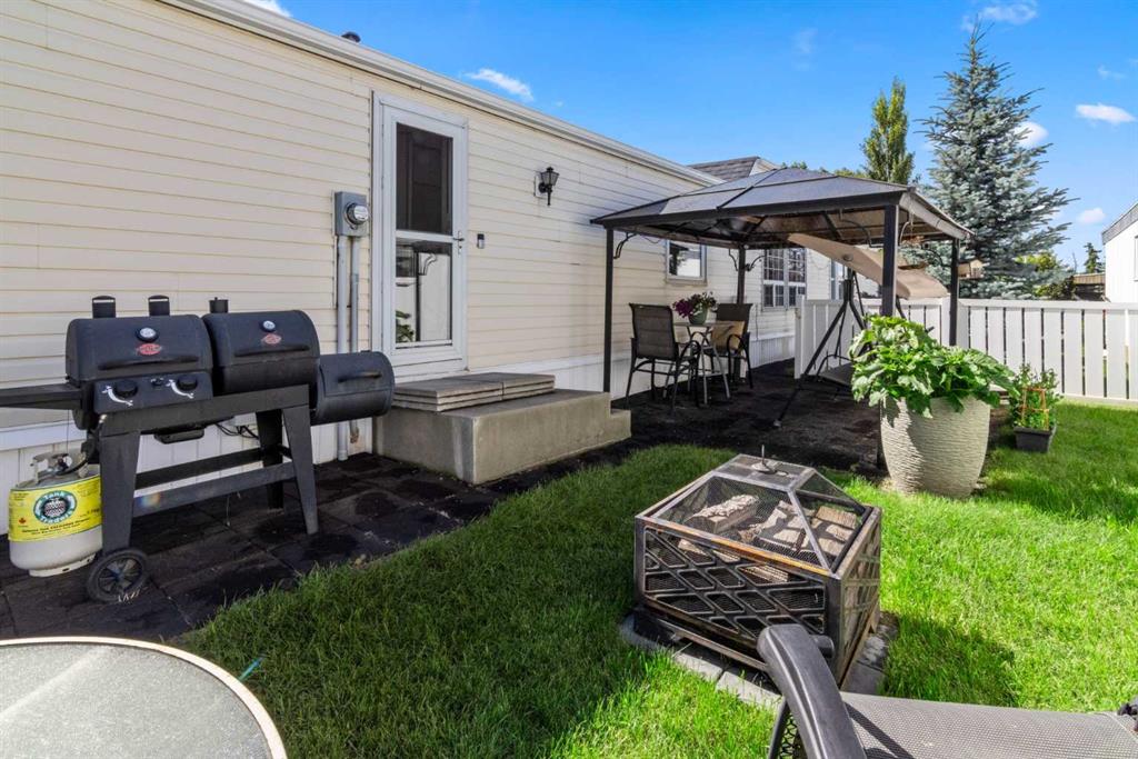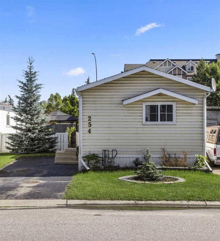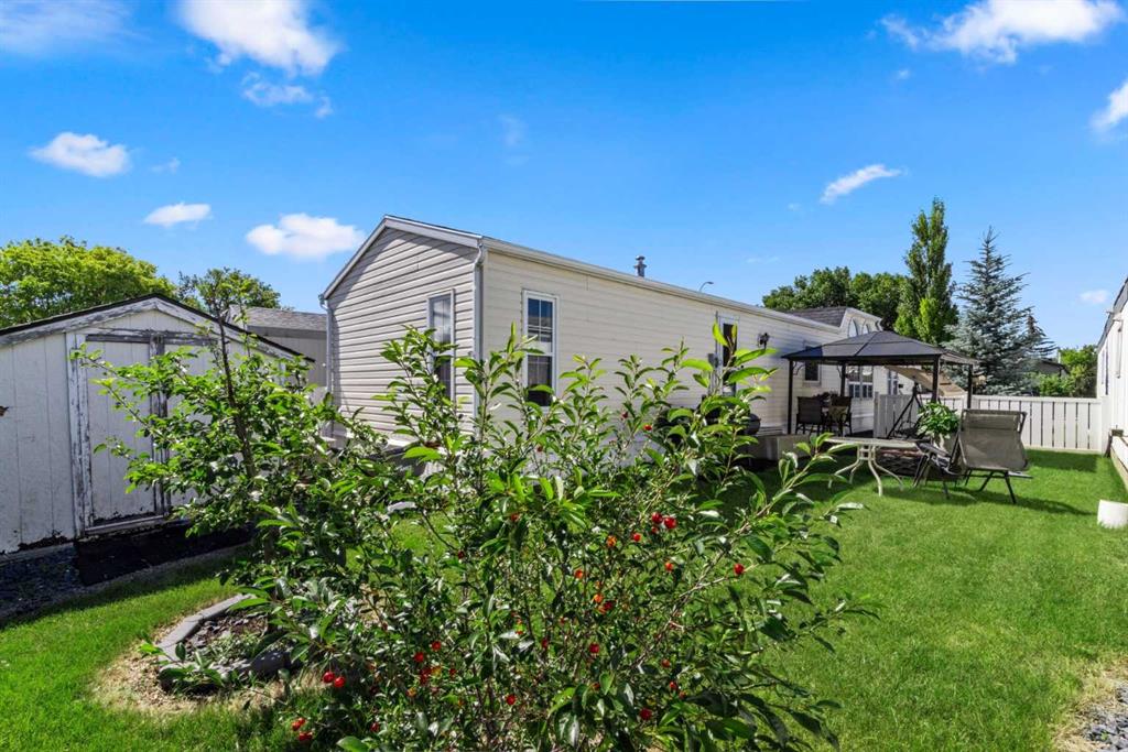 OPEN HOUSE SAT 1-3 PM Incredible Value! Own Your Own Titled Land—Say Goodbye to Monthly Condo Fees and Pad Rent! This beautifully designed, air-conditioned 1,200 sq. ft. bungalow-style modular home offers three spacious bedrooms and two full bathrooms, complete with two convenient entrances. Step inside to experience an inviting open floor plan featuring a bright oak kitchen illuminated by a skylight. With ample pantry storage and a charming built-in china cabinet that doubles as an elegant beverage station, this kitchen is perfect for entertaining. The living room is a stunning showcase, boasting high vaulted ceilings and additional oak cabinetry for stylish storage, all while bathing in natural light from numerous large windows. Retreat to the primary bedroom, which includes a luxurious 4-piece ensuite bathroom complete with a 2-person jetted soaker tub, a dedicated makeup area with a sink, a separate shower, and a private toilet. The front of the home features two generously sized bedrooms with ample closet space, along with a main bathroom that is also 4 pieces, ensuring comfort for family and guests. The rear entrance features built-in cabinetry and ample storage for a freezer or other essentials, conveniently located adjacent to a separate laundry room equipped with a modern front-load washer and dryer. Step outside to discover two storage sheds skillfully hidden behind a beautifully landscaped yard, featuring a delightful apple tree and chokecherry bushes. Whether you’re grilling on your patio or enjoying a cozy fire in the yard, outdoor living has never been better! Winterized heat tape ensures no issues during the cold. With asphalt parking and easy access to walking paths and green spaces, this home is ideally situated. Enjoy unparalleled convenience with quick access to Stoney Trail, Peigan Trail, Deerfoot Trail, and Downtown, along with all the amenities you could desire, including Costco on 17th Avenue and big box stores. Don’t miss out on this exceptional opportunity—experience it for yourself!