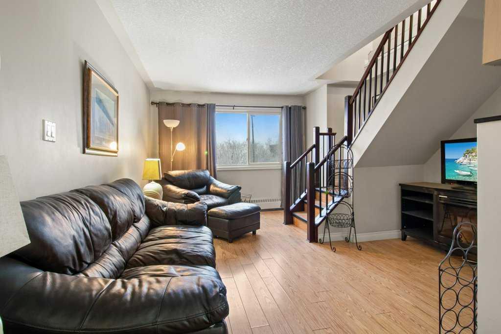 This is a great condo, is well maintained and offers affordable living. It’s in great condition and is move-in ready! It's perfect for a young couple, a couple friends, perfect for a downsize, or would make a great investment as a rental property. Walk into the spacious entry and into the nice kitchen area with plenty of cabinets and counter space that is open to the dining and living area which makes this space a great space to entertain friends or spend time with the family. There is an electric fireplace in the living room. Also, on the main floor there is a powder room that has extra cabinets for storage and behind the cabinets, there is laundry hookup. Then to the upper level enjoy an extra-large bedroom, this would easily have room for two beds, you could put a divider between the two for privacy and there is a nice four-piece ensuite with a closet. The property comes with all the furniture in it. There is an assigned parking stall with a plug in (stall #27 - by the visitor parking - 2nd one on the far side). There is a laundry room on each floor that is card operated. Some recent updates (all done approximately five years ago) and include additional cabinets added above the stove and in powder room on the main floor, repainted, some new laminate flooring, new lighting fixtures on main floor and electric fireplace. No Pets Allowed.