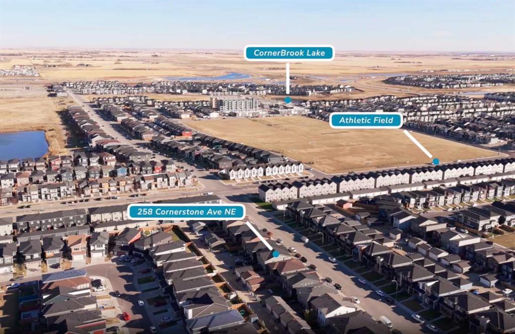 Wow! Steal of a Deal! Watch the video* . Gorgeous Home! A perfect blend of comfort, style, and value! A stunning property located in NE's Calgary one of the most popular and top selling community "Cornerstone". ALMOST 1600 SQFT | OVERSIZED DOUBLE GARAGE | SIDE ENTRANCE + 9FT BASEMENT | BRIGHT & OPEN FLOOR PLAN | 3 SPACIOUS BEDROOMS (ALL WITH WALK-IN CLOSETS) | MORRISON BUILT LOLA FLOOR PLAN | NEW ROOF SHINGLES & SIDING | BRAND NEW PAINT | NEWER APPLIANCES | FULLY LANDSCAPED & FENCED | 10/10 LOCATION. Step inside and you’ll immediately feel the warmth of the sun-filled south-facing open floor plan. The main level offers two versatile living spaces — a front great room and a cozy family area — ideal for family gatherings or entertaining. The spacious dining area comfortably fits a six-seater table and is surrounded by tall windows that fill the space with natural light. The chef’s kitchen features quartz countertops, a large center island, upgraded stainless-steel appliances (including a gas stove, new OTR microwave and newer fridge), and abundant cabinetry for all your storage needs. Upstairs fulfills what every growing family needs — three spacious bedrooms, each with its own walk-in closet, providing ample space and comfort for everyone. The primary bedroom offers a private ensuite and walk-in closet, while the two secondary bedrooms share a well-appointed bathroom. There’s even a bonus workspace nook — perfect for studying or working from home. Unfinished basement with a side entrance (with concrete steps) and 9ft ceiling - a great income potential to build a LEGAL SUITE (subject to approval and permitting by the city/municipality). Outside, enjoy your fully fenced and landscaped backyard, ideal for summer BBQs and get-togethers, along with a double detached garage for convenience. The backyard is already beautifully set up with a flower bed — a perfect spot to add your personal touch and grow your favorite flowers or plants Located steps from bus stops, parks, playgrounds, shops, restaurants, medical clinics, banks, and schools, plus minutes to FreshCo and other grocery stores, Stoney Trail, Deerfoot Trail, the airport, and the proposed Gurdwara site, this home delivers comfort, location, and value all in one package. Don’t miss your chance to own this beautiful move-in-ready home in Cornerstone.