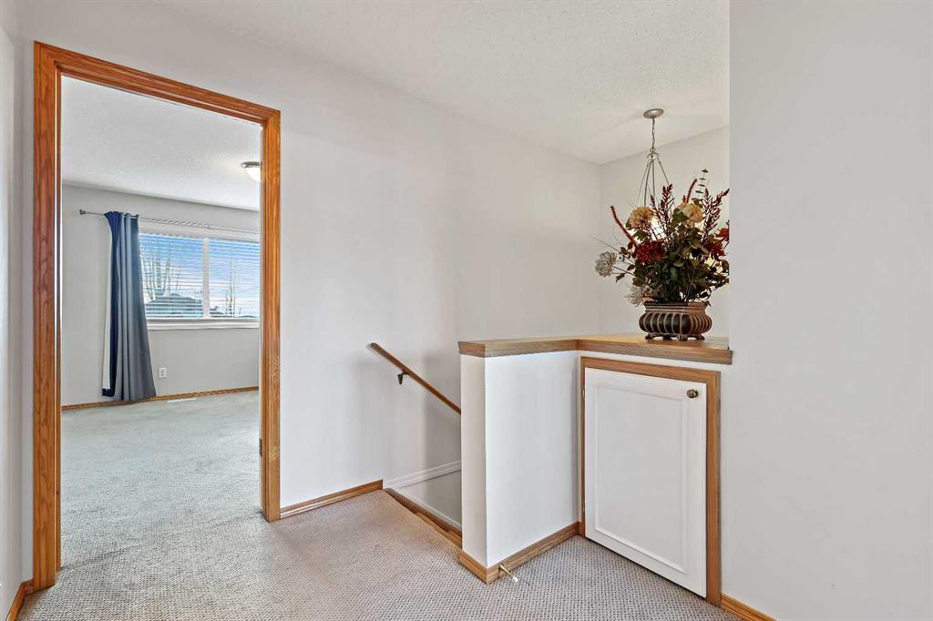 Well maintained complex in a beautiful NW community of Rocky Ridge. This home has 3 bedrooms, 1.5 bathrooms, living/family room features gas fireplace, patio door leading to a nice deck. You'll find the kitchen with European style cabinetry with island, stainless steel appliance and dining room. The 3rd level leads you to 3 bedrooms and 4 pc bathroom. Public School Elem/Junior High 2.3 KM away, Catholic School Elem/Junior High is 5.5 KM, Bus stop is .2 km.