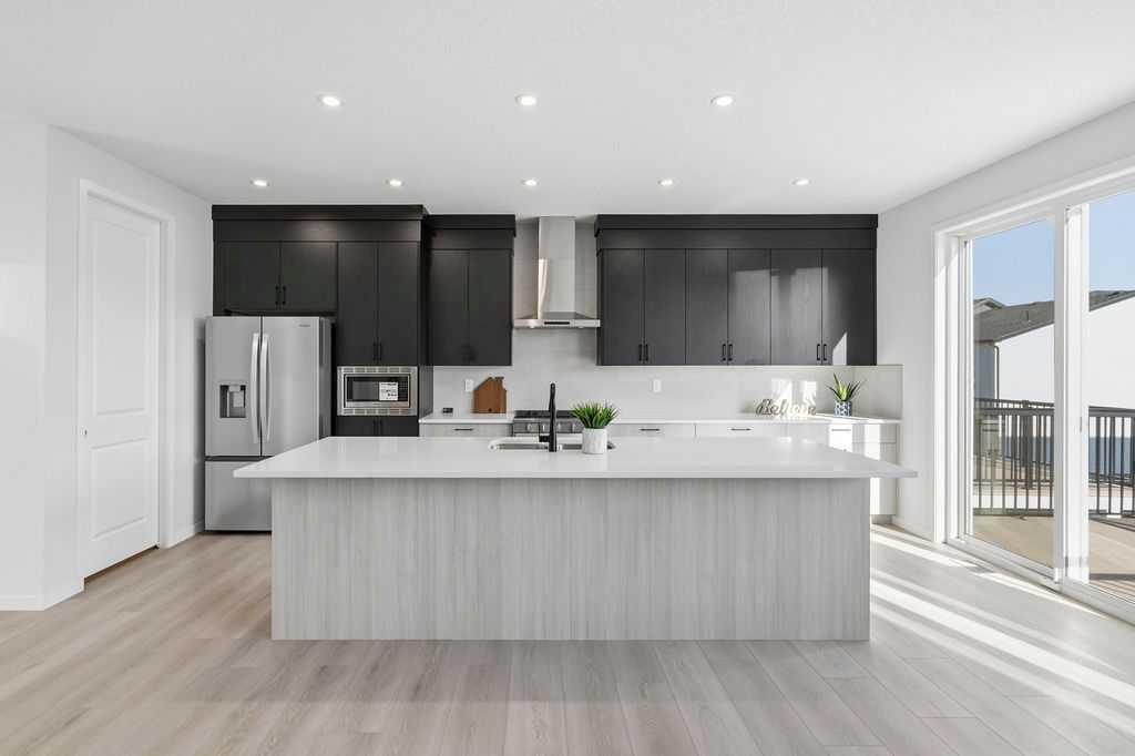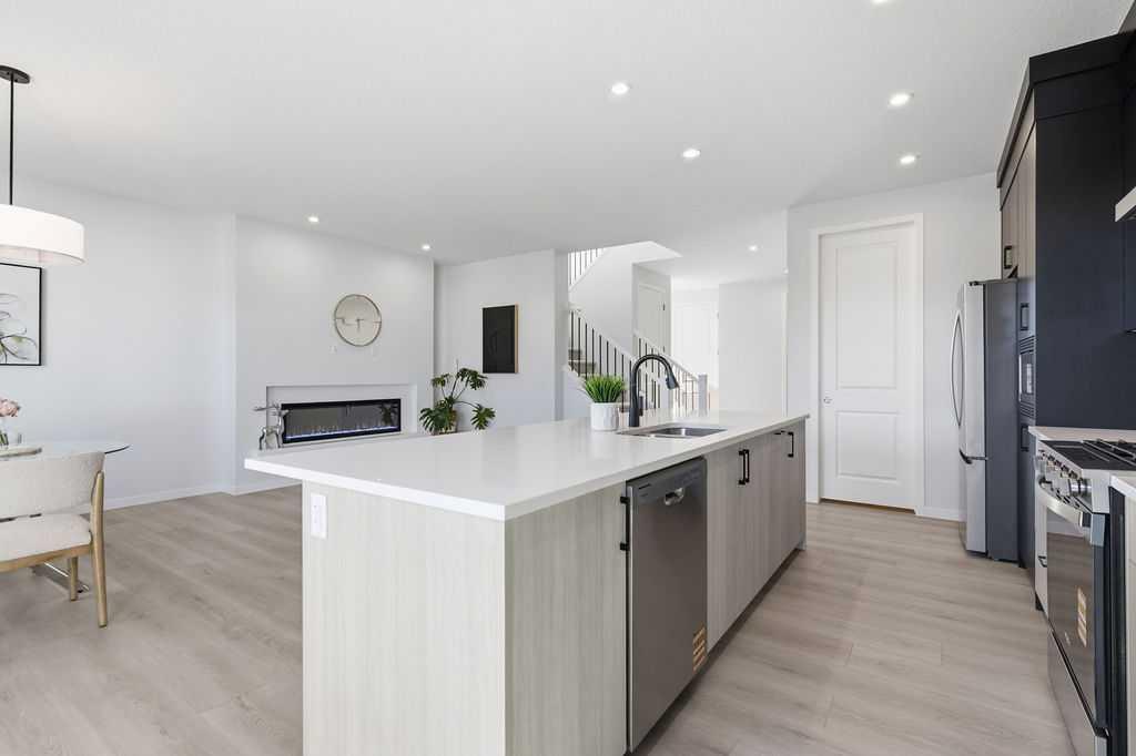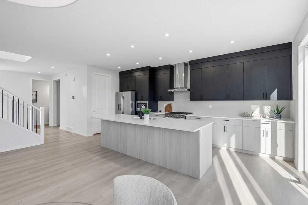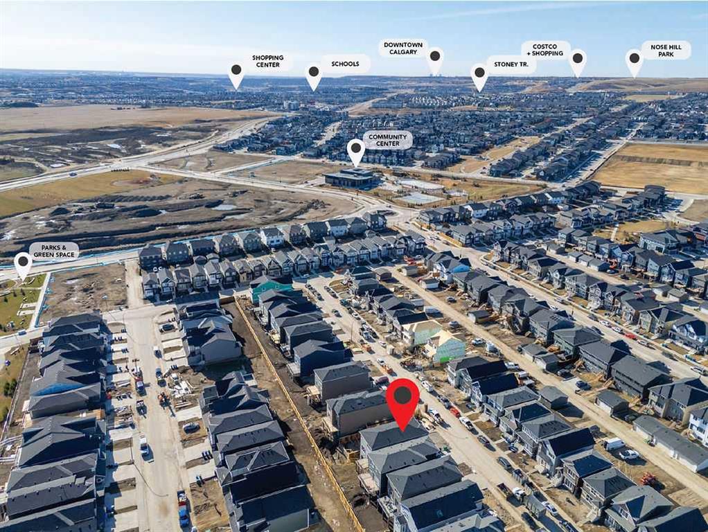 Welcome to this stunning home offering over 2,200 sq.ft. of developed living space in the sought-after community of Glacier Ridge. Perfectly positioned on a premium walkout lot, this detached residence features a front attached double garage, elegant spindle railings, and high-end upgrades throughout. The main floor showcases a bright open-concept design enhanced by pot lights, stylish LVP flooring, and a sleek electric fireplace that anchors the living area with warmth and modern charm. The gourmet kitchen is a true highlight, complete with a gas range, an oversized island, walk-in pantry, and a spacious dining area ideal for entertaining. A convenient 2-piece bathroom completes the main level. Upstairs, a bright bonus room provides additional living space, along with a dedicated laundry area and four generously sized bedrooms. The luxurious primary suite features a spa-inspired 5-piece ensuite with a tiled walk-in showe, deep soaker tub surrounded by premium tile, dual quartz vanities, contemporary cabinetry, modern mirrors, and direct access to a well-organized walk-in closet with built-in shelving. The remaining three bedrooms share another thoughtfully designed 5-piece bathroom for added comfort and convenience. The bright walkout basement with huge windows and 9’ foundation ceilings offers incredible potential for future development, multi-generational living, or added privacy. Step outside to enjoy the rised huge backyard deck with a gas line for BBQs. Residents of Glacier Ridge also benefit from access to an HOA clubhouse featuring a gymnasium, tennis courts, splash park, and year-round activities, plus quick access to major routes for an easy commute. This exceptional property perfectly blends luxury, space, functionality, and lifestyle amenities—an ideal home for families seeking quality craftsmanship and modern comfort. Curtains will be installed on all windows in this house.